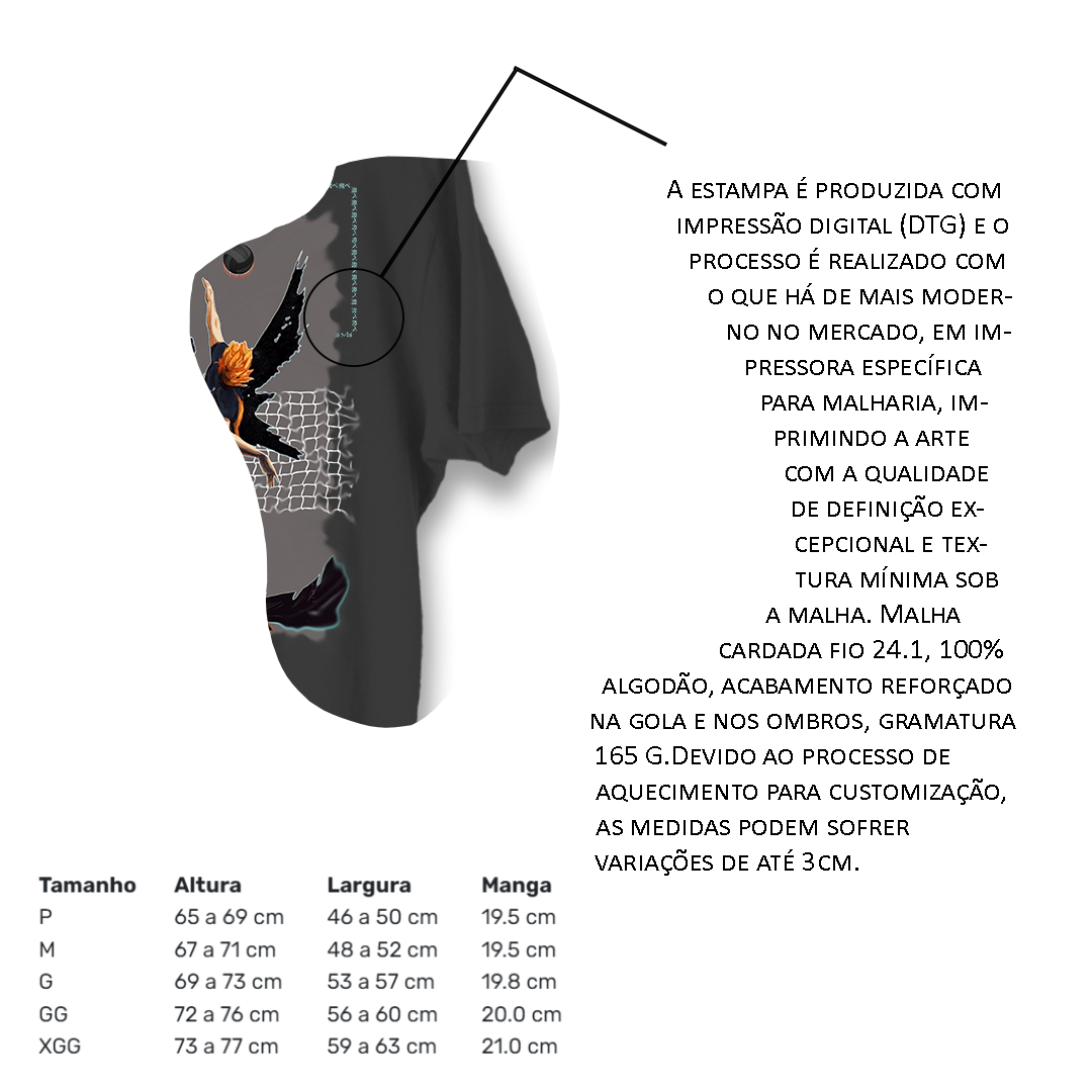 Apresentamos a Camiseta Exclusiva do Hinata, o Pequeno Gigante de Haikyuu!! Entre em quadra com estilo e exiba seu espírito determinado com esta camiseta única. Feita com materiais de alta qualidade e um design vibrante, esta camiseta é perfeita para os fãs de Haikyuu!! e para aqueles que admiram a perseverança e a vontade de vencer do Hinata. Vista-se como o herói do vôlei de Karasuno e sinta-se parte da equipe enquanto demonstra seu amor por esse emocionante anime. Garanta a sua camiseta do Hinata e mostre ao mundo que você está pronto para saltar mais alto em direção aos seus sonhos!
