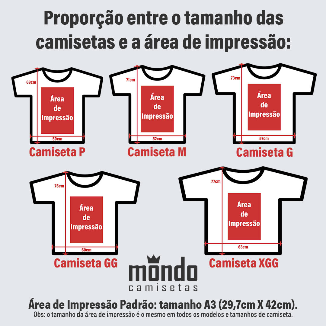 - pode haver uma pequena diferênça nos tons das cores da sua camiseta (isso se deve às características técnicas da tela do seu computador ou smartphone);