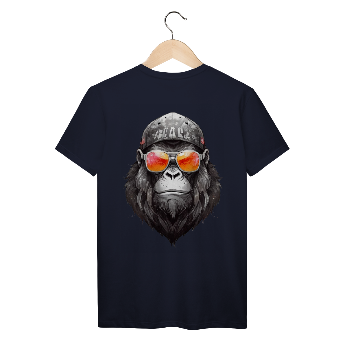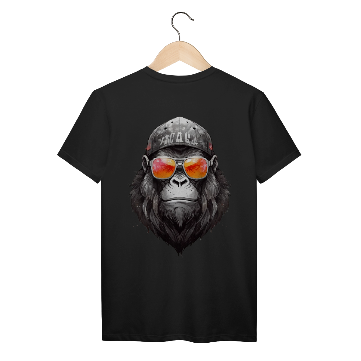 Beard tem presença. Um gorila sério, com visual limpo e forte, óculos espelhados e boné desgastado no tom certo.