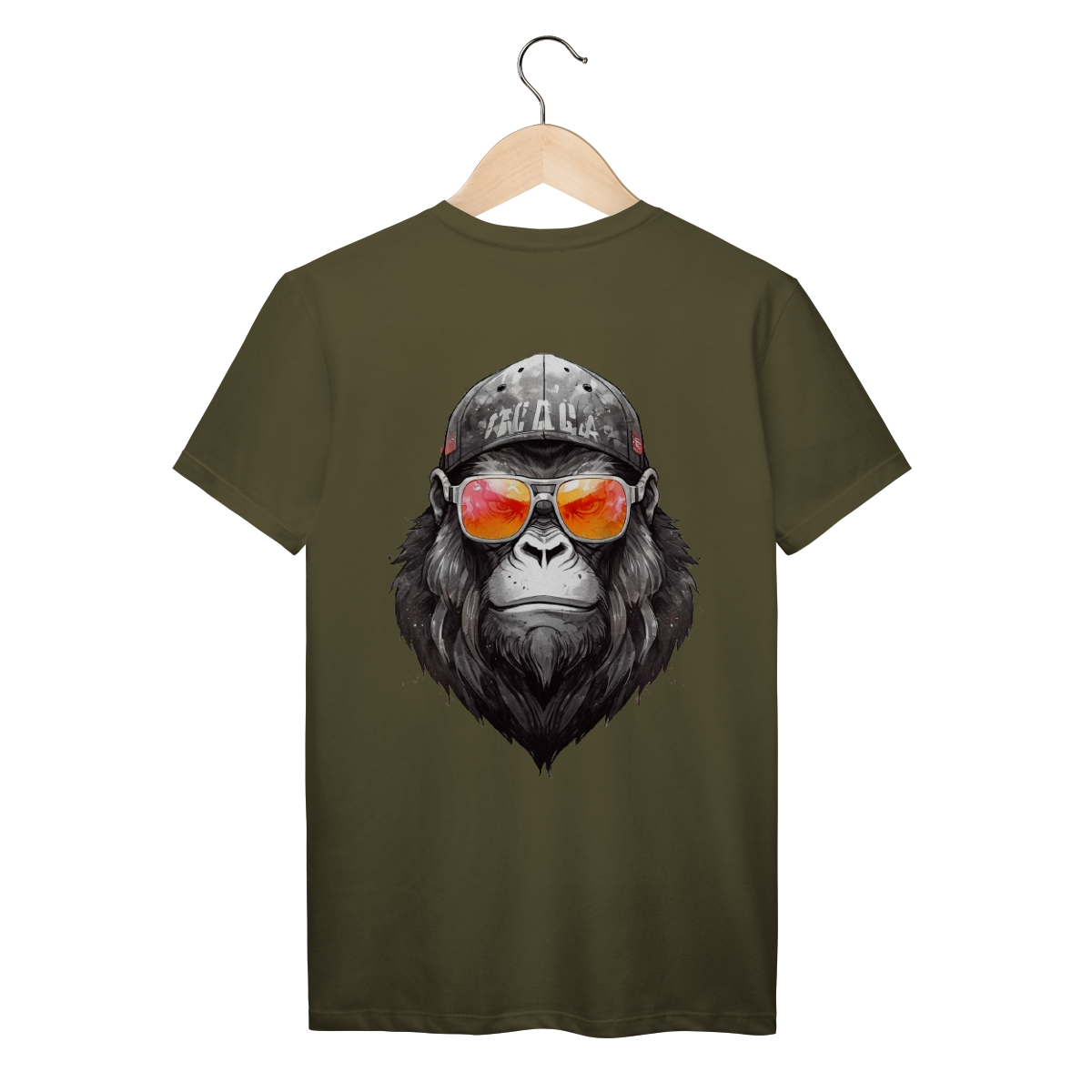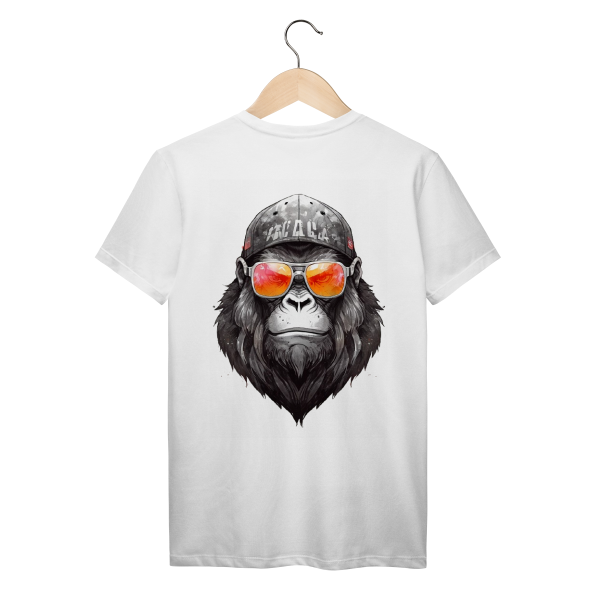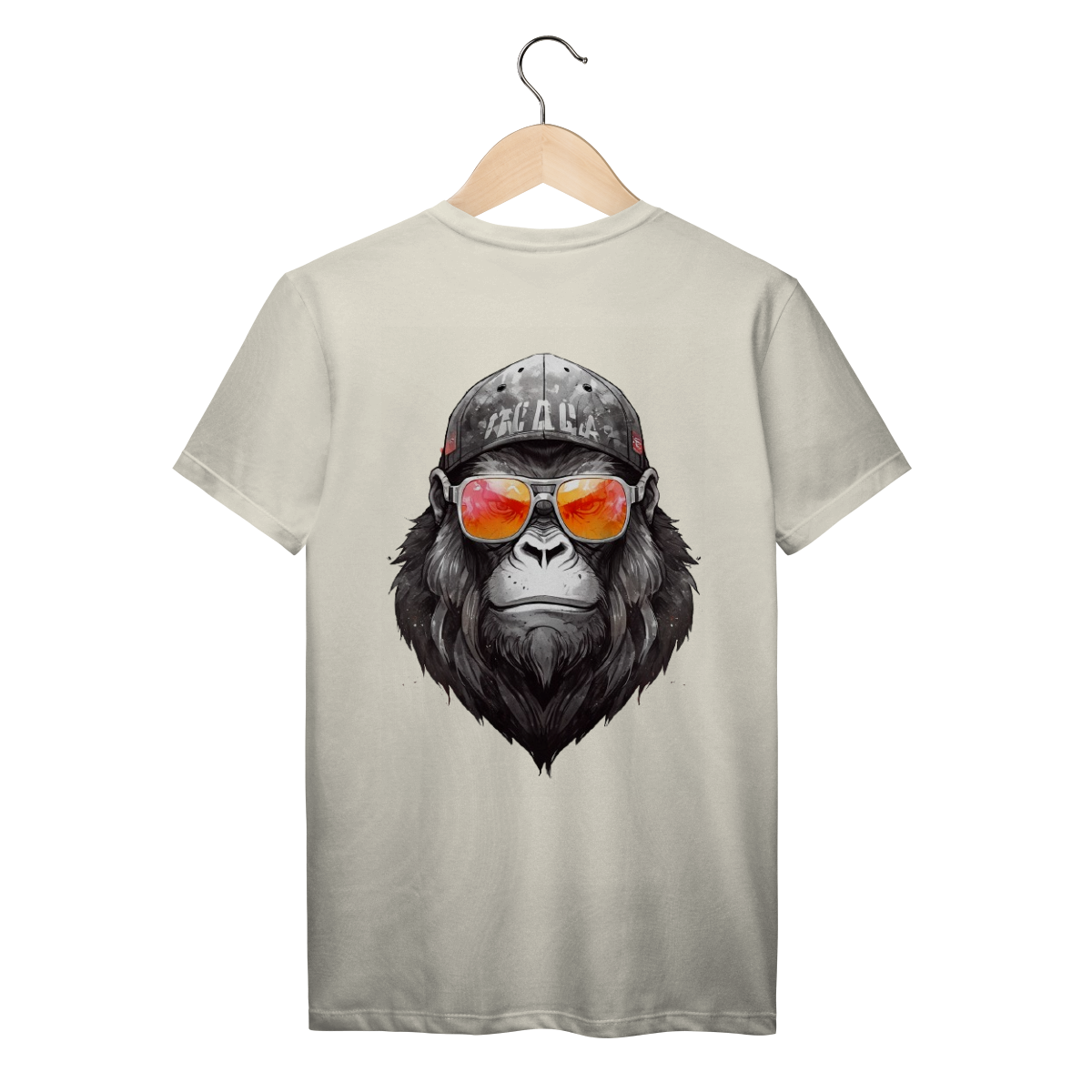 Beard tem presença. Um gorila sério, com visual limpo e forte, óculos espelhados e boné desgastado no tom certo.