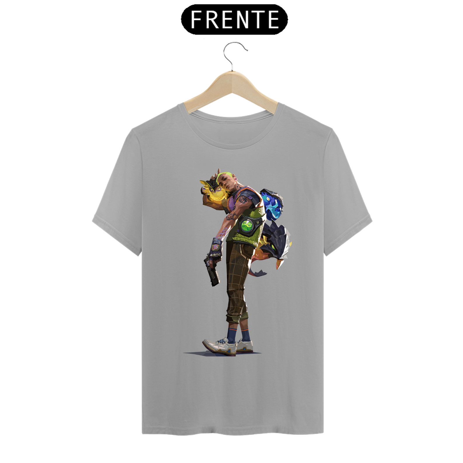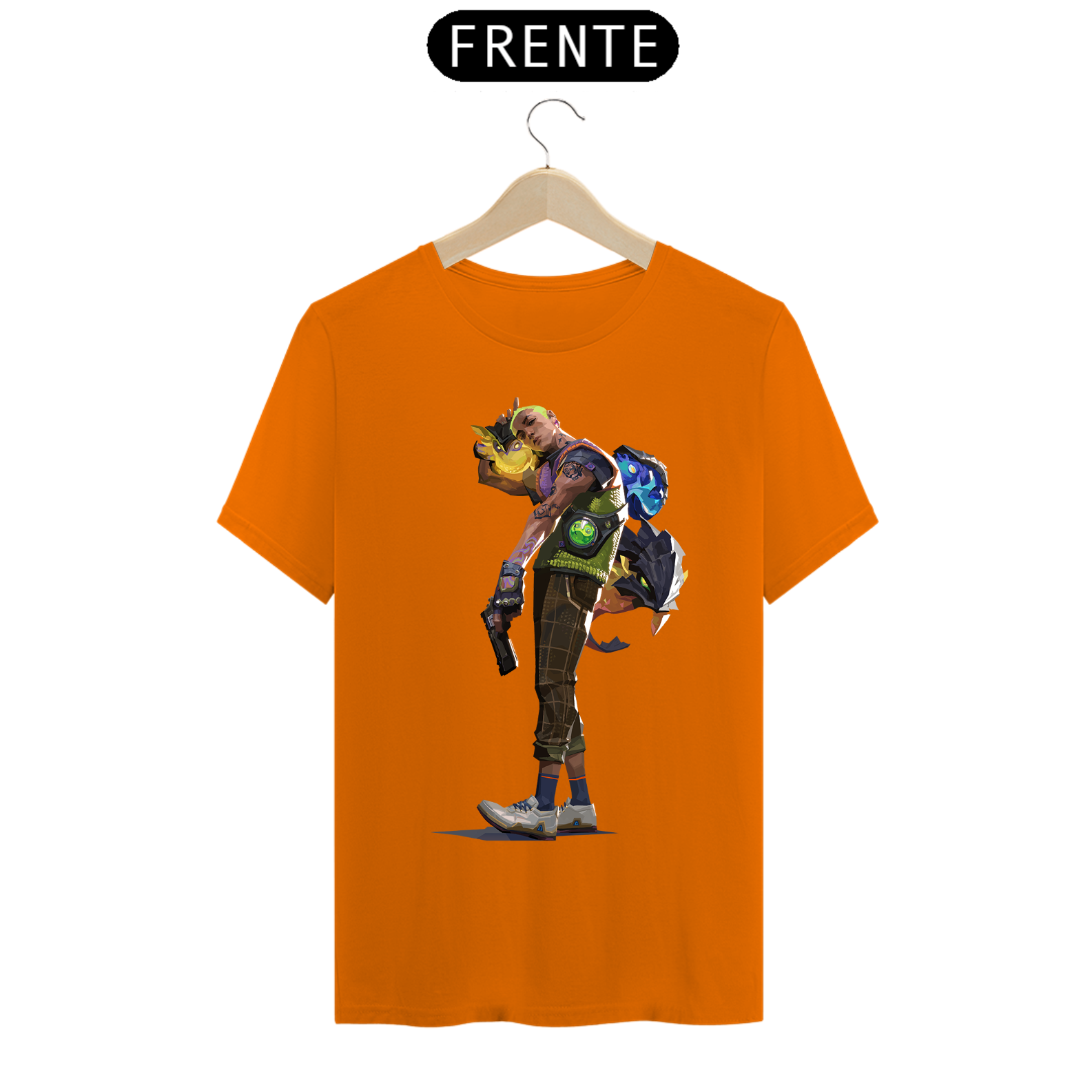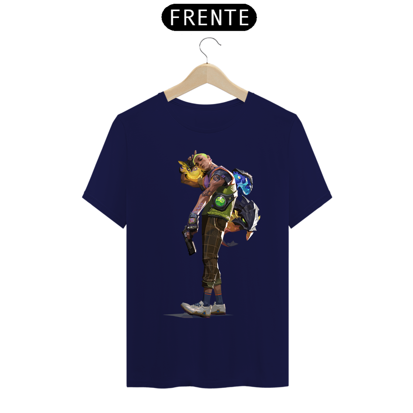 Cores do produto: Como cada tela de computador ou celular tem seu próprio jeito de mostrar cores, então a cor da sua camiseta e da estampa pode ser um pouco diferente do que você viu online.