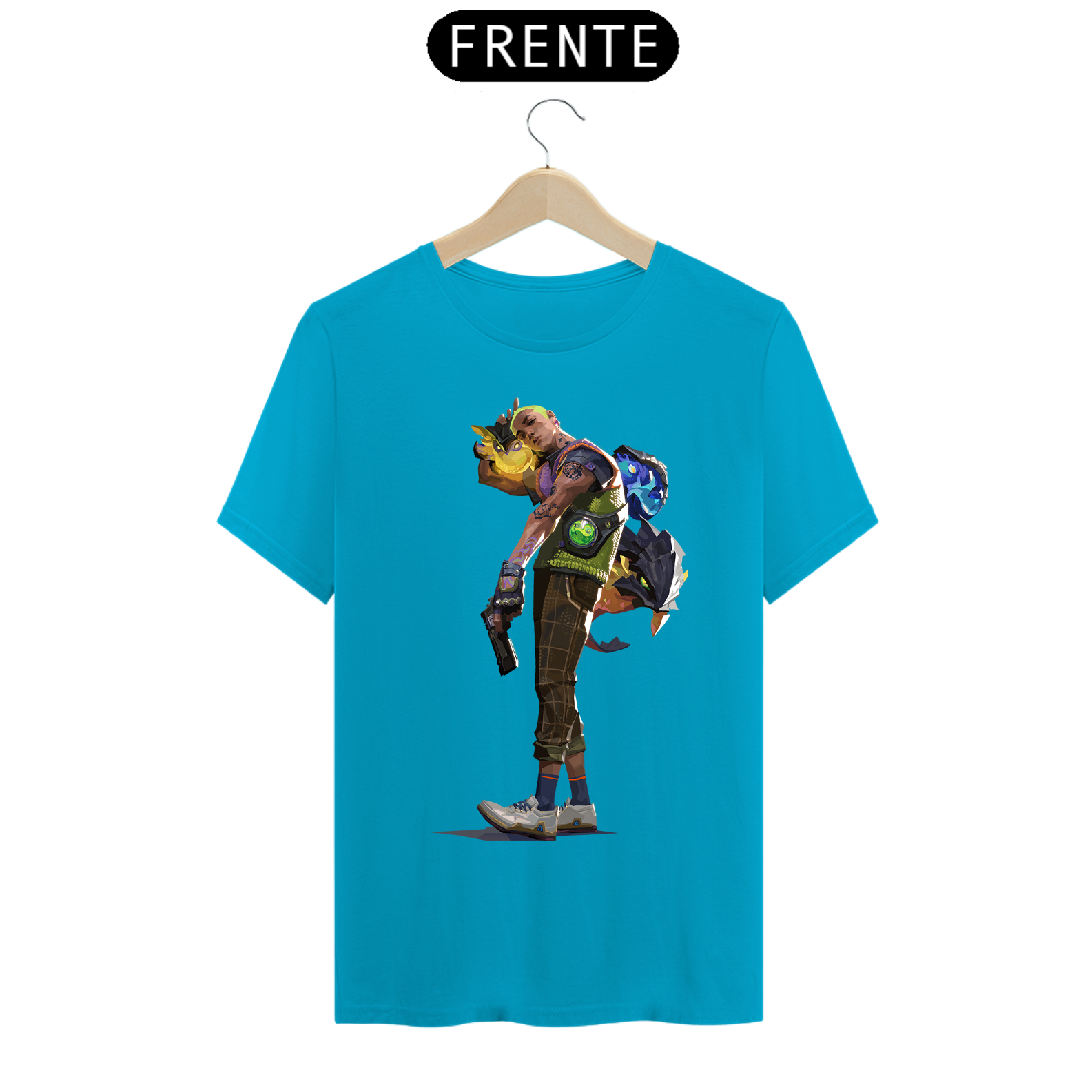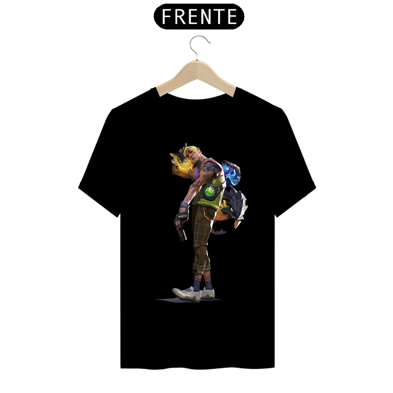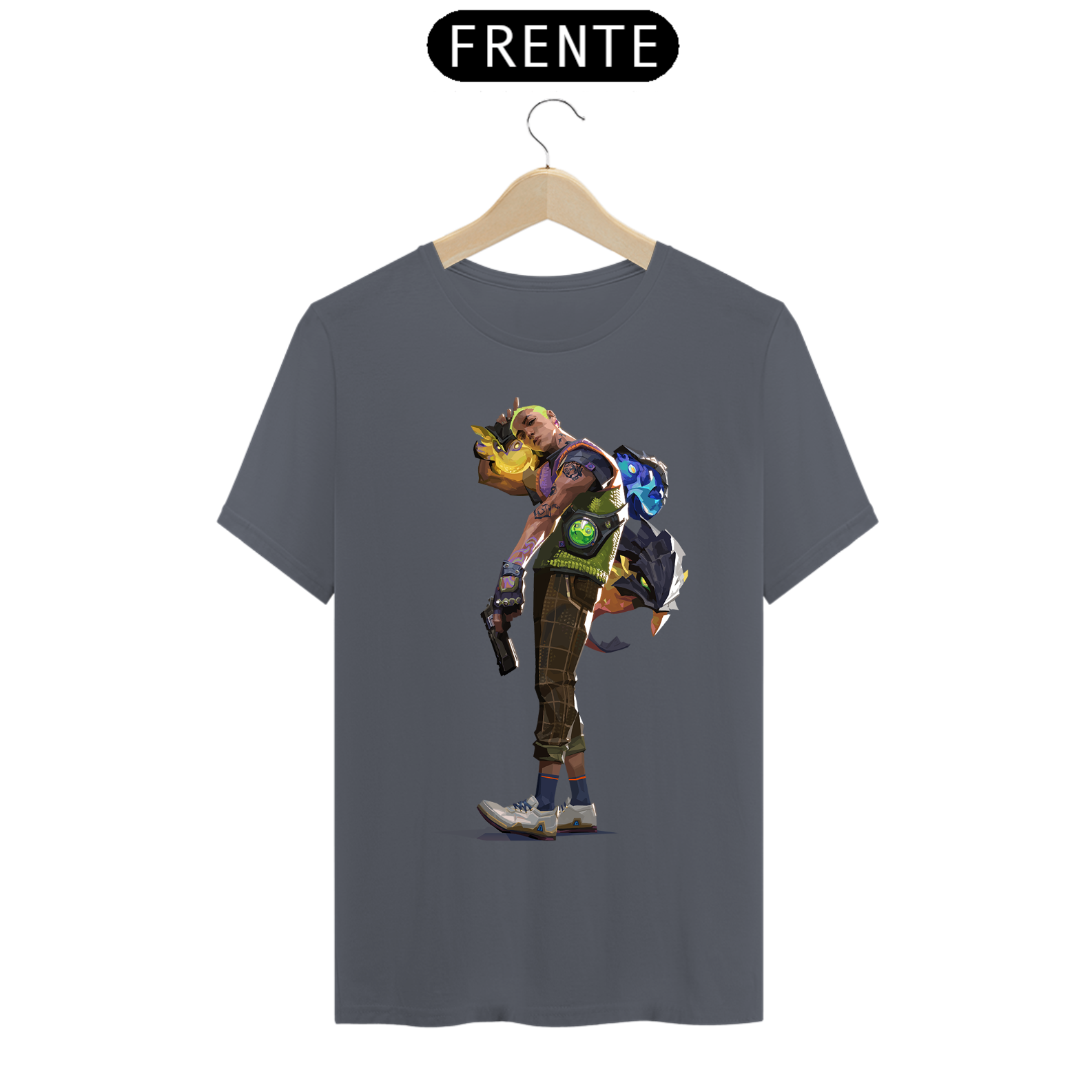 Cores do produto: Como cada tela de computador ou celular tem seu próprio jeito de mostrar cores, então a cor da sua camiseta e da estampa pode ser um pouco diferente do que você viu online.