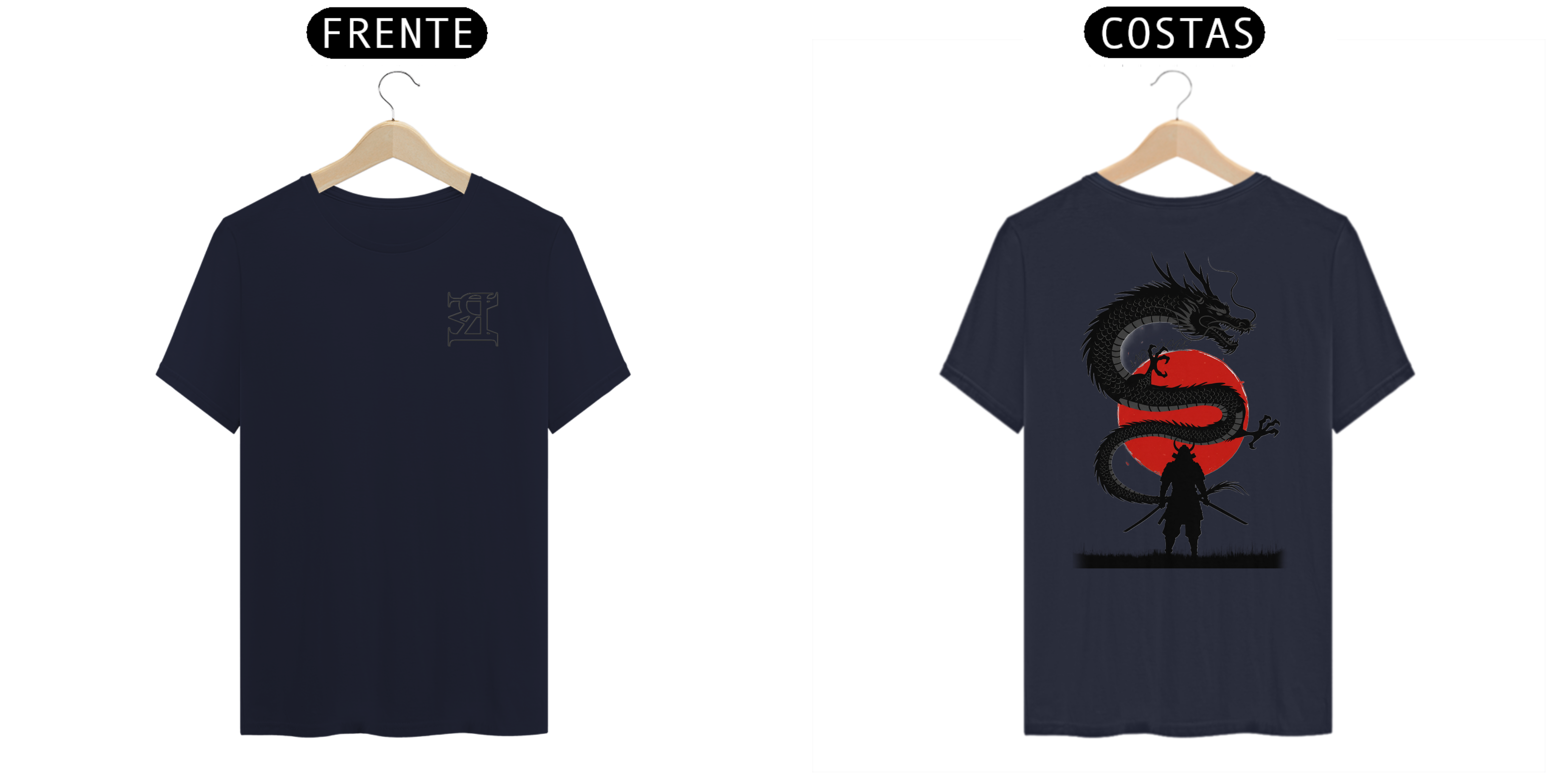 A Camiseta Eternal Clash – Linha Prime simboliza o confronto entre força e espírito. A arte une o samurai em posição de batalha e o dragão diante do sol vermelho, representando equilíbrio entre coragem e poder interior.
