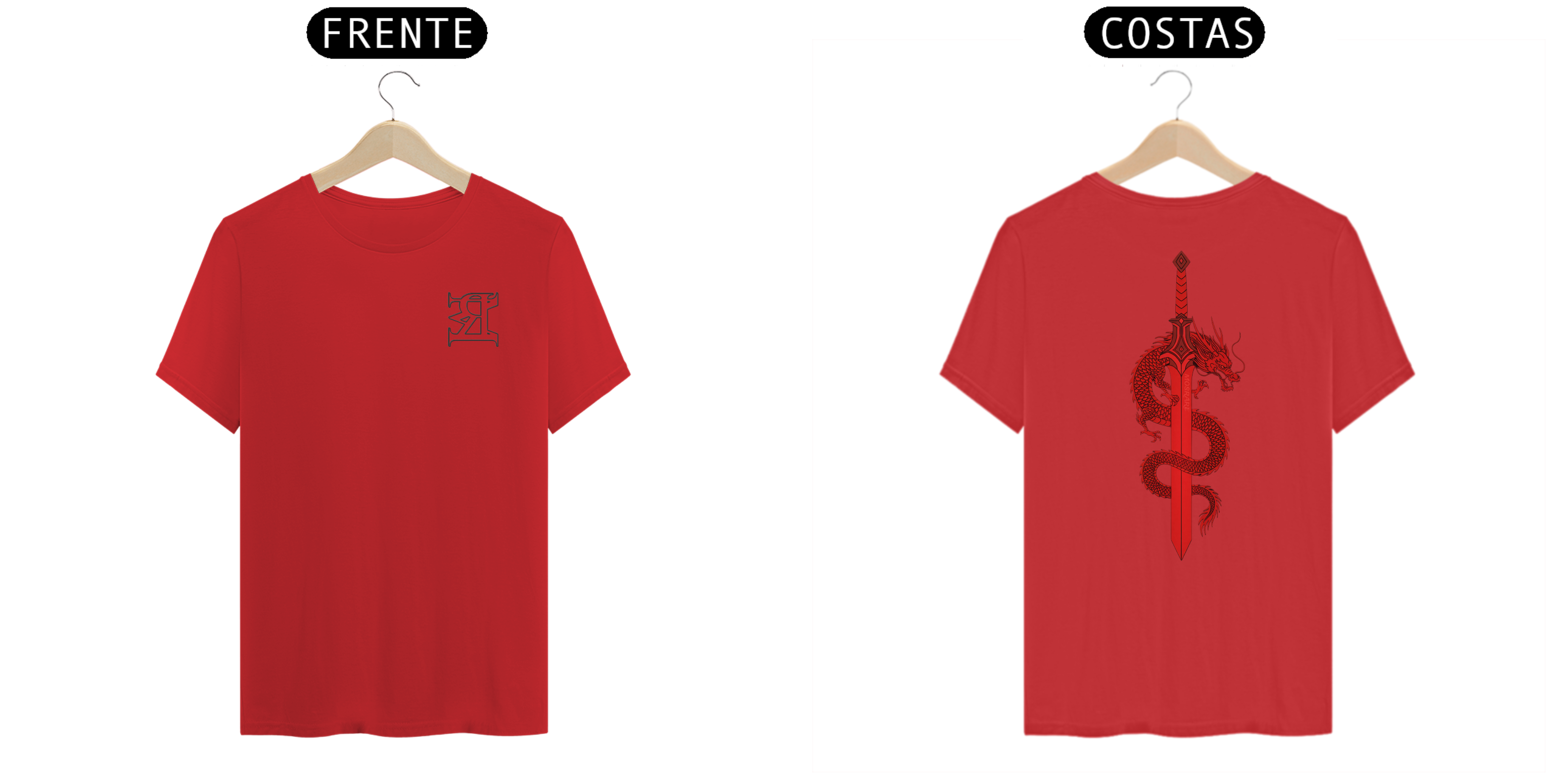 A Camiseta Dragon Blade carrega uma energia intensa e simbólica. A estampa traz um dragão vermelho entrelaçado em uma espada, representando força, foco e poder interior — elementos que fazem parte da essência Mosrare.