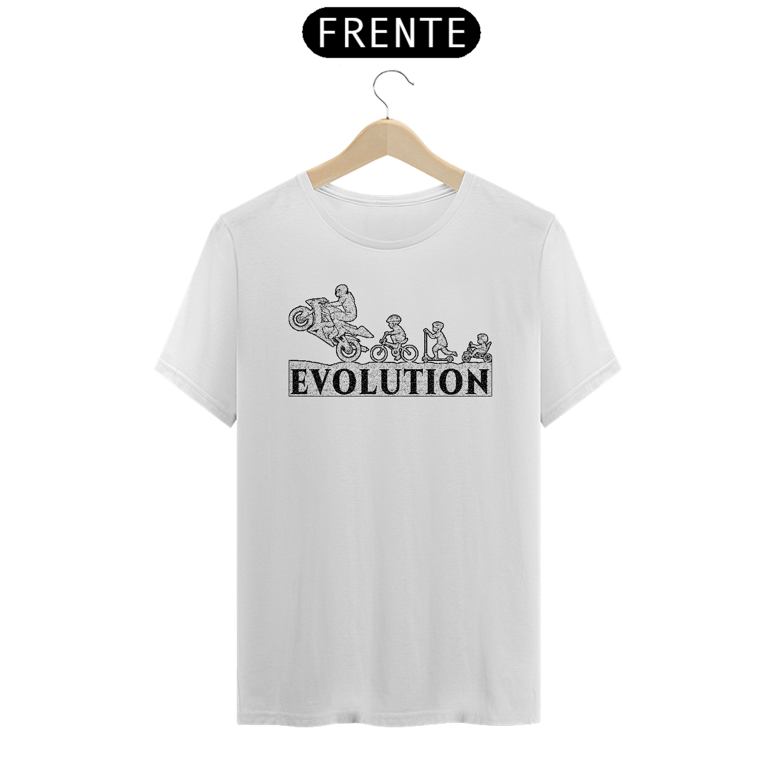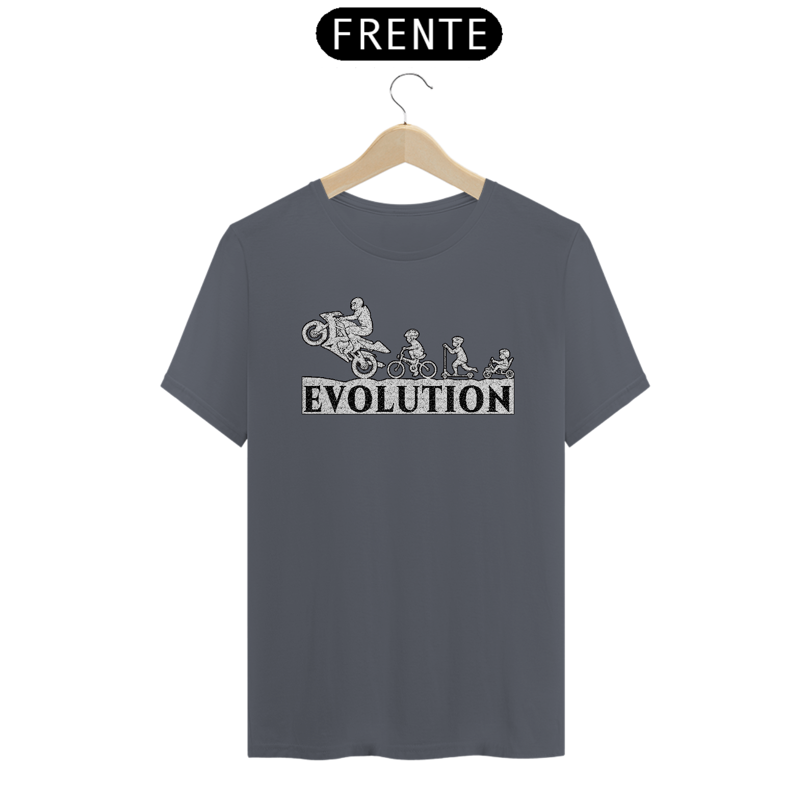 Camiseta que mostra como nós motoqueiros evoluímos
