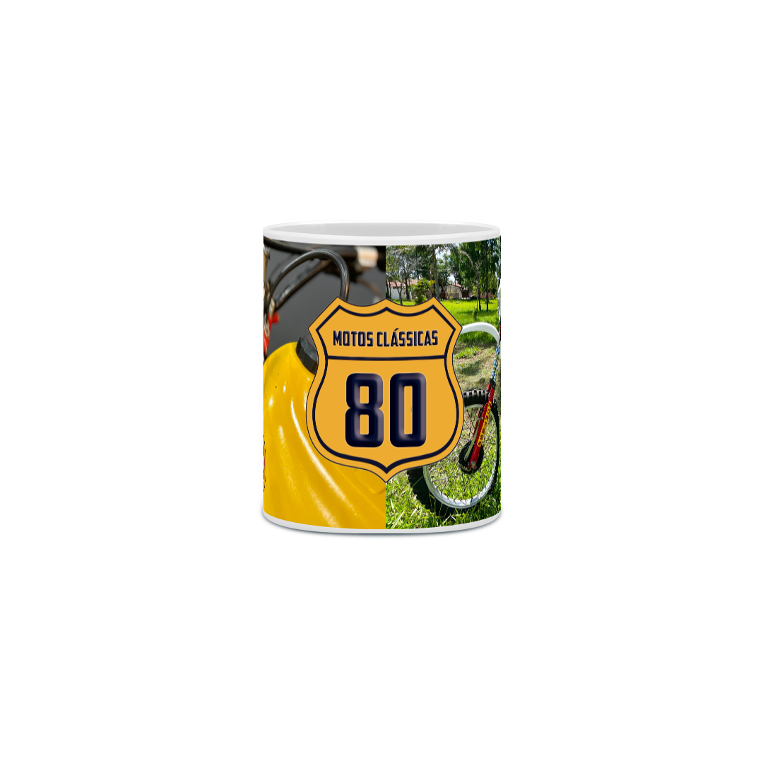 Desperte a paixão pelas clássicas a cada café. Conheça nossa caneca na @motosclassicas80. Uma pitada de nostalgia em cada gole.