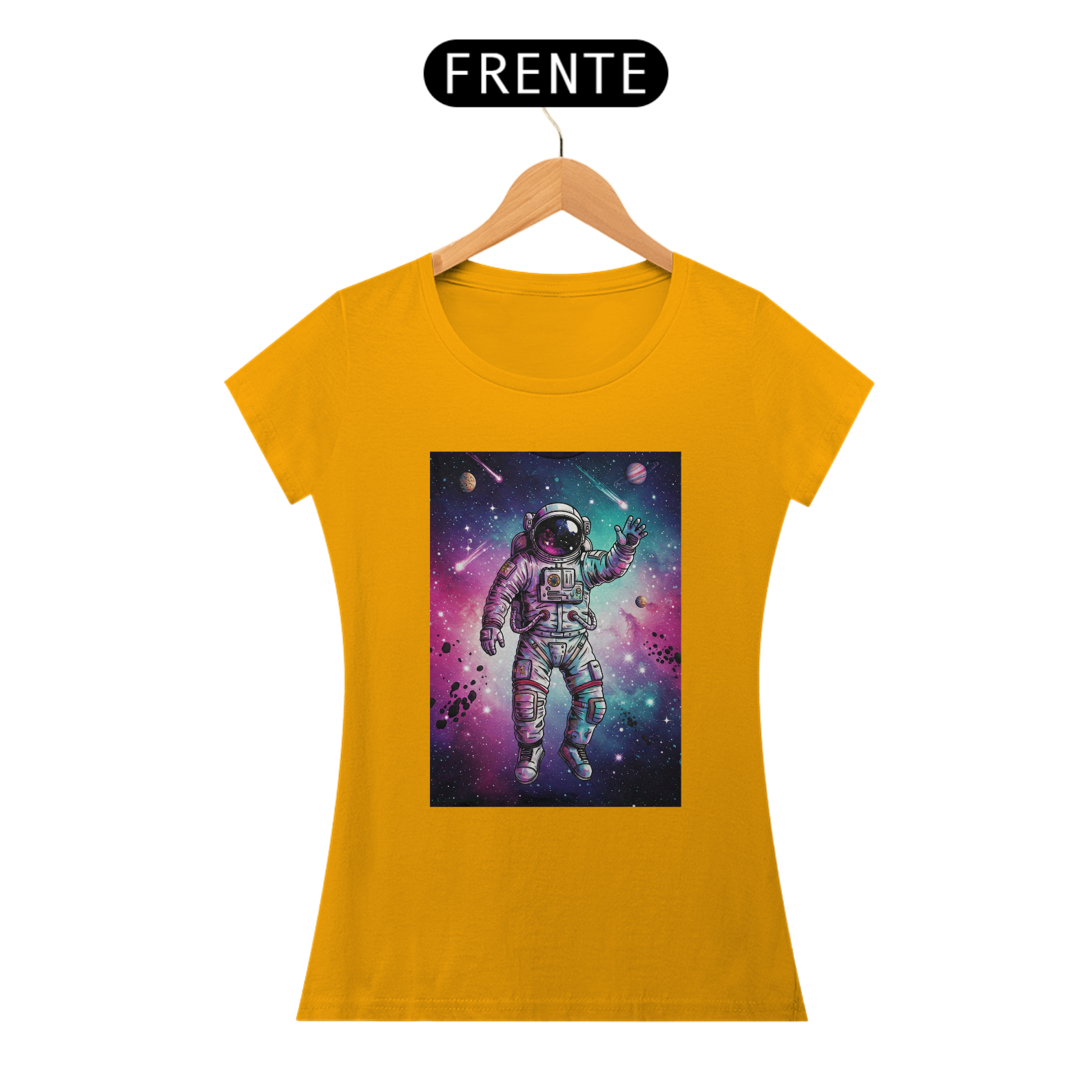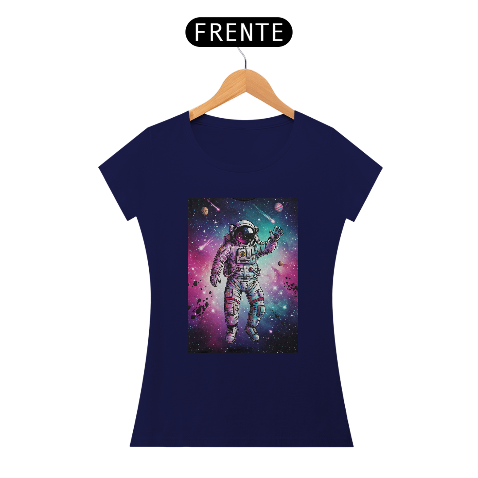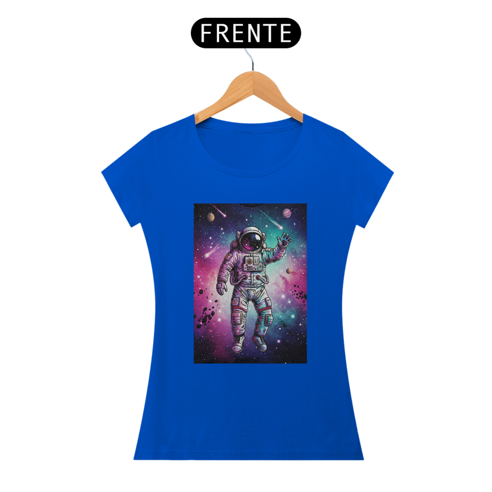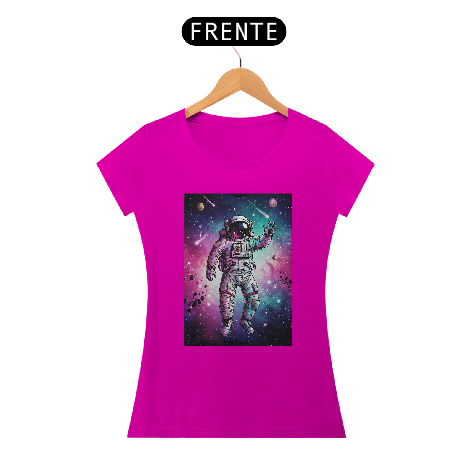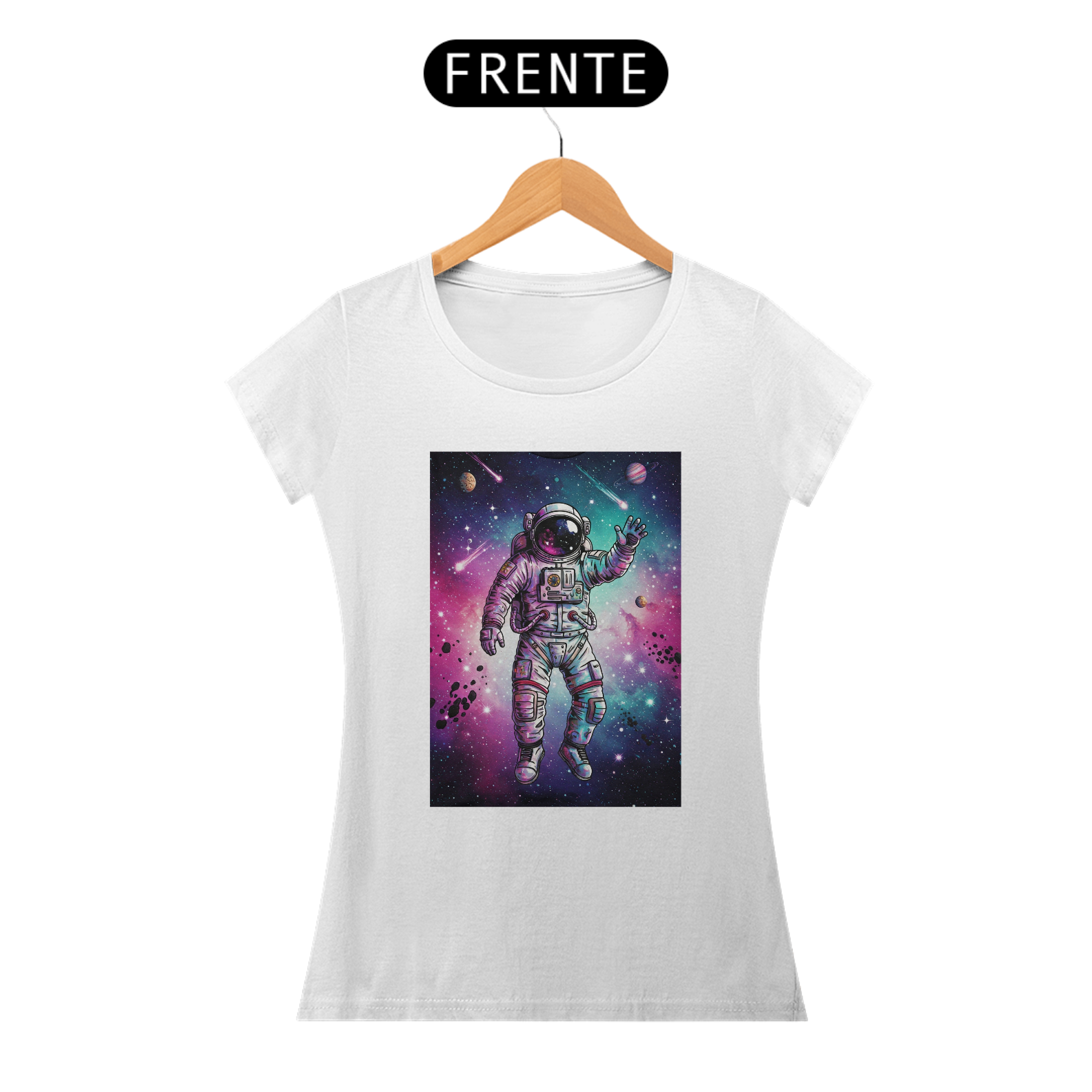 A T-Shirt Classic Galáxia Psicodélica traz um astronauta flutuando no espaço em meio a uma explosão de cores vibrantes — roxo, azul e rosa se misturam em uma galáxia intensa, criada em estilo de ilustração digital de alto impacto. Uma arte exclusiva, pensada para quem tem a mente livre e a alma conectada com o universo.