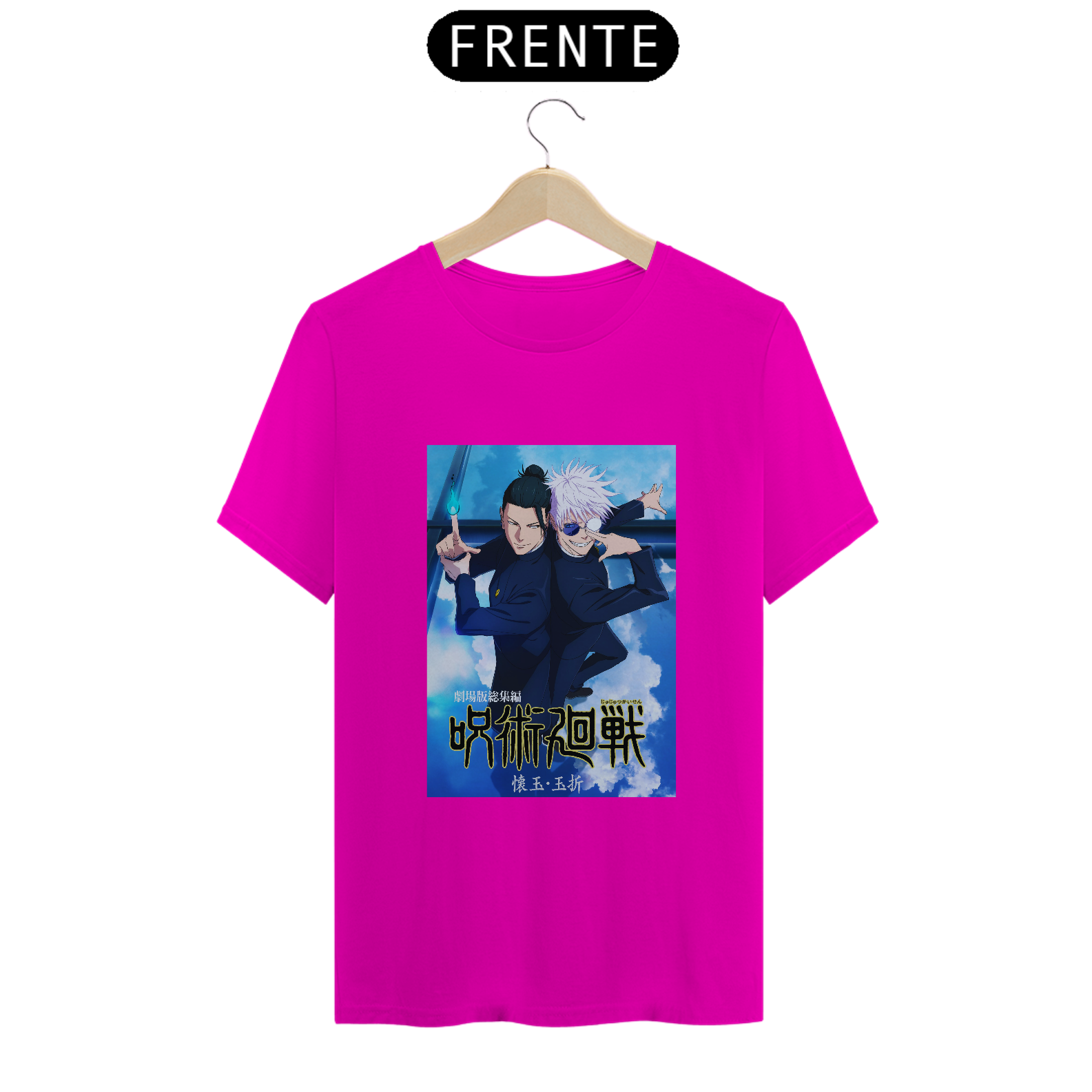 Feita com tecido confortável e caimento impecável, essa camiseta carrega peso emocional e estético — para quem vive intensamente o universo de Jujutsu Kaisen e entende o impacto dessa dupla.