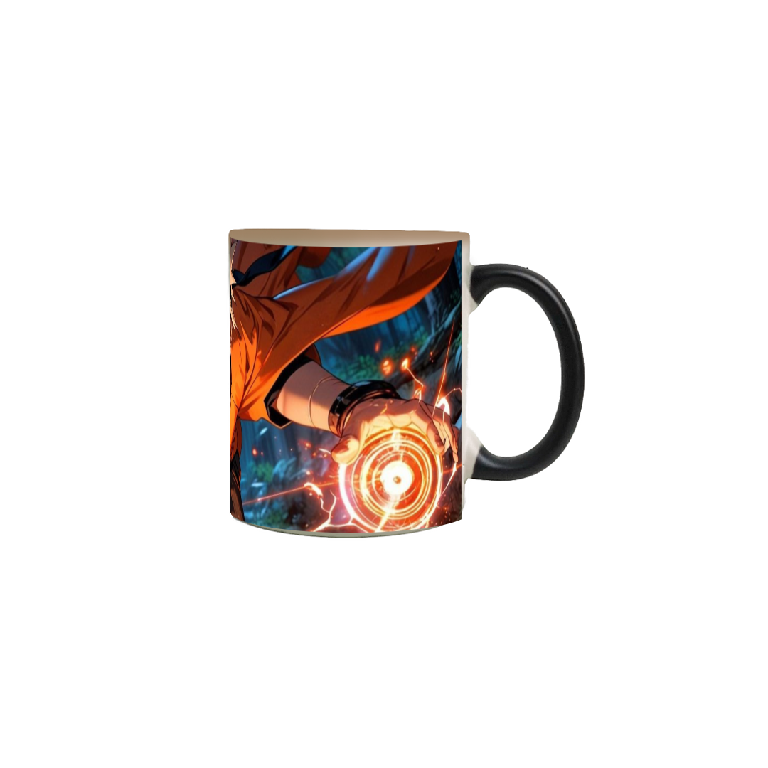 A Caneca Mágica Naruto Uzumaki | Chakra Revelado é perfeita para fãs do ninja mais determinado de Konoha. Fria, ela parece uma simples caneca preta... Mas basta adicionar sua bebida quente favorita para revelar uma arte vibrante com Naruto em sua forma icônica, envolto em chakra e pronto para proteger seus amigos.