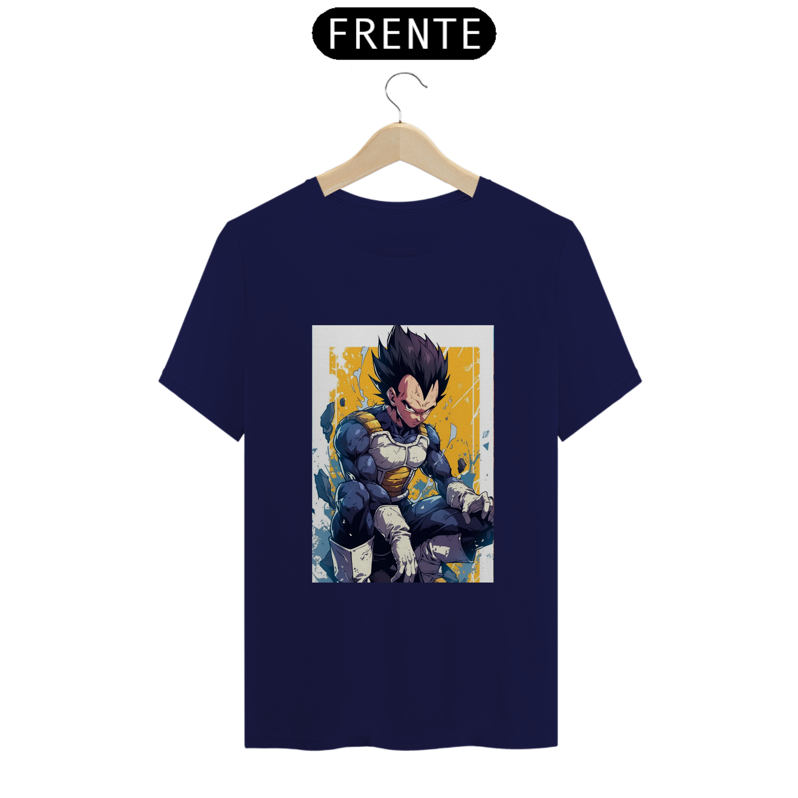 A T-Shirt Classic Vegeta | Orgulho de um Príncipe homenageia o icônico Príncipe dos Saiyajins em uma estampa imponente e cheia de atitude. Com seu olhar firme e pose de batalha, a arte captura a essência de Vegeta — força bruta, técnica refinada e o eterno desejo de superar limites. Tons intensos de azul, dourado e preto reforçam a presença do personagem, refletindo sua energia e nobreza de guerreiro.