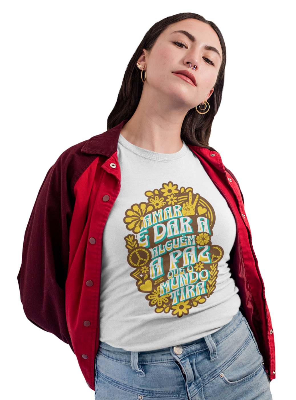 Cores do produto: Como cada tela de computador ou celular tem seu próprio jeito de mostrar cores, então a cor da sua camiseta e da estampa pode ser um pouco diferente do que você viu online.