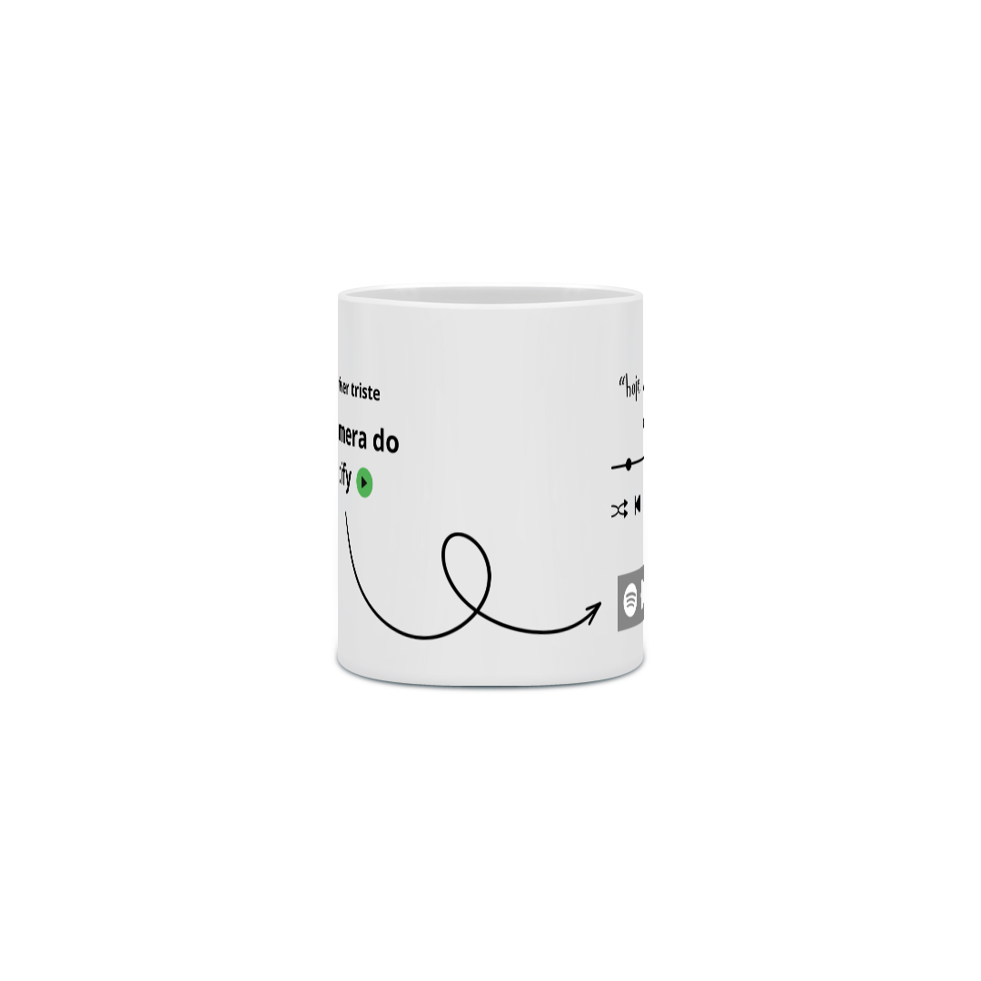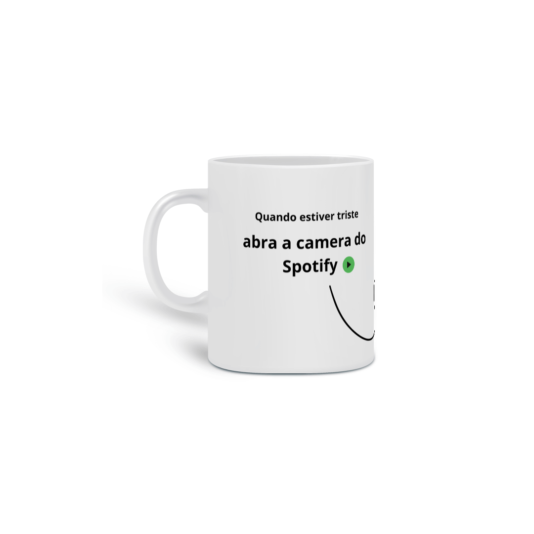 Imagine ter a trilha sonora perfeita para cada momento do seu dia, sempre à mão. Nossa caneca com a estampa "Quando estiver triste, abra a câmera do Spotify" te convida a transformar a tristeza em alegria com o poder da música.