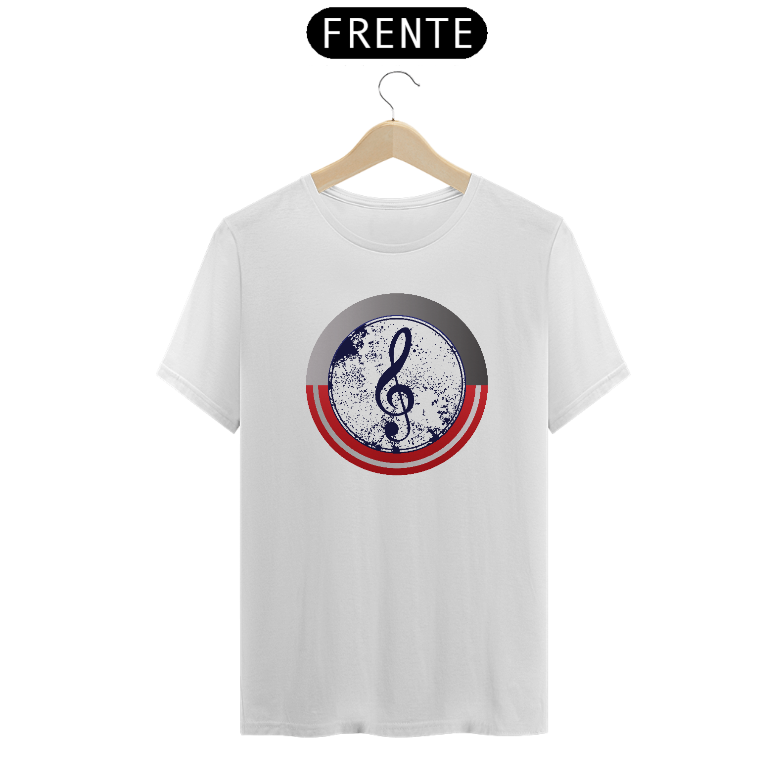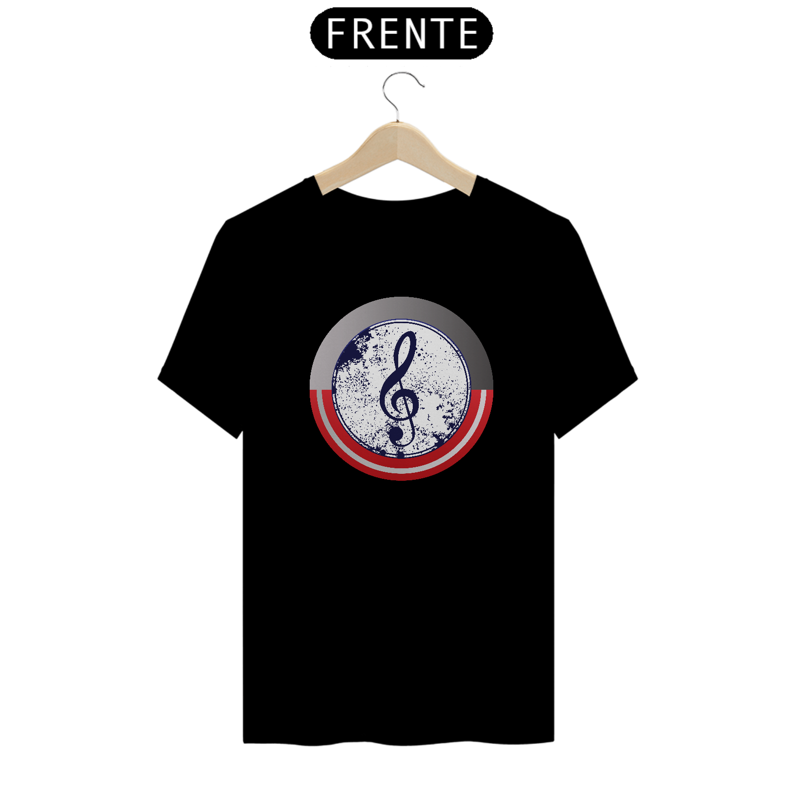 • Estampa Patriótica e Musical: Uma nota musical estilizada em um design vintage, com cores e texturas que remetem ao escudo do Capitão América e à elegância da música.