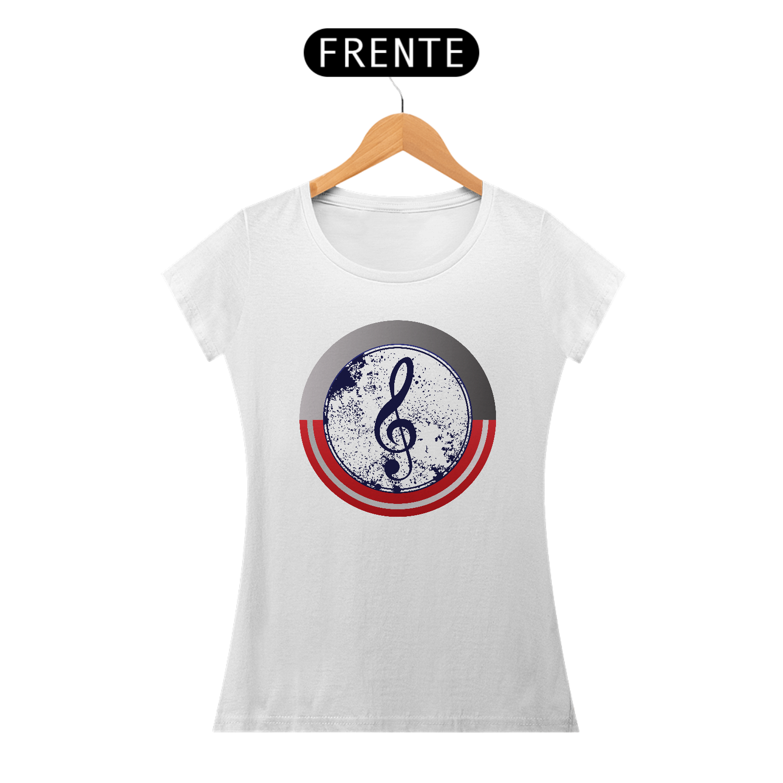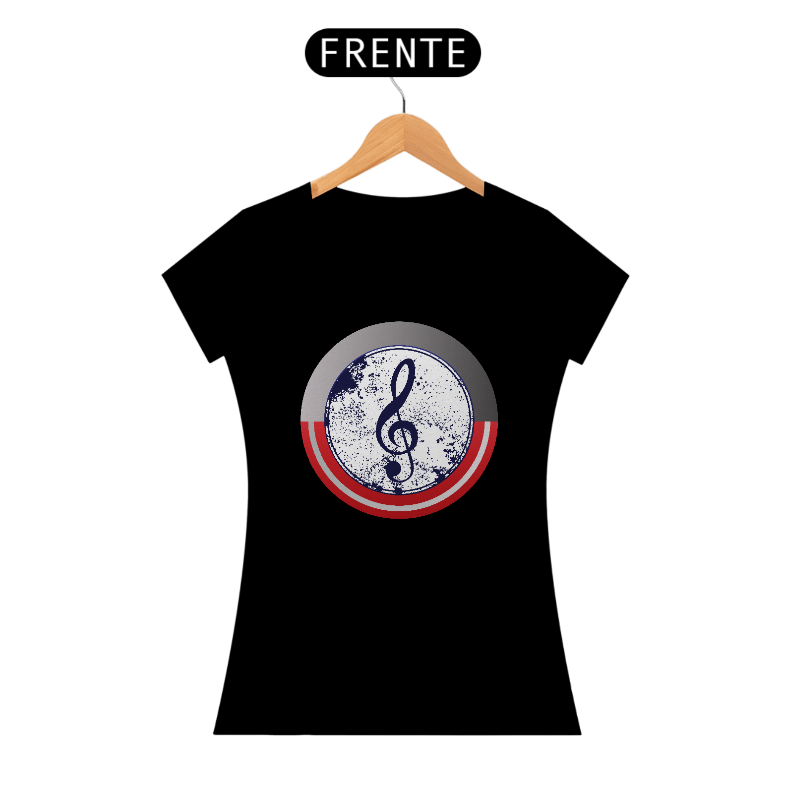 • Estampa Patriótica e Musical: Uma nota musical estilizada em um design vintage, com cores e texturas que remetem ao escudo do Capitão América e à elegância da música.