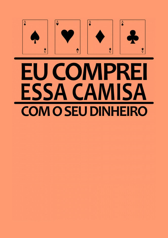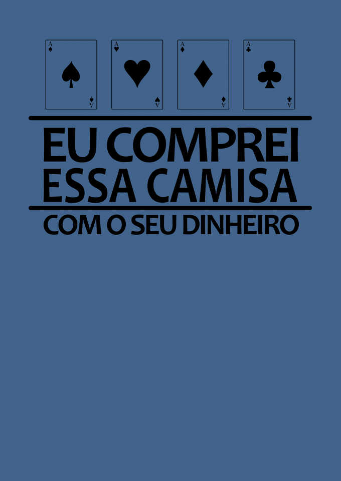 <h3>Camiseta N5 Poker Funny - Seu dinheiro</h3><p>Confeccionada em malha <strong>Confort 100% algodão</strong> as camisetas <strong>n5 Poker</strong> possui estampa em <strong>Silk Digital</strong> no tamanho A3. Elas são pré lavadas, pré encolhidas e com costura reforçada, garantindo o conforto e durabilidade da sua camiseta.<br />Para quem ama jogar <strong>Poker</strong> e quer tirar uma onda com os adversários, a <strong>n5 Poker</strong> traz as melhores estampas para você!</p><p><strong>Tamanhos</strong></p><p>P, M, G e GG</p><p><br /><strong>poker, funny, cassino, black jack, carta, cartas, jogo, roleta, 21, coringa, joker, card, cards, vegas, las vegas, cassinos, poquer, n5, new, fives, lifestyle, jogo, game, flop, turn, river,  </strong></p>