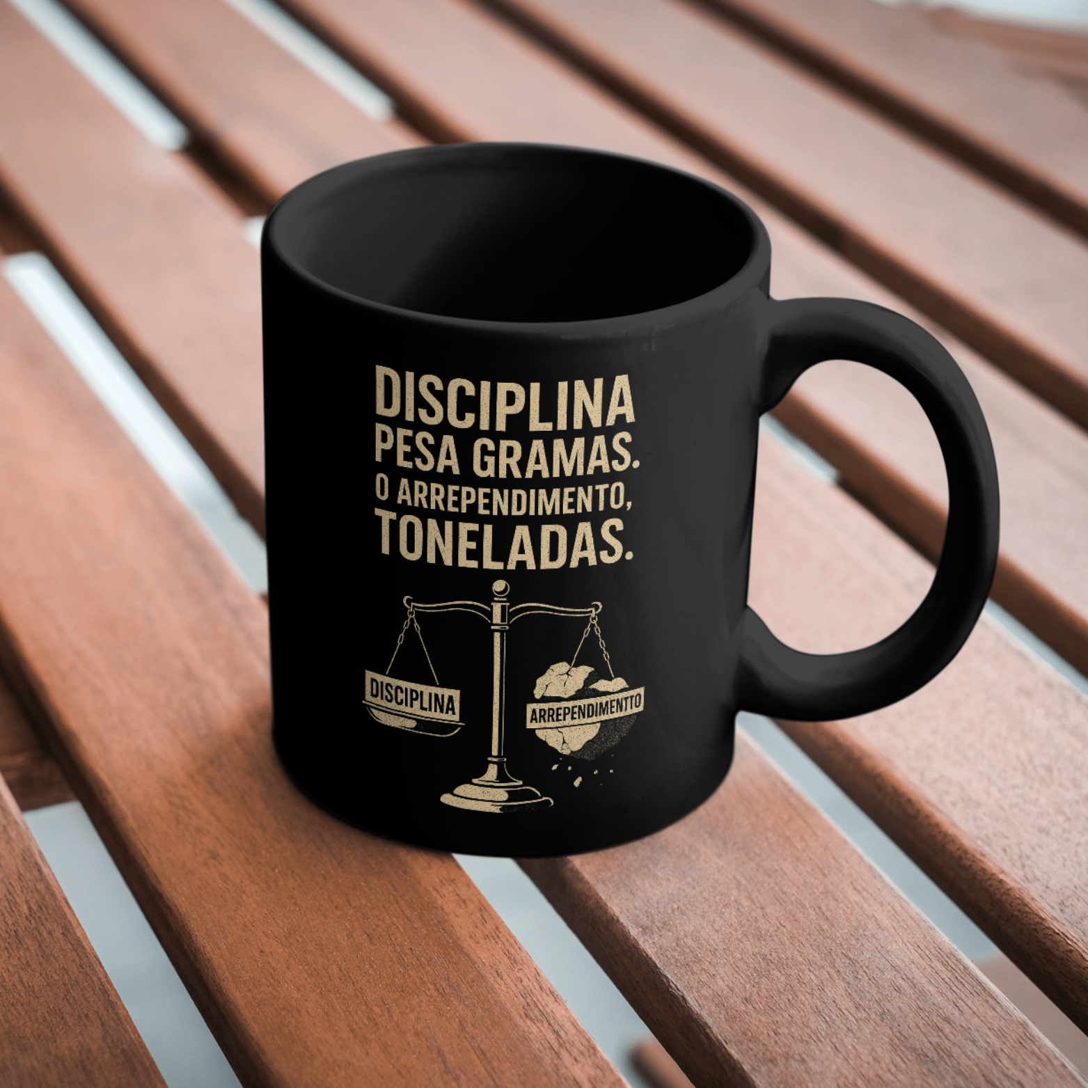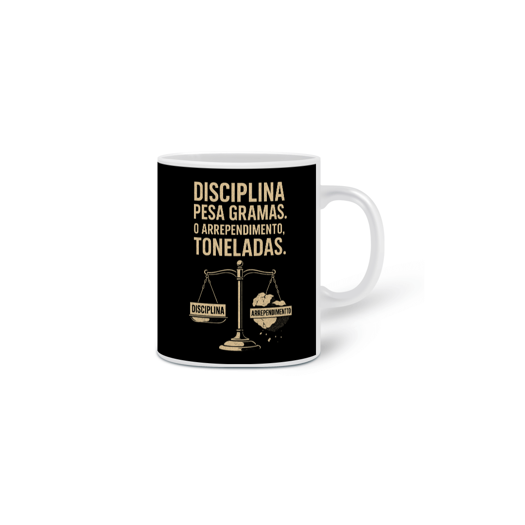 Com a logo da comunidade Na Base da Disciplina e uma estampa preta impactante, essa caneca é pra quem entende que o sucesso vem através da dedicação diária. Ela representa a força de vontade de quem escolhe agir com disciplina e constância, em vez de se deixar levar por desculpas ou arrependimentos.