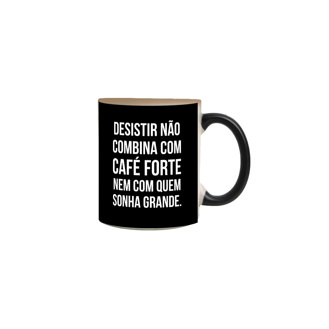 A caneca mágica é toda preta quando está fria. Mas basta colocar o café ou chá quente que a mágica acontece: a estampa começa a surgir, revelando uma mensagem poderosa que representa quem sonha alto e se recusa a parar no meio do caminho.