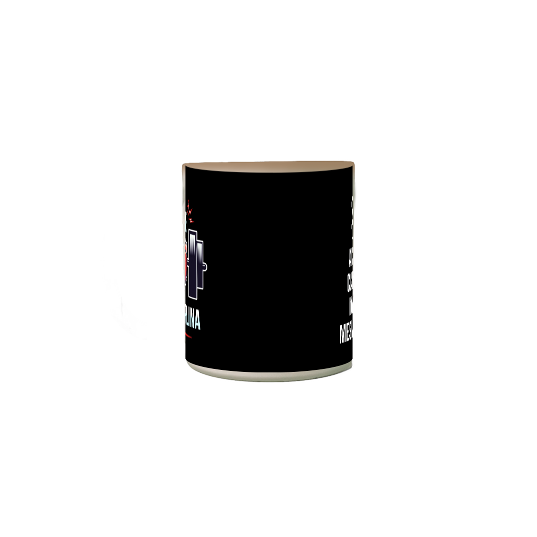 E agora ela vem em uma versão mágica — literalmente. À primeira vista, a caneca parece comum, preta e discreta. Mas é só colocar o café ou a água quente que o recado aparece como mágica: a imagem e a frase surgem aos poucos, revelando sua força.