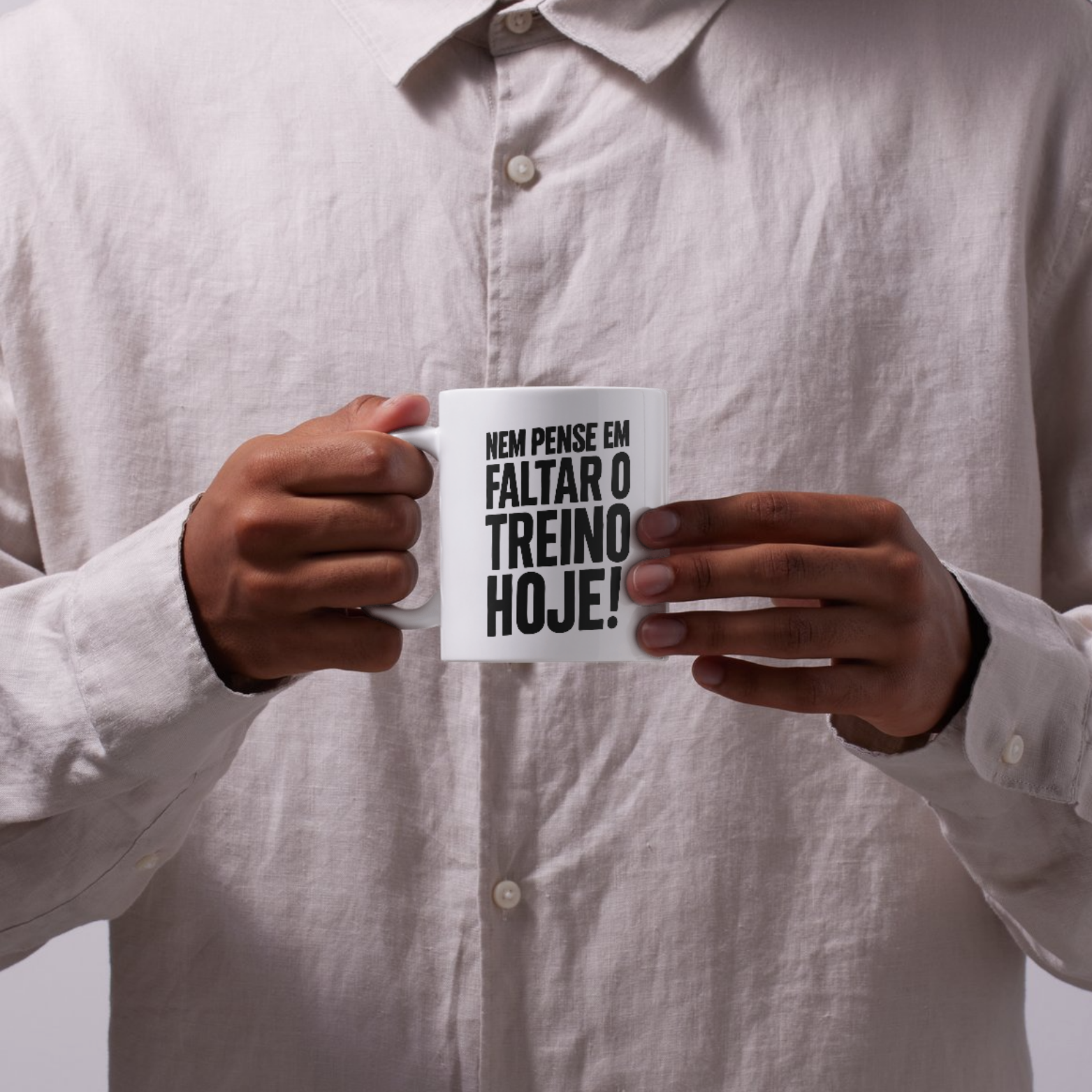 Com a logo da comunidade Na Base da Disciplina, essa caneca não dá espaço pra desculpa. É um comando. Uma ordem. Aquele tipo de lembrete que bate no peito antes de bater no despertador. Porque quem quer resultado, não negocia presença.