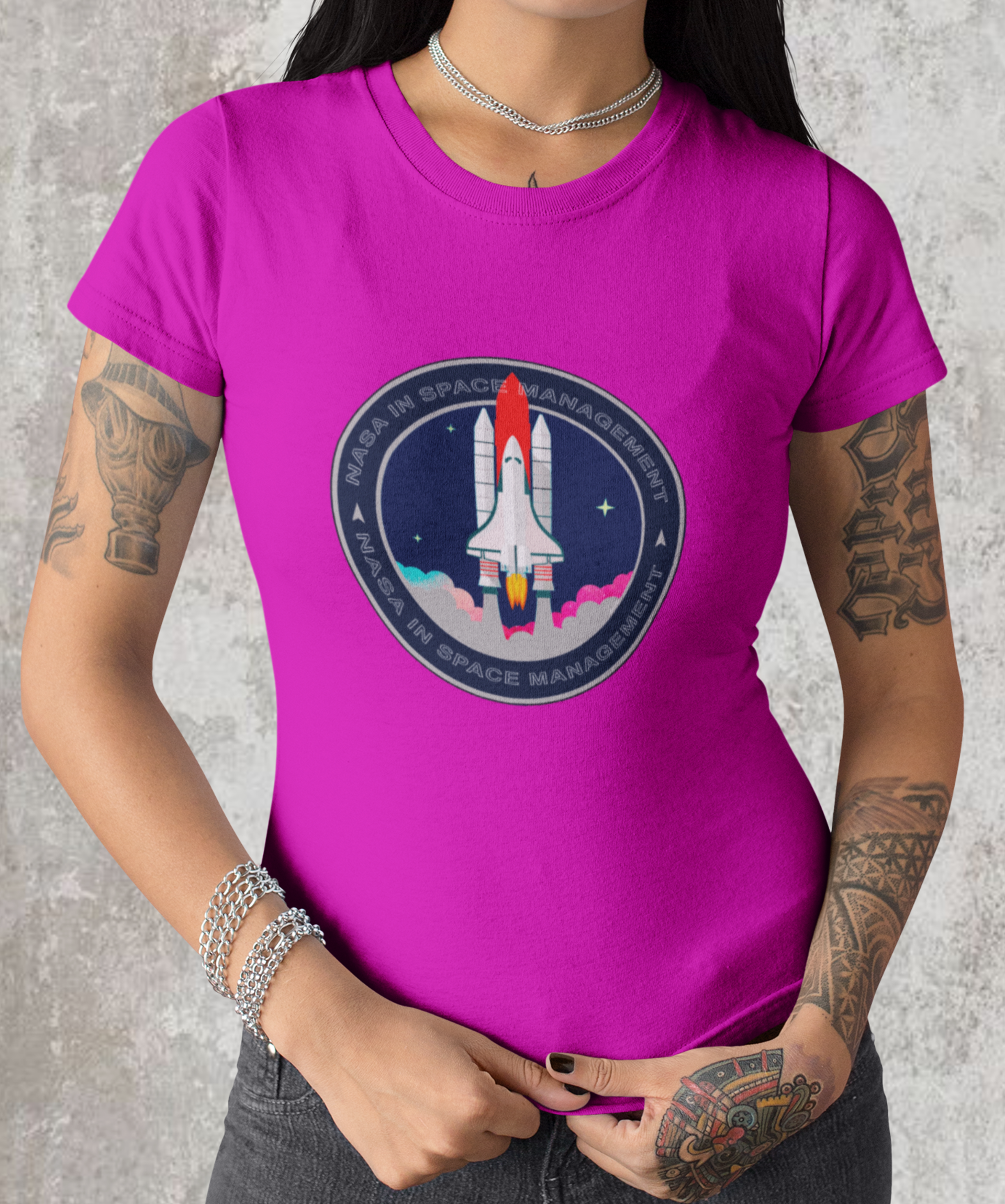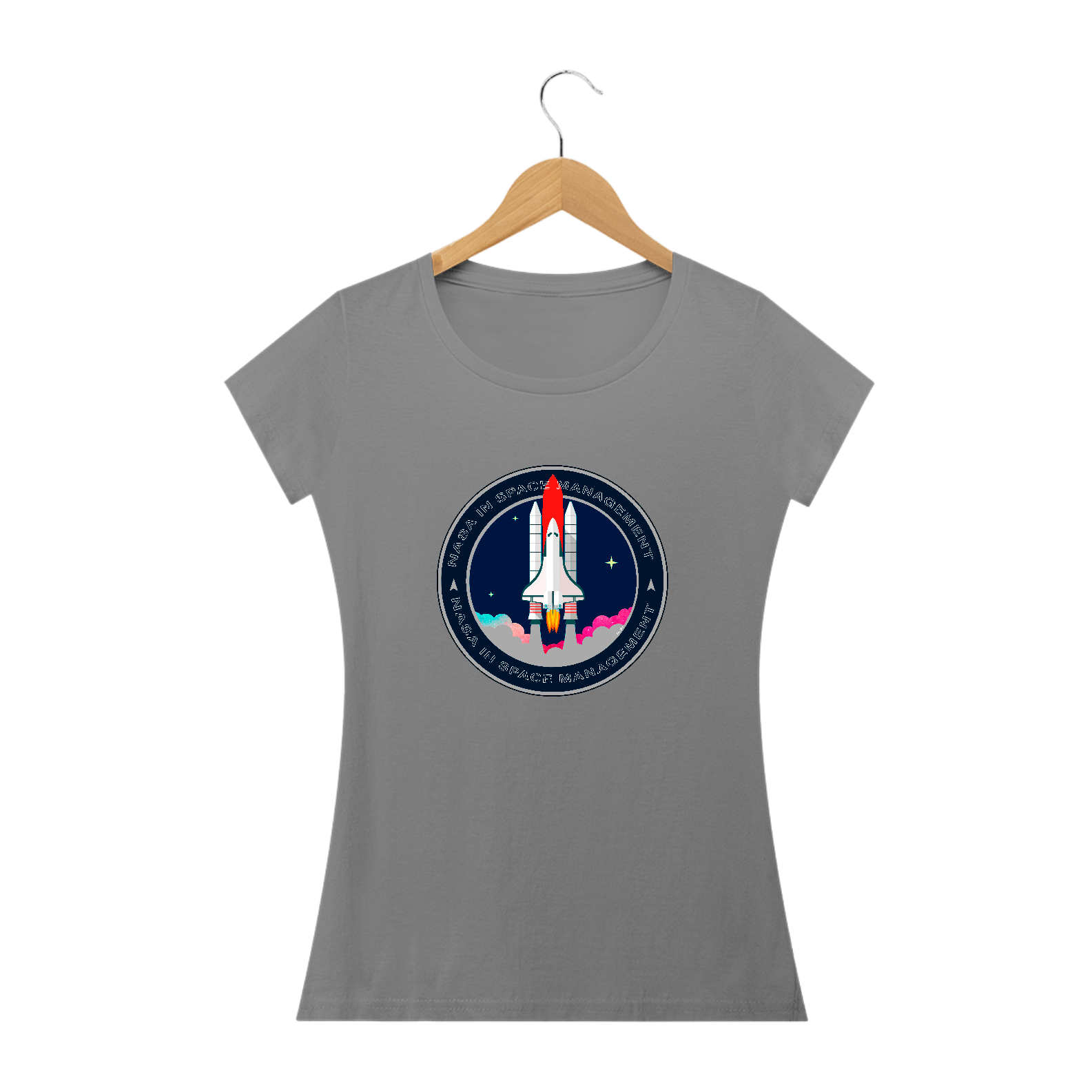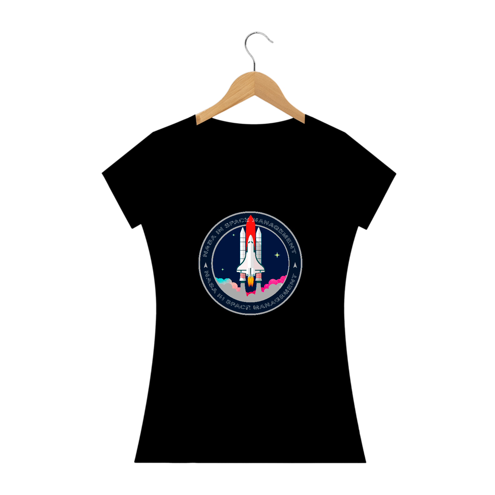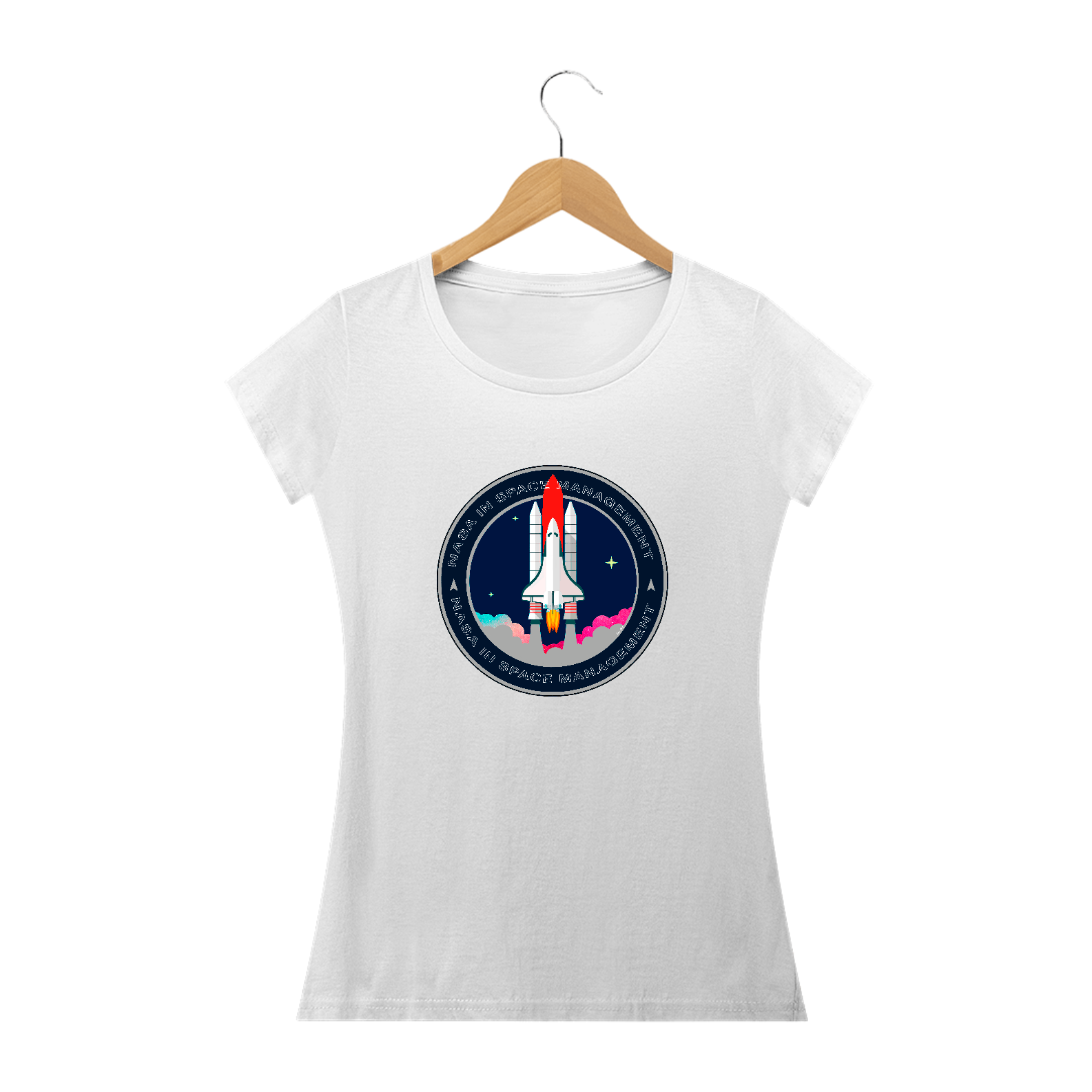 A camiseta estampada com desenhos de temas espaciais, como foguetes ou planetas, é uma peça de vestuário criativa e divertida, como imagens de foguetes decolando, planetas ou outros corpos celestes.