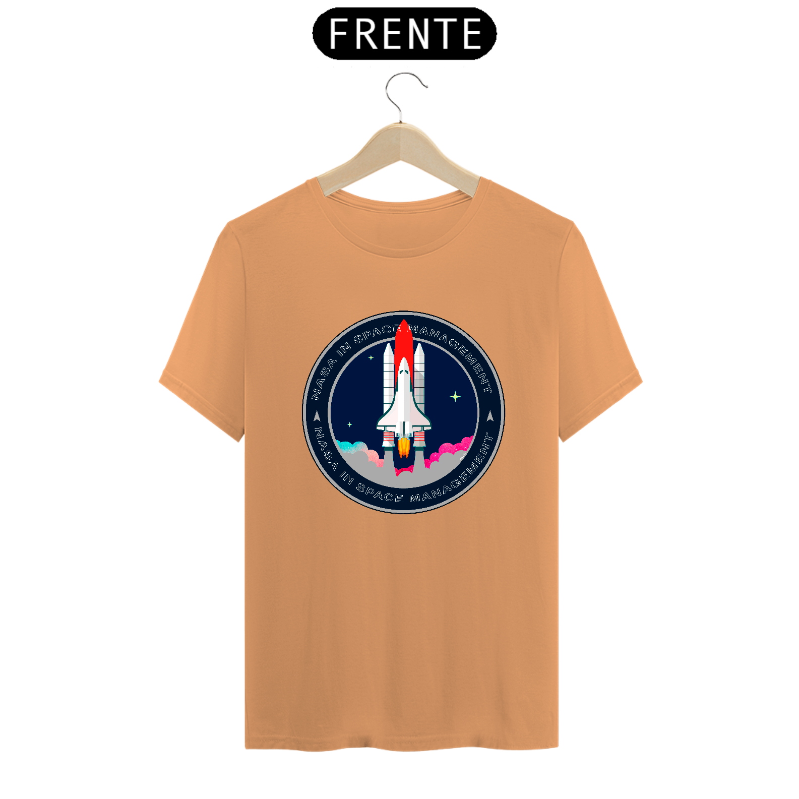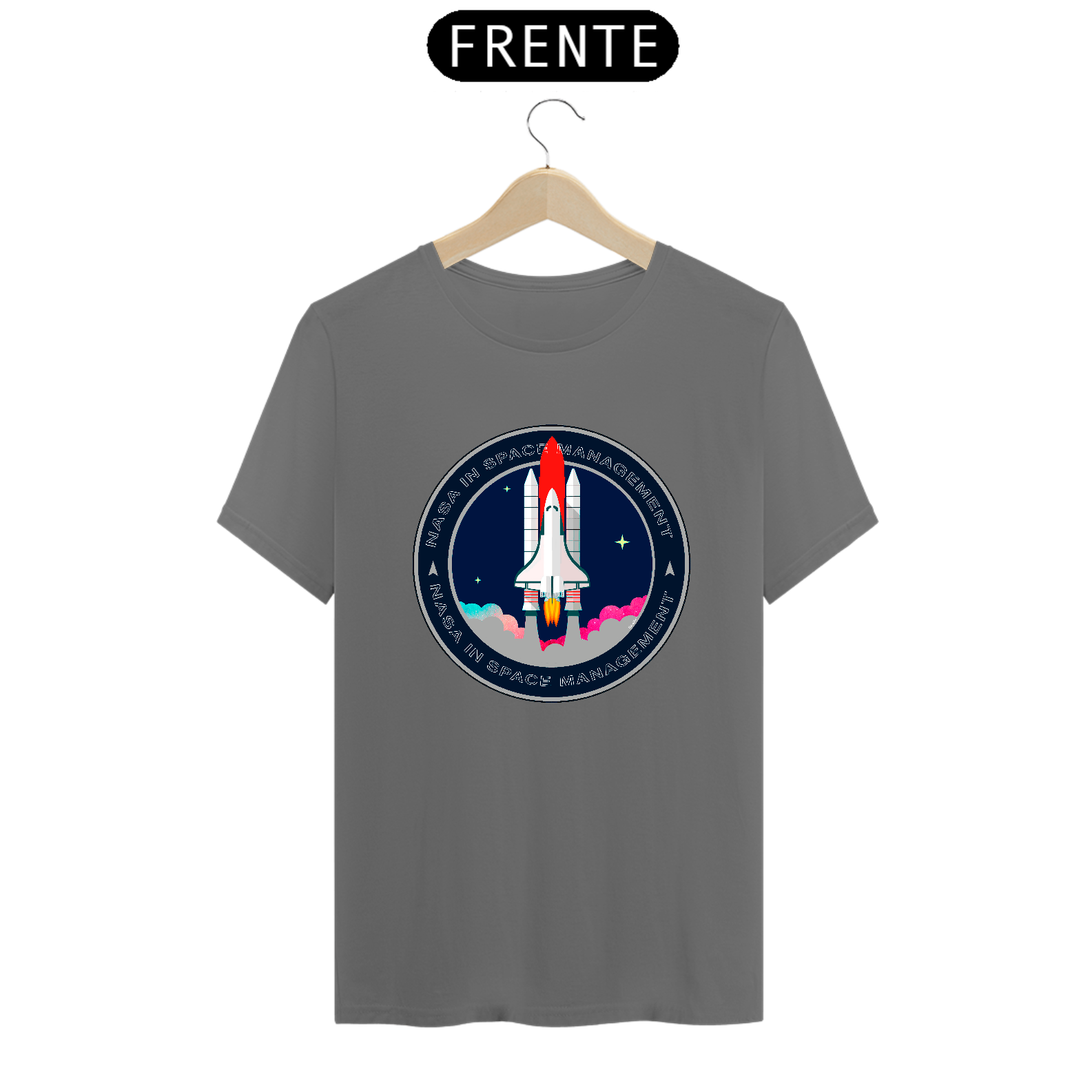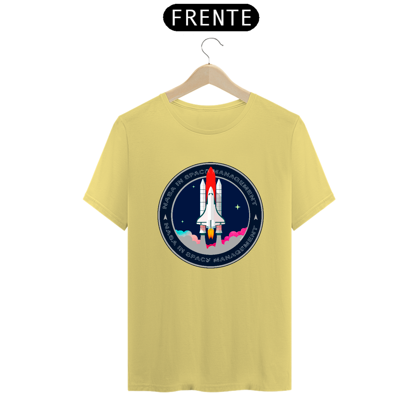 A camiseta estampada com desenhos de temas espaciais, como foguetes ou planetas, é uma peça de vestuário criativa e divertida, como imagens de foguetes decolando, planetas ou outros corpos celestes.