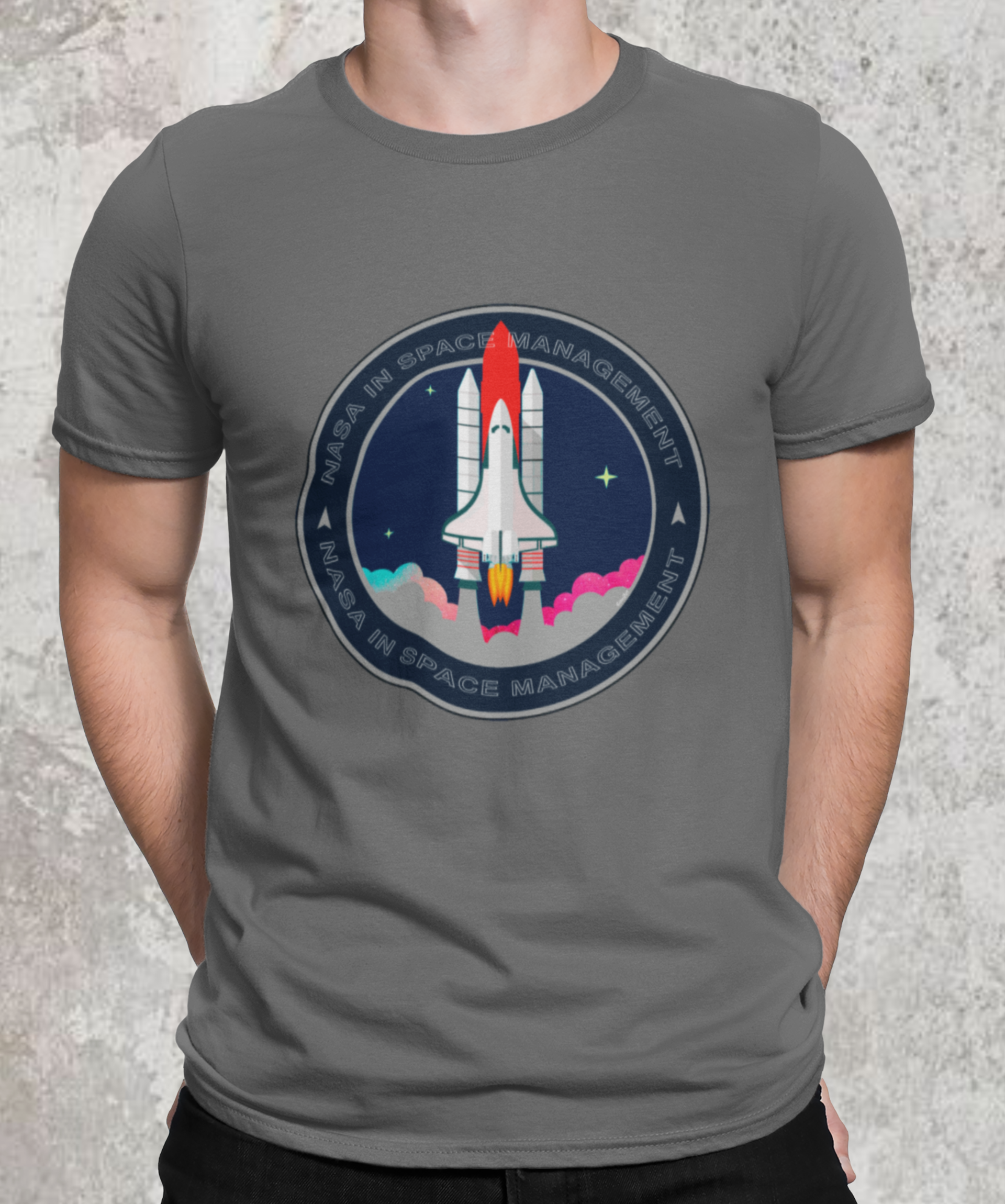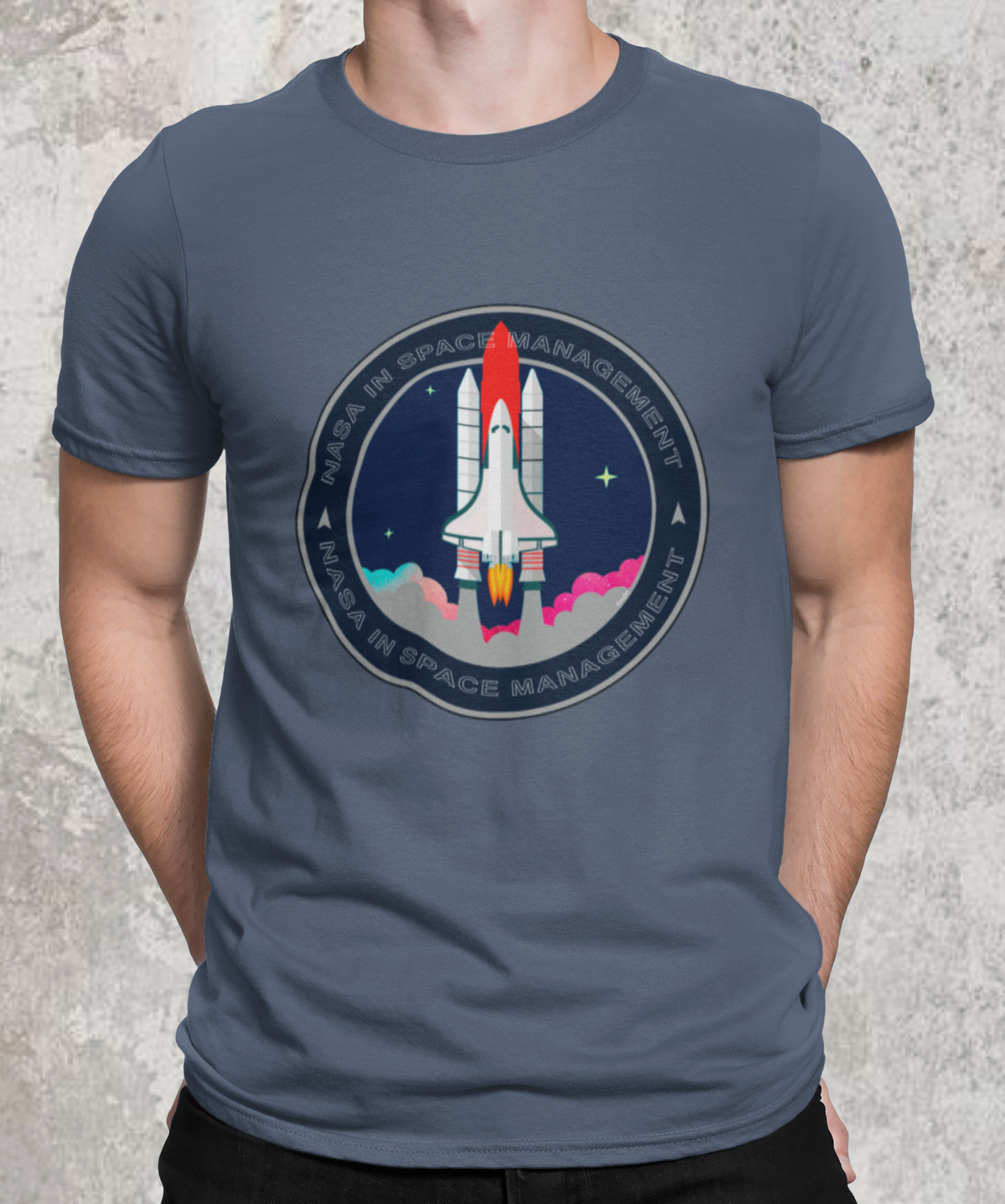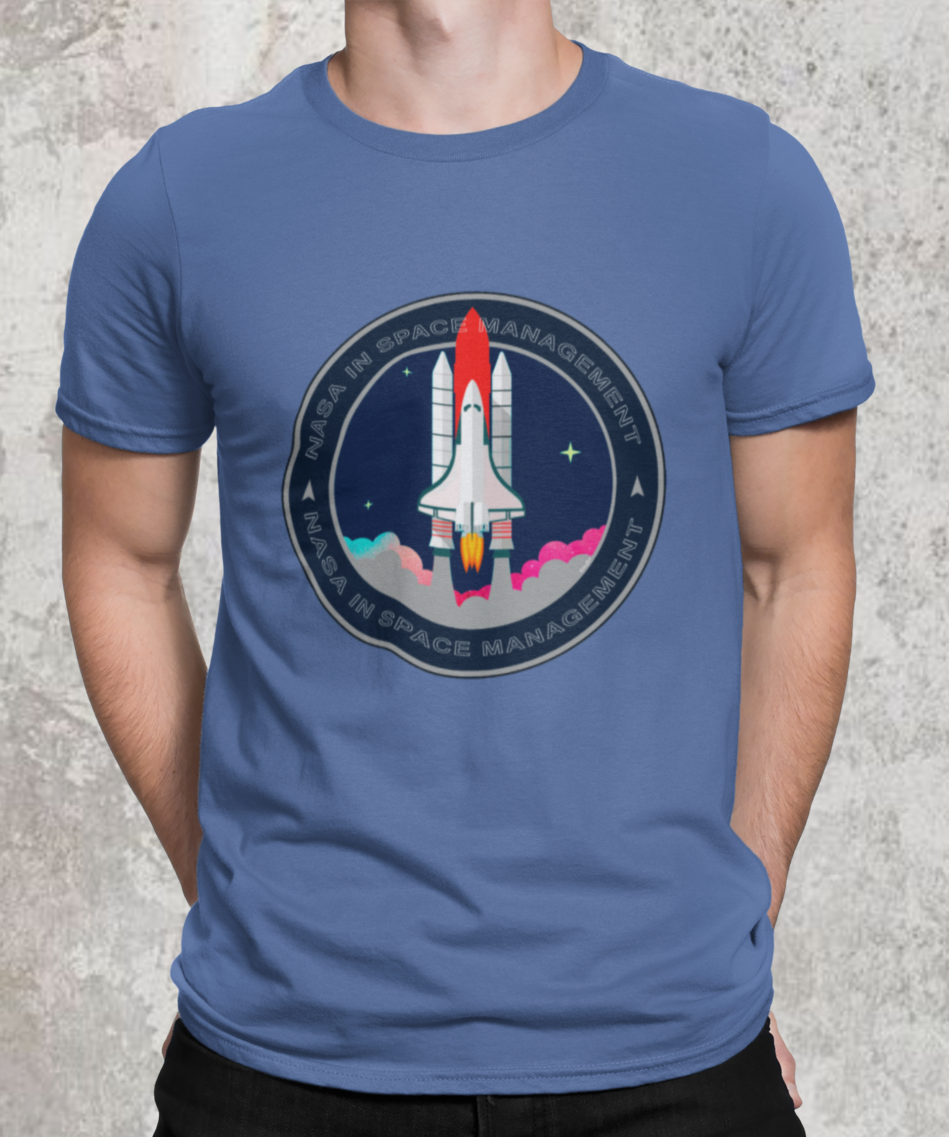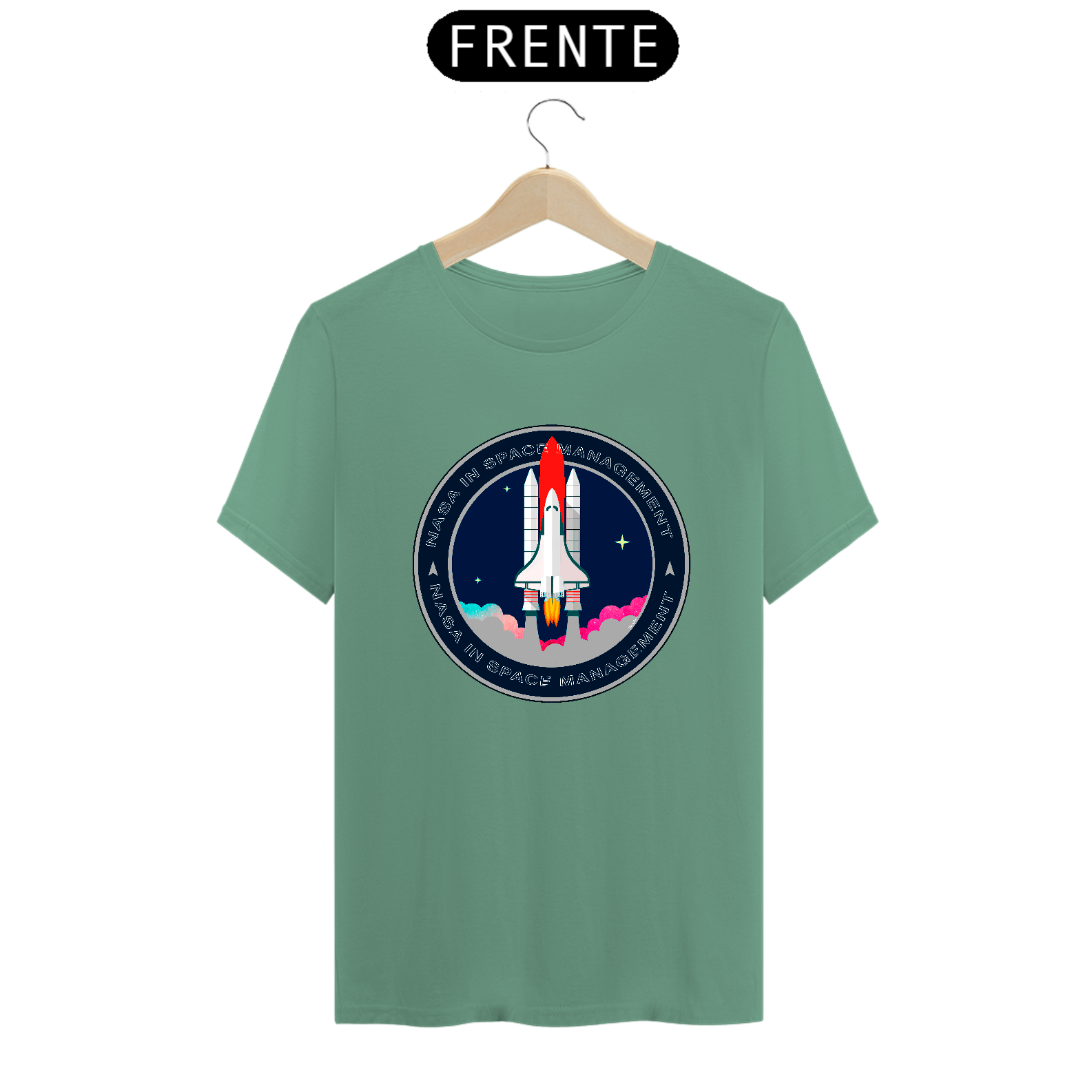 A camiseta estampada com desenhos de temas espaciais, como foguetes ou planetas, é uma peça de vestuário criativa e divertida, como imagens de foguetes decolando, planetas ou outros corpos celestes.