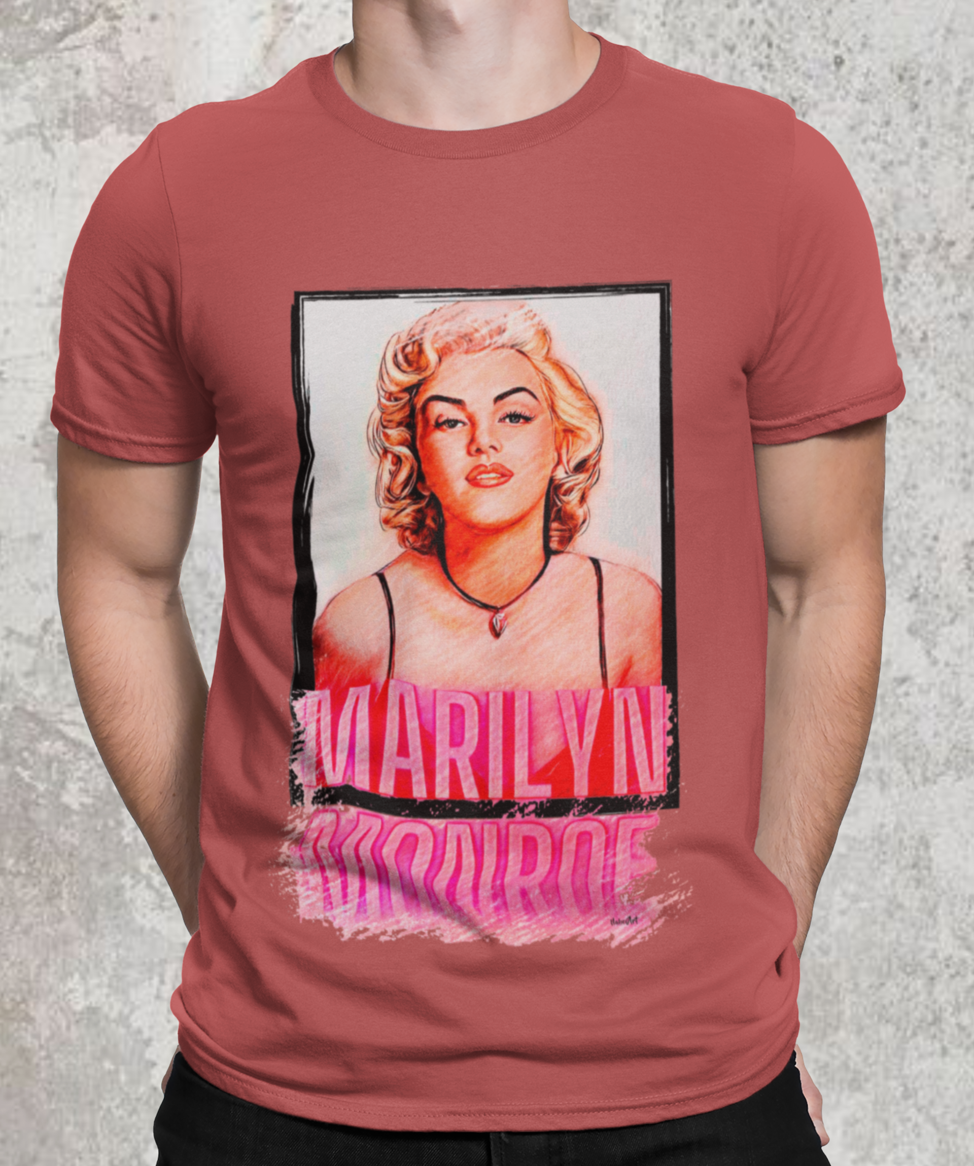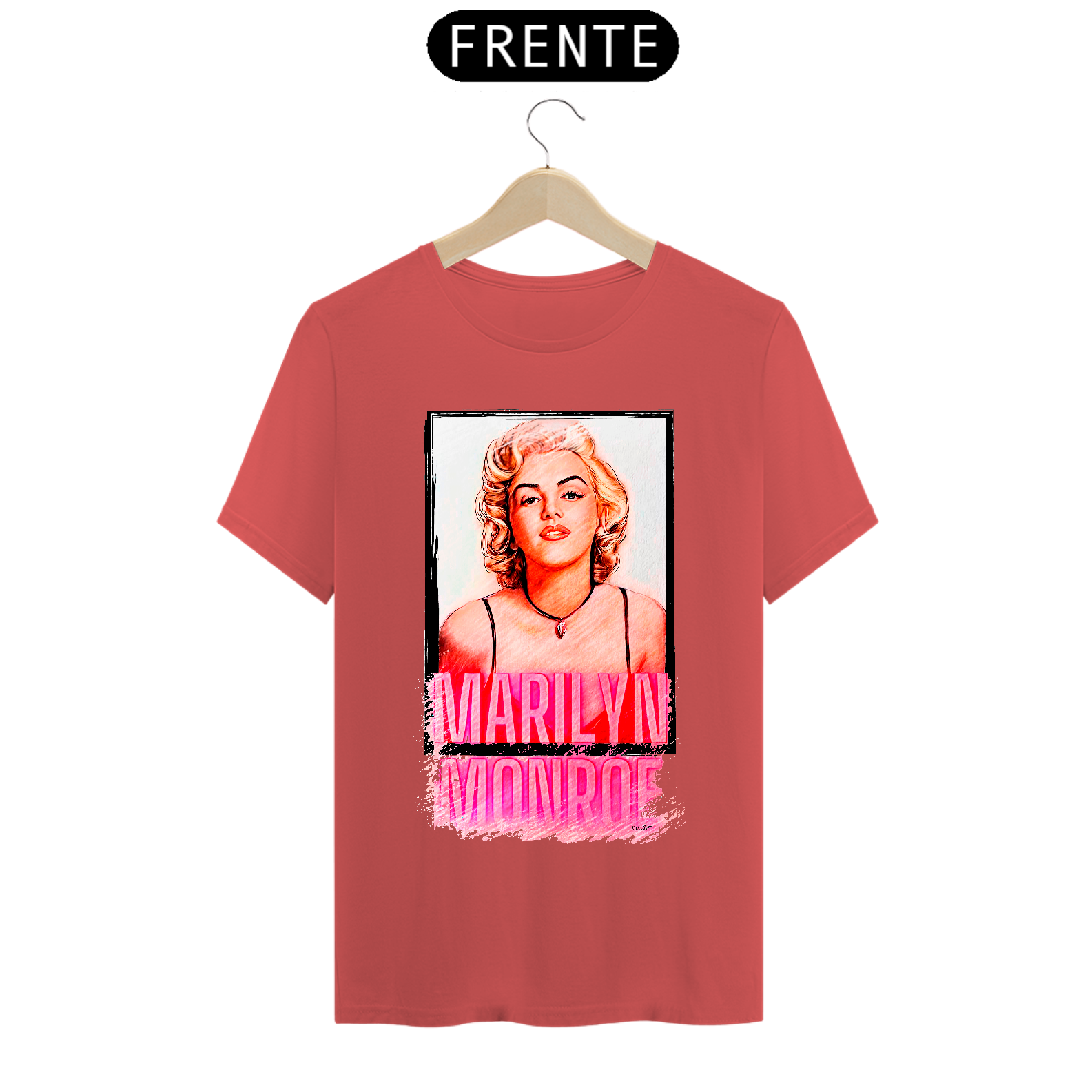 A camiseta estampada com a imagem de Marilyn Monroe é uma peça de vestuário icônica e elegante, perfeita para quem valoriza o estilo vintage e glamouroso.