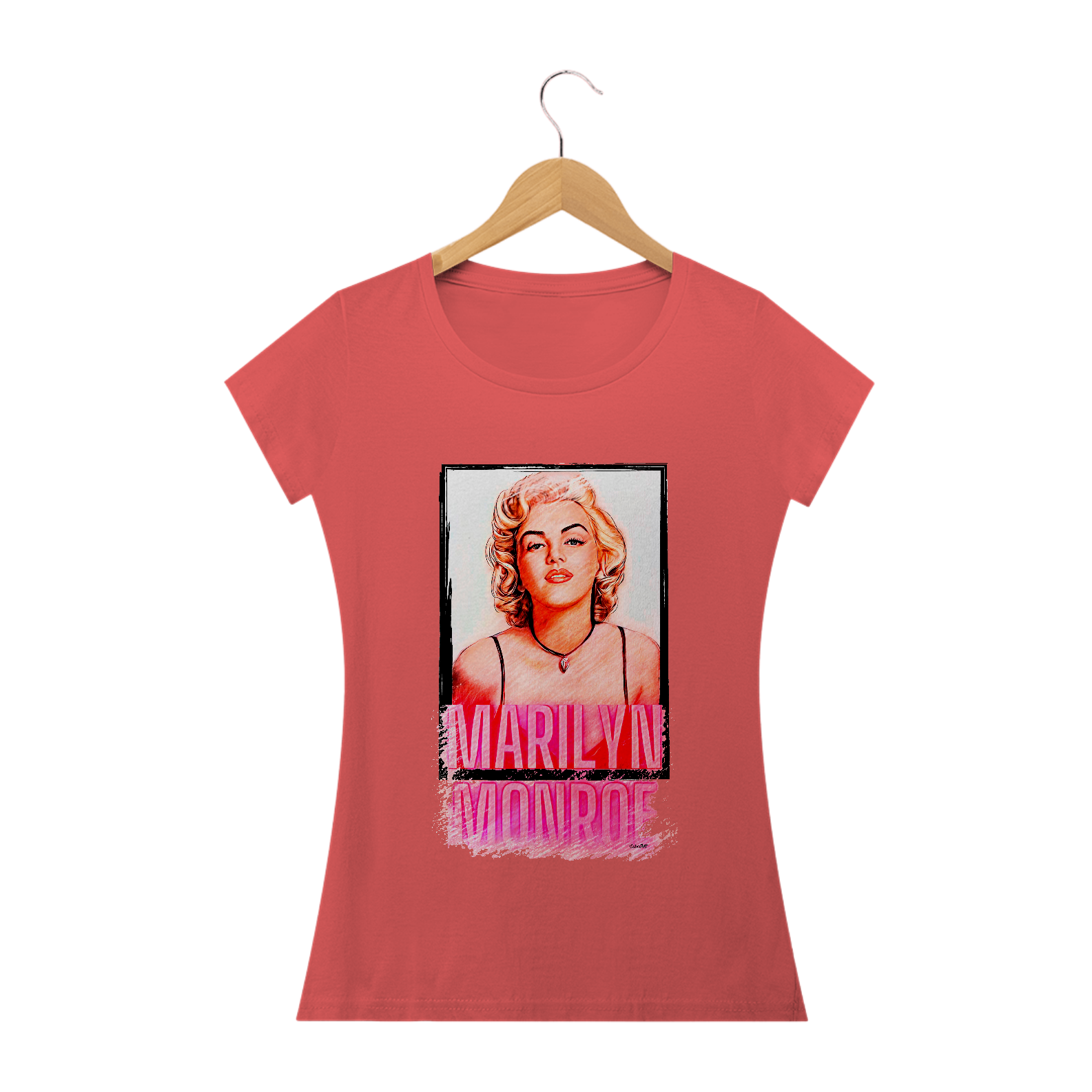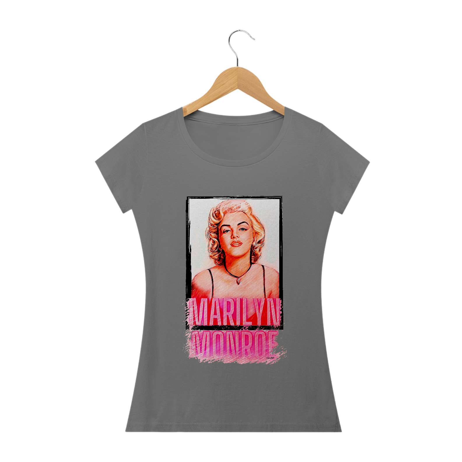 A camiseta estampada com a imagem de Marilyn Monroe é uma peça de vestuário icônica e elegante, perfeita para quem valoriza o estilo vintage e glamouroso.