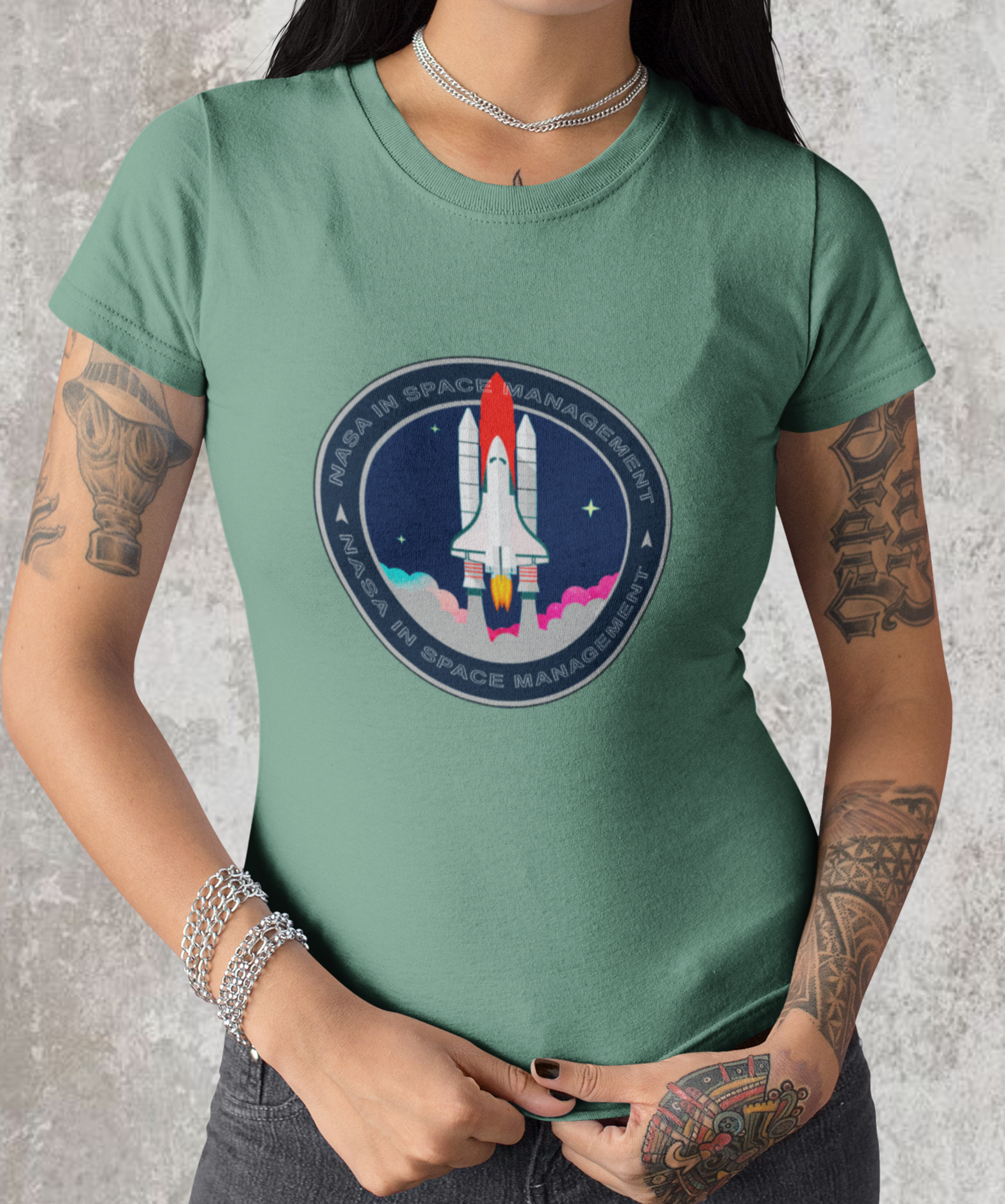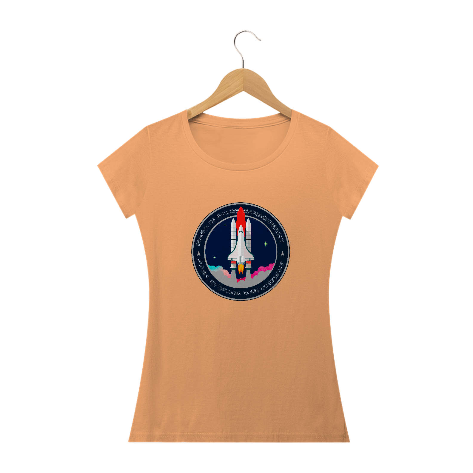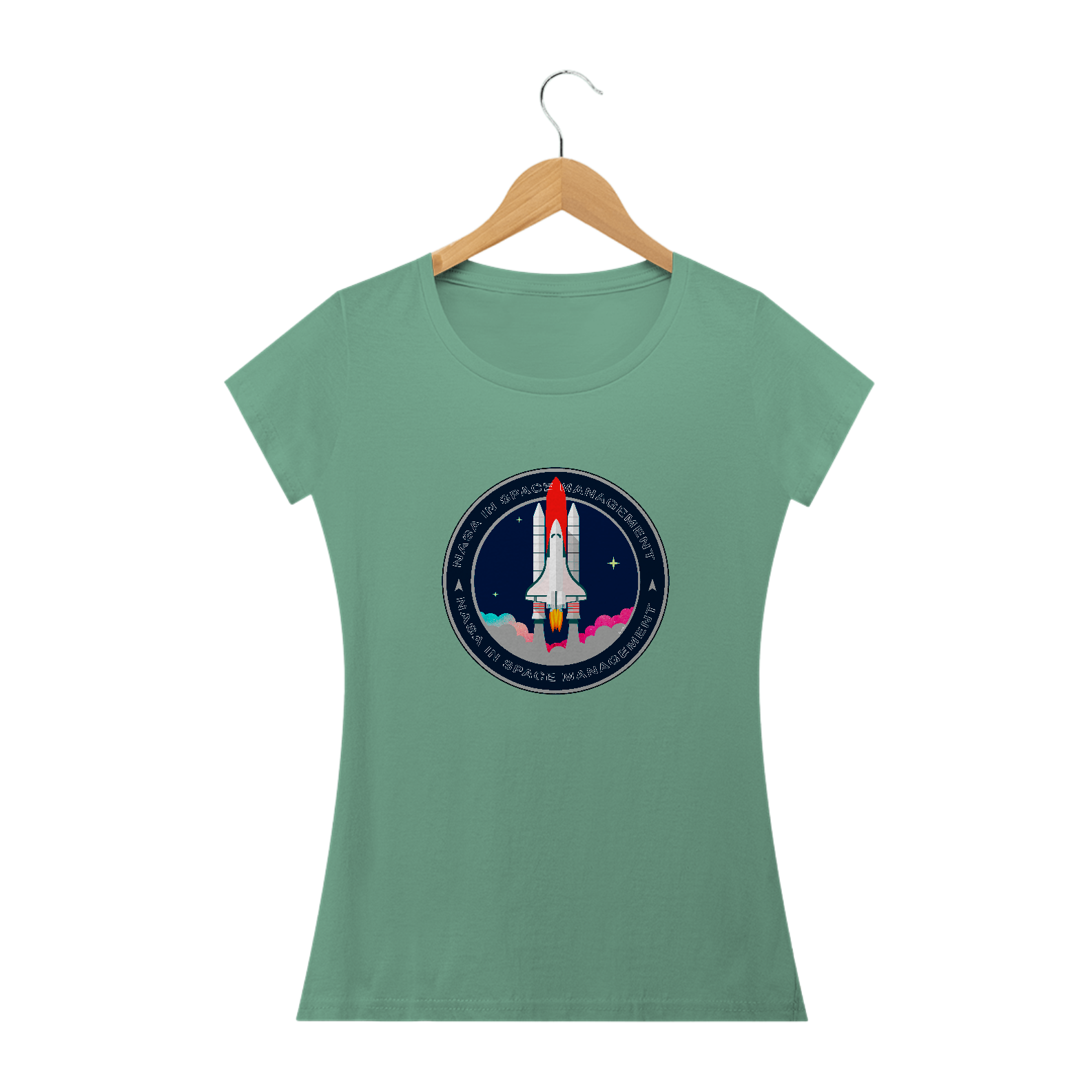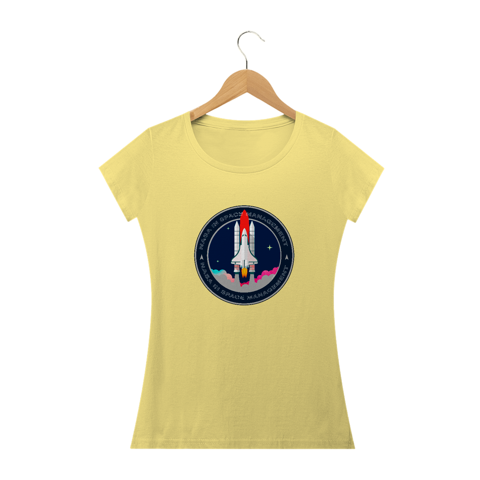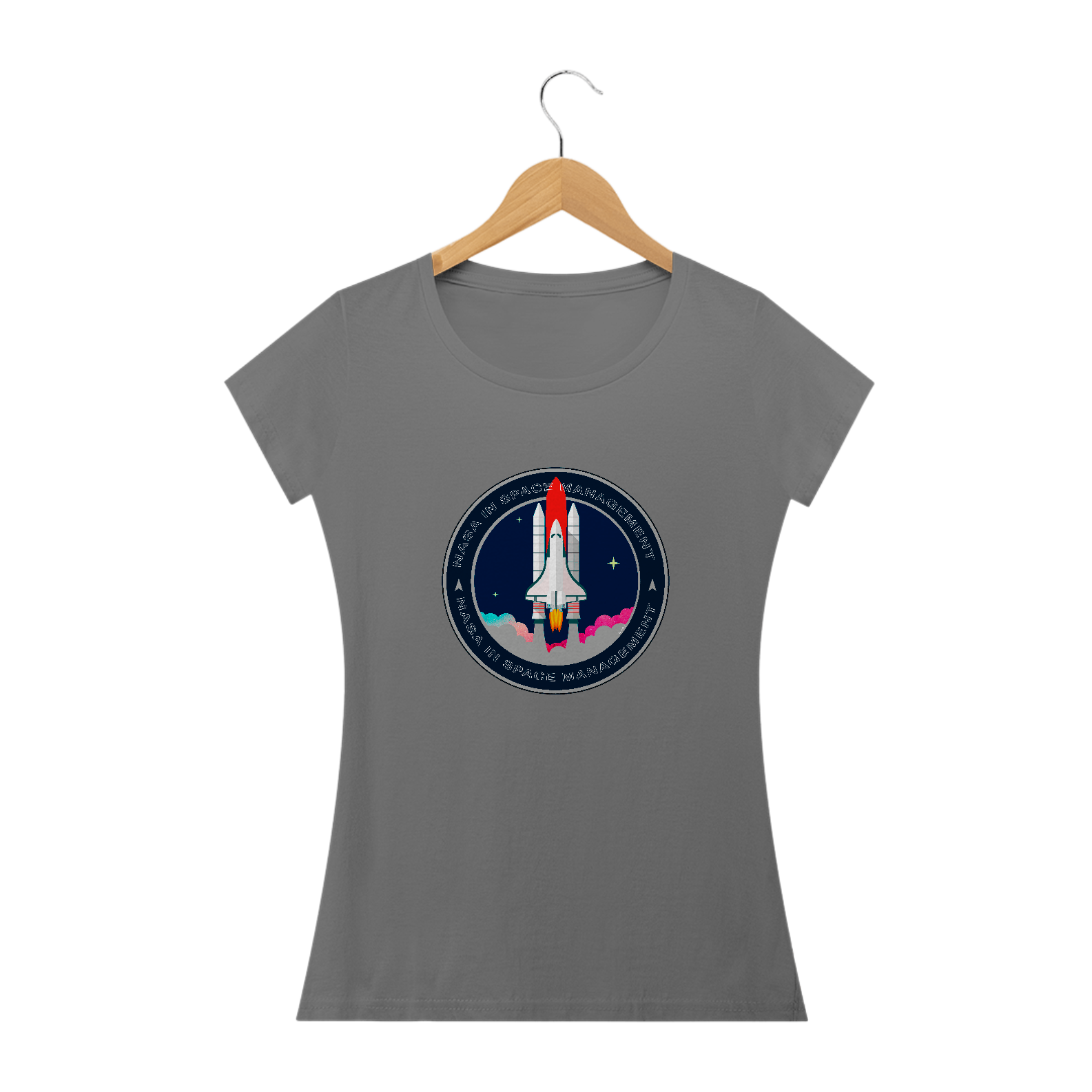 A camiseta estampada com desenhos de temas espaciais, como foguetes ou planetas, é uma peça de vestuário criativa e divertida, como imagens de foguetes decolando, planetas ou outros corpos celestes.