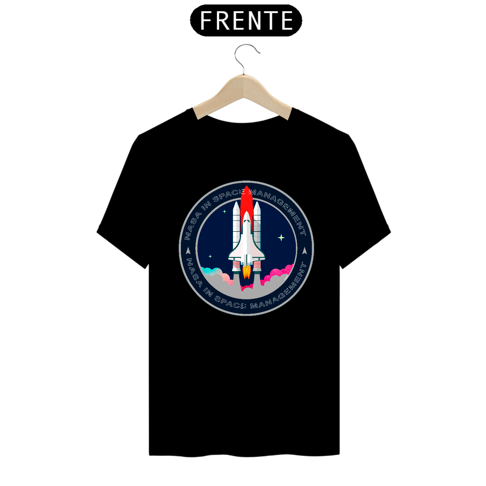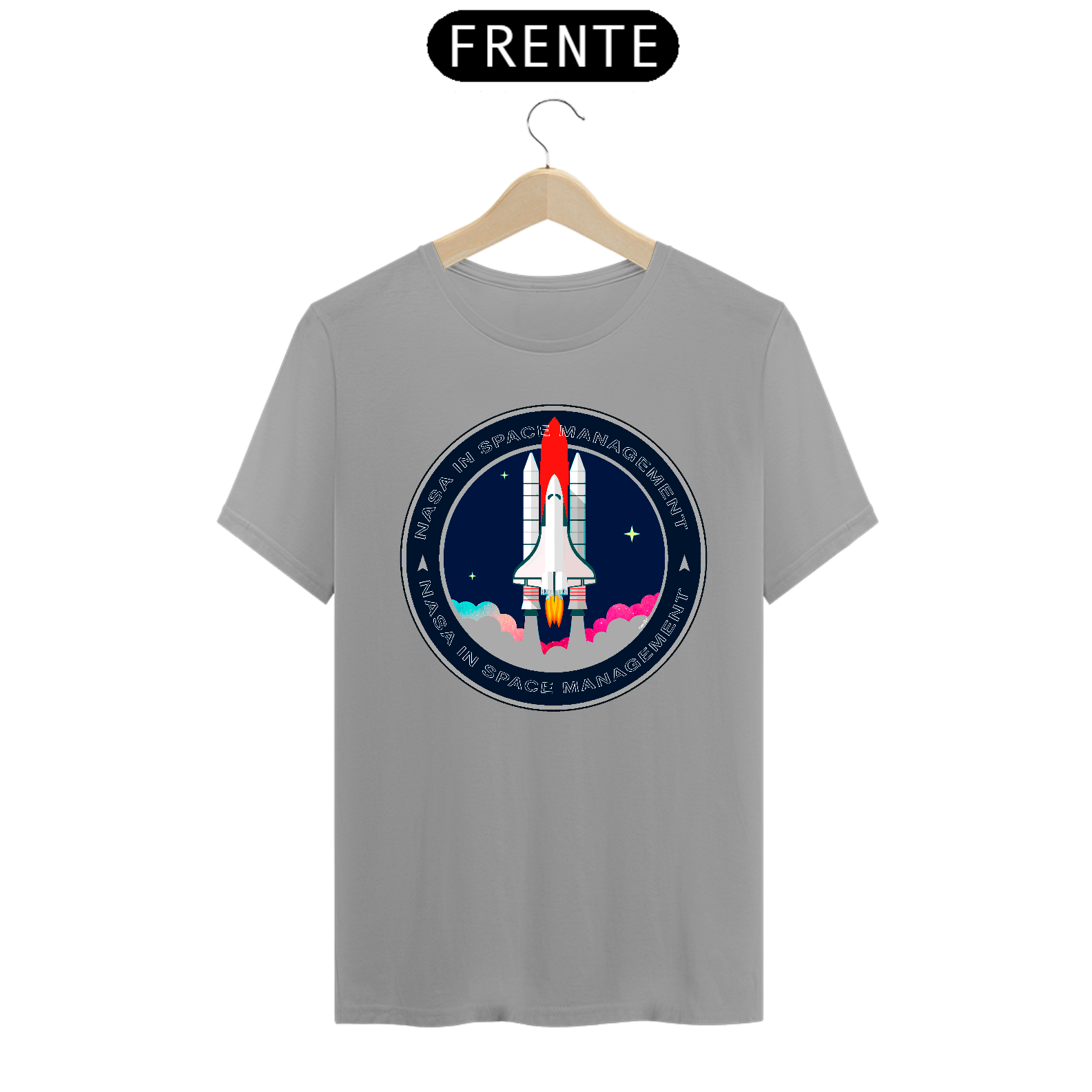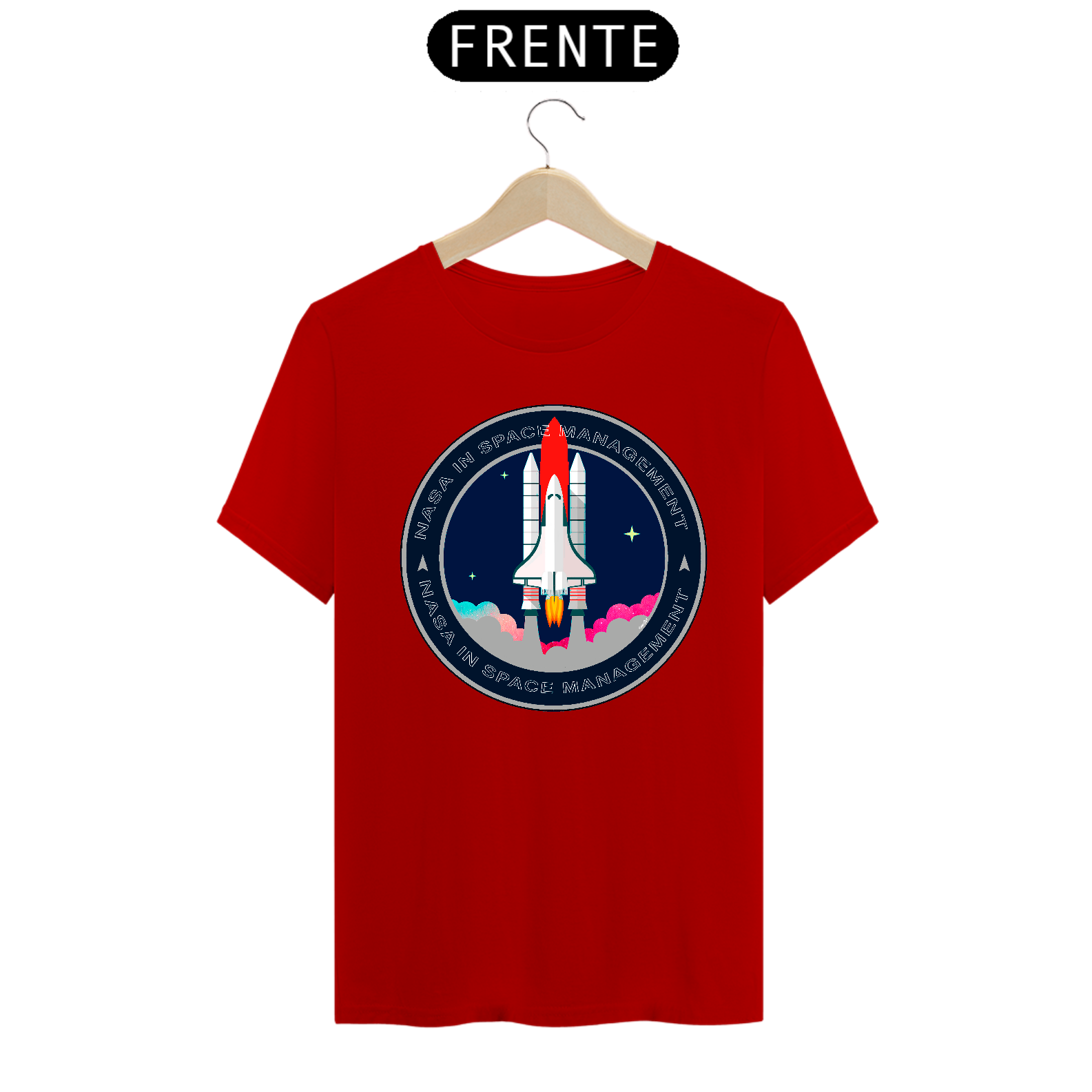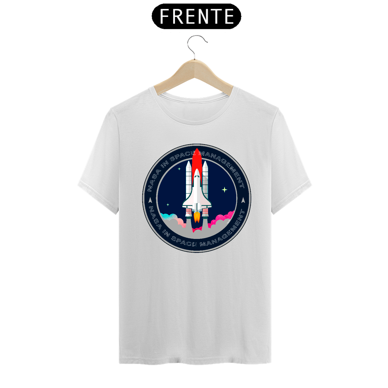 A camiseta estampada com desenhos de temas espaciais, como foguetes ou planetas, é uma peça de vestuário criativa e divertida, como imagens de foguetes decolando, planetas ou outros corpos celestes.