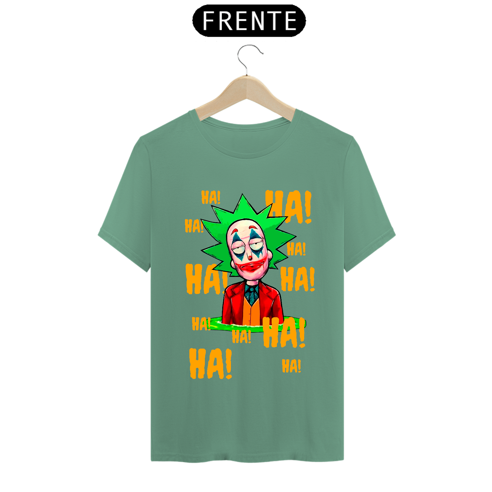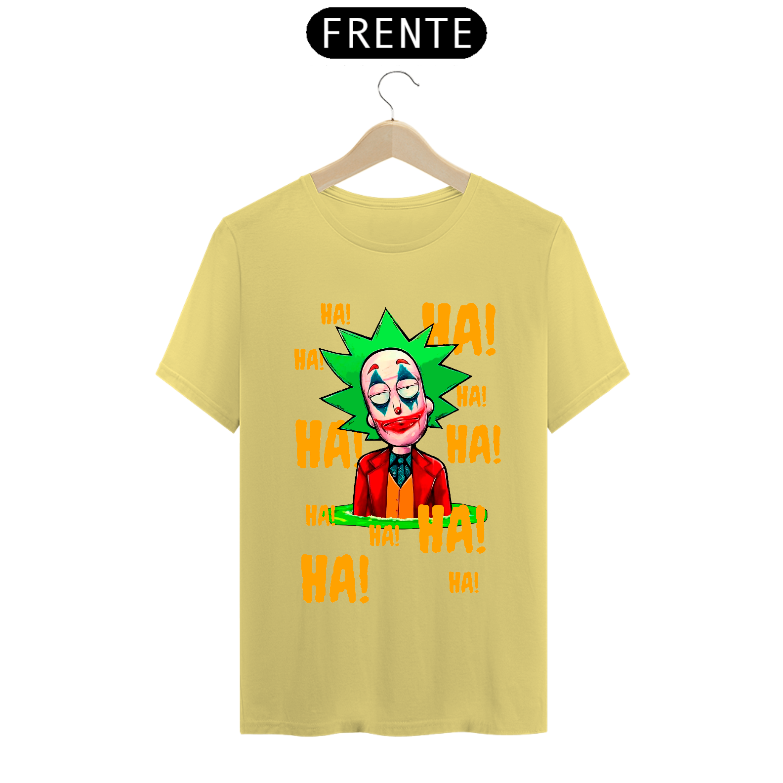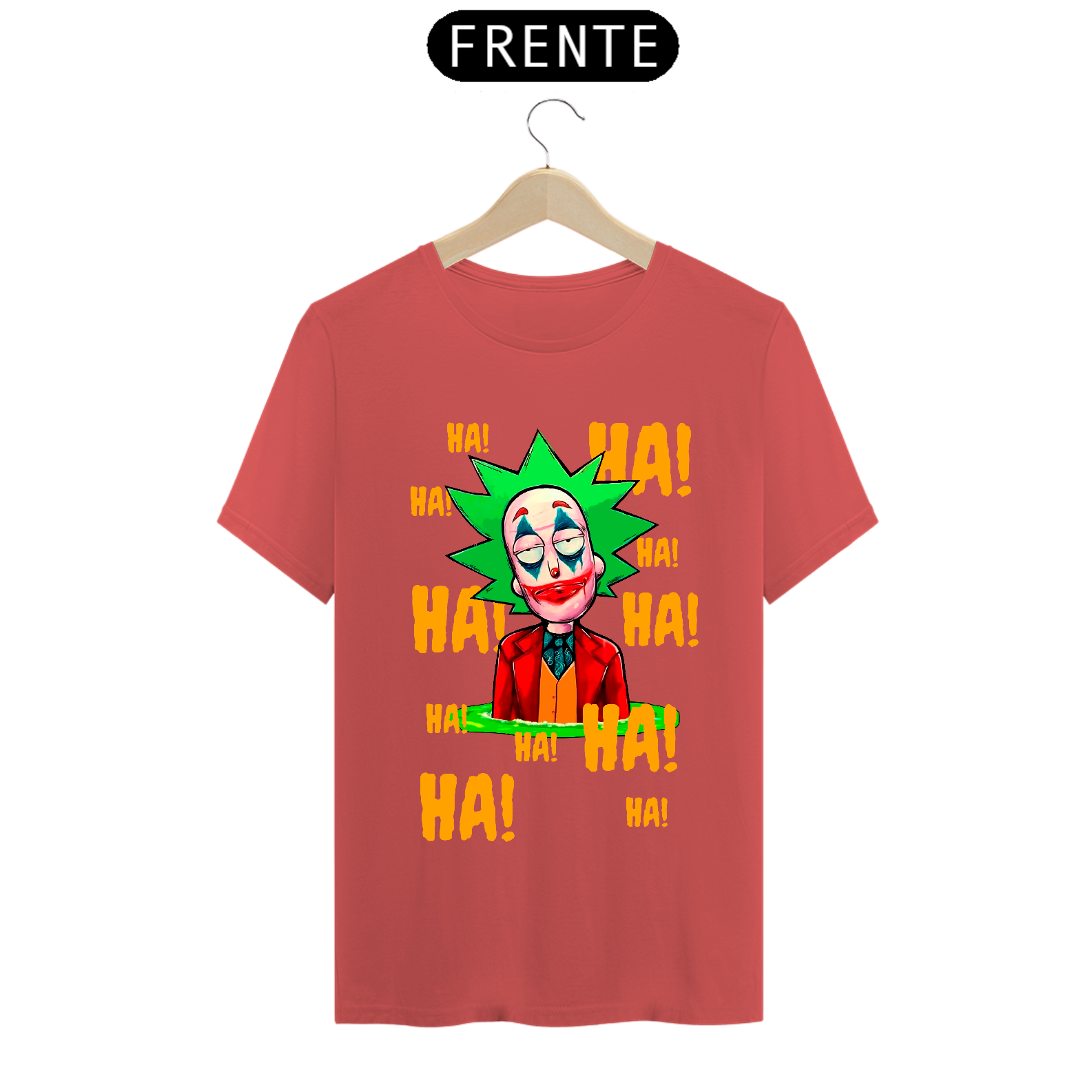 Camiseta com estampa do personagem Rick da série Rick and Morty maquiado com a maquiagem do personagem Curinga é uma camiseta criativa e engraçada que combina dois universos diferentes. Ela tem estampado o rosto do personagem Rick Sanchez, da série Rick and Morty, maquiado com a icônica maquiagem vermelha e branca do personagem Curinga, do universo dos quadrinhos. Esta camiseta é perfeita para fãs de Rick and Morty e fãs de quadrinhos que gostam de misturar referências divertidas e engraçadas em suas roupas.