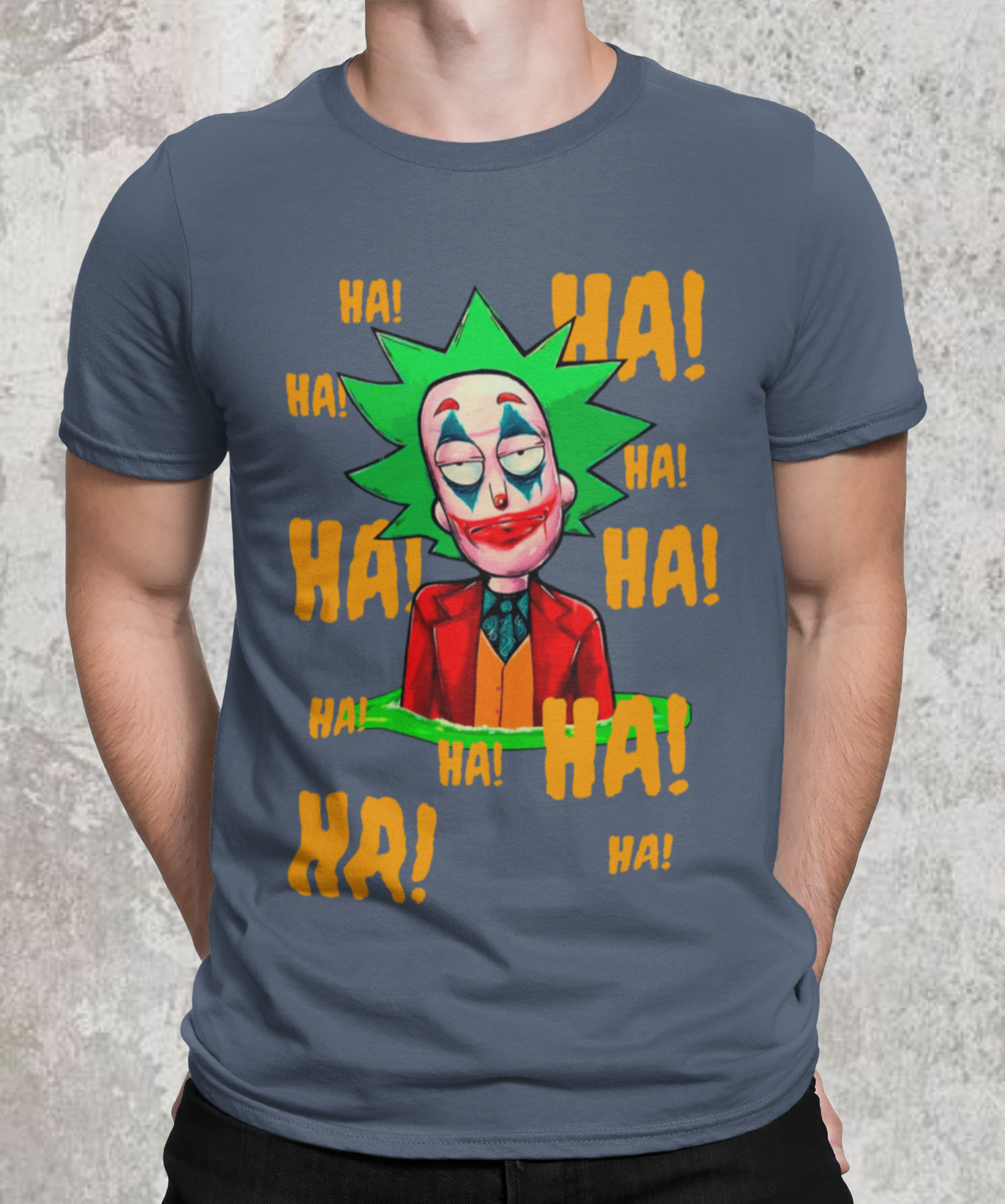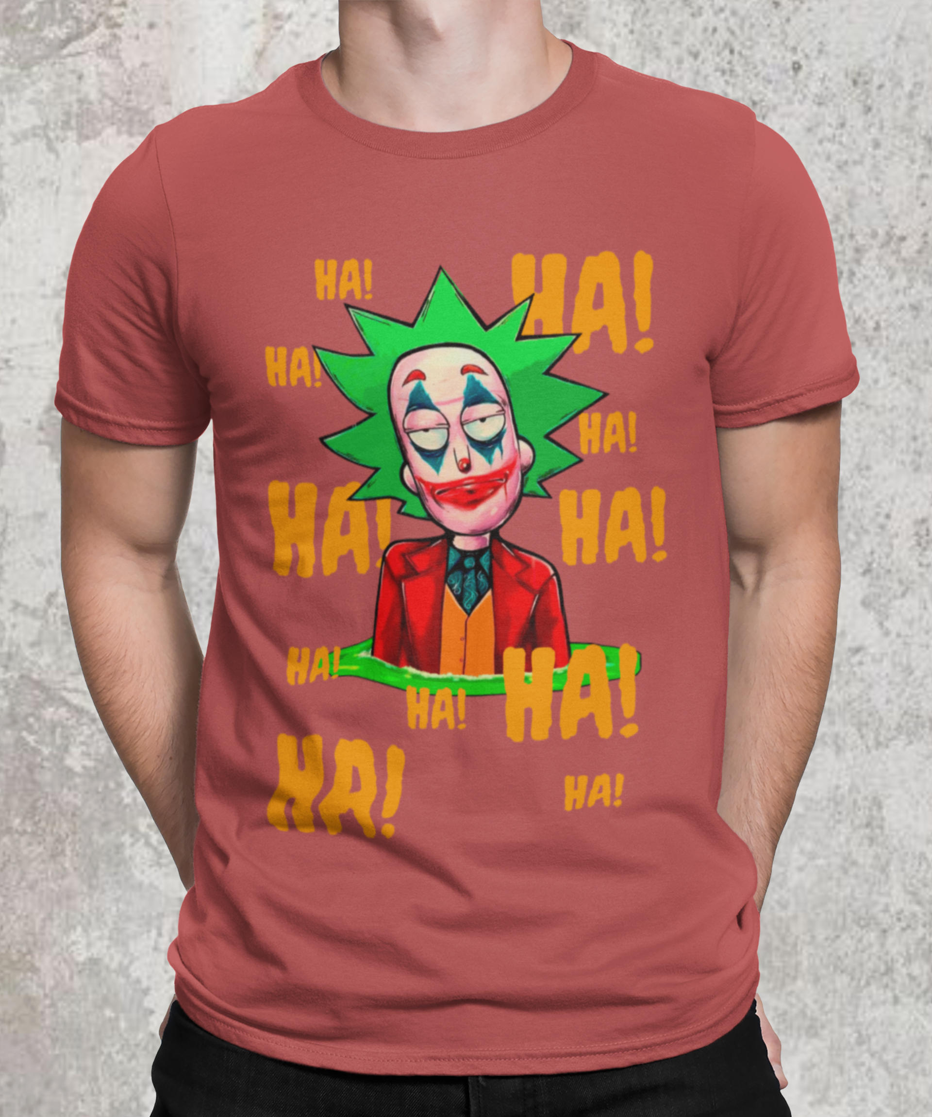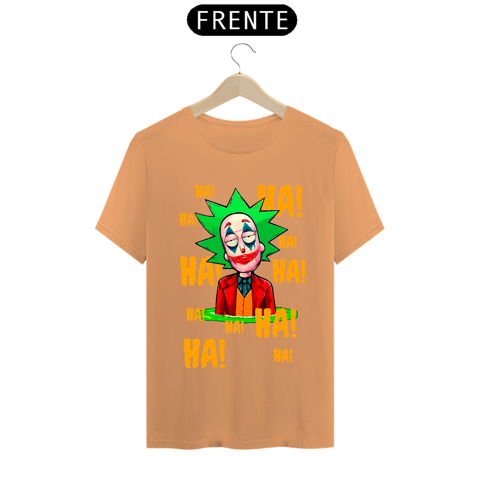 Camiseta com estampa do personagem Rick da série Rick and Morty maquiado com a maquiagem do personagem Curinga é uma camiseta criativa e engraçada que combina dois universos diferentes. Ela tem estampado o rosto do personagem Rick Sanchez, da série Rick and Morty, maquiado com a icônica maquiagem vermelha e branca do personagem Curinga, do universo dos quadrinhos. Esta camiseta é perfeita para fãs de Rick and Morty e fãs de quadrinhos que gostam de misturar referências divertidas e engraçadas em suas roupas.