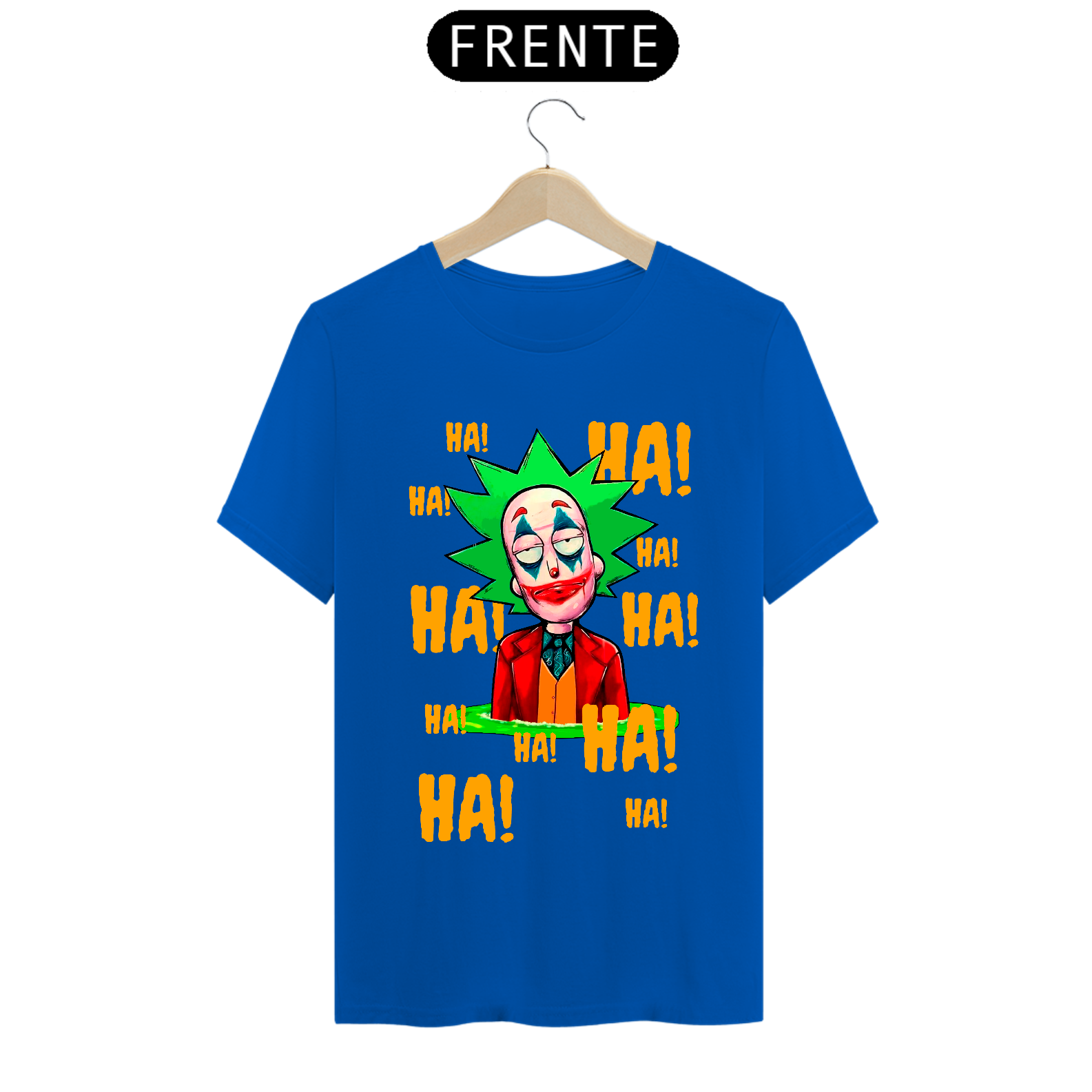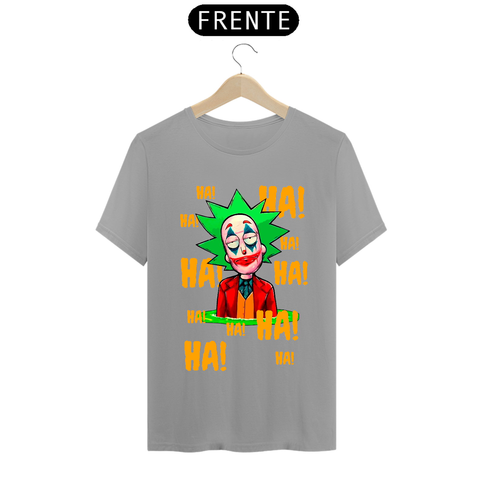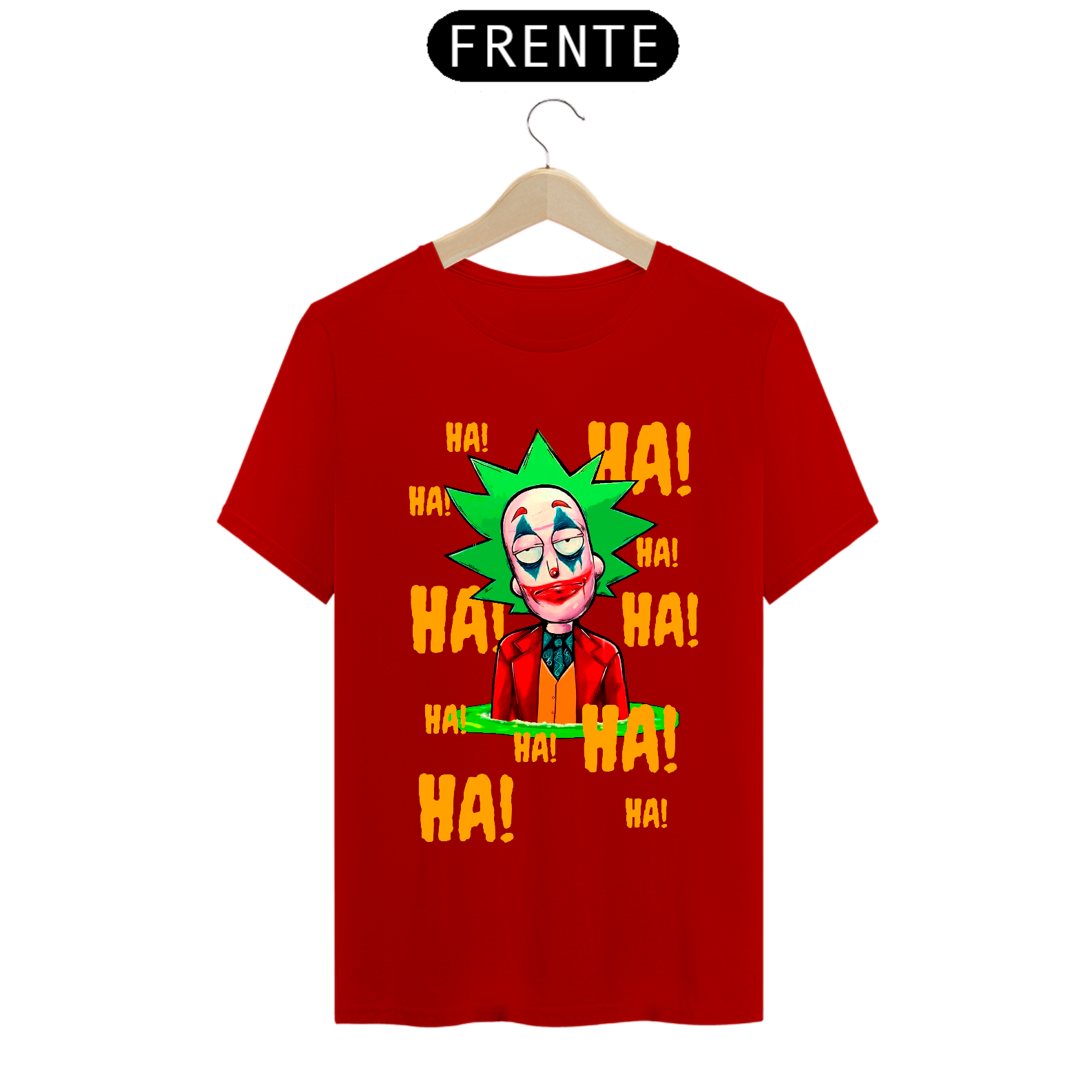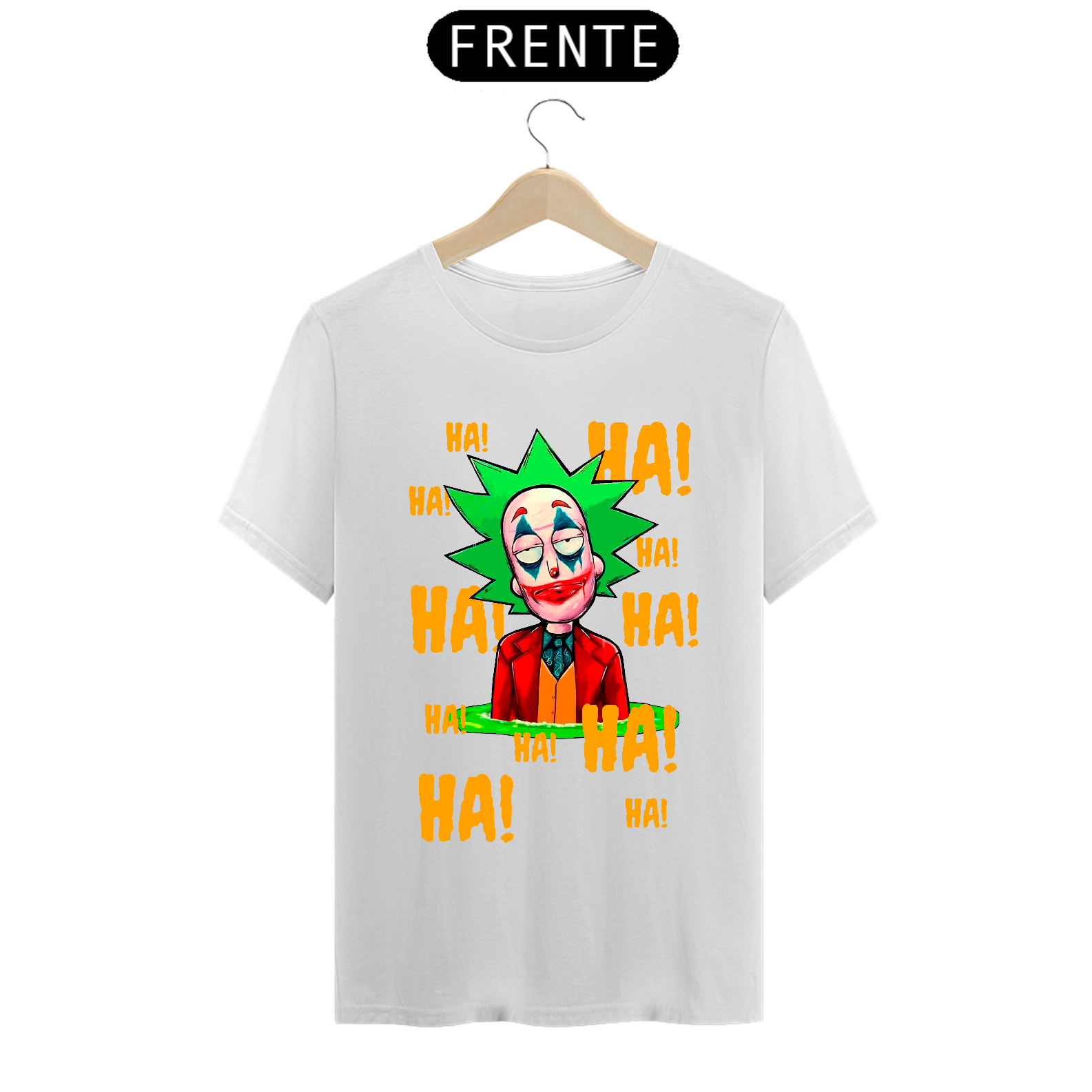 Camiseta com estampa do personagem Rick da série Rick and Morty maquiado com a maquiagem do personagem Curinga é uma camiseta criativa e engraçada que combina dois universos diferentes. Ela tem estampado o rosto do personagem Rick Sanchez, da série Rick and Morty, maquiado com a icônica maquiagem vermelha e branca do personagem Curinga, do universo dos quadrinhos. Esta camiseta é perfeita para fãs de Rick and Morty e fãs de quadrinhos que gostam de misturar referências divertidas e engraçadas em suas roupas.