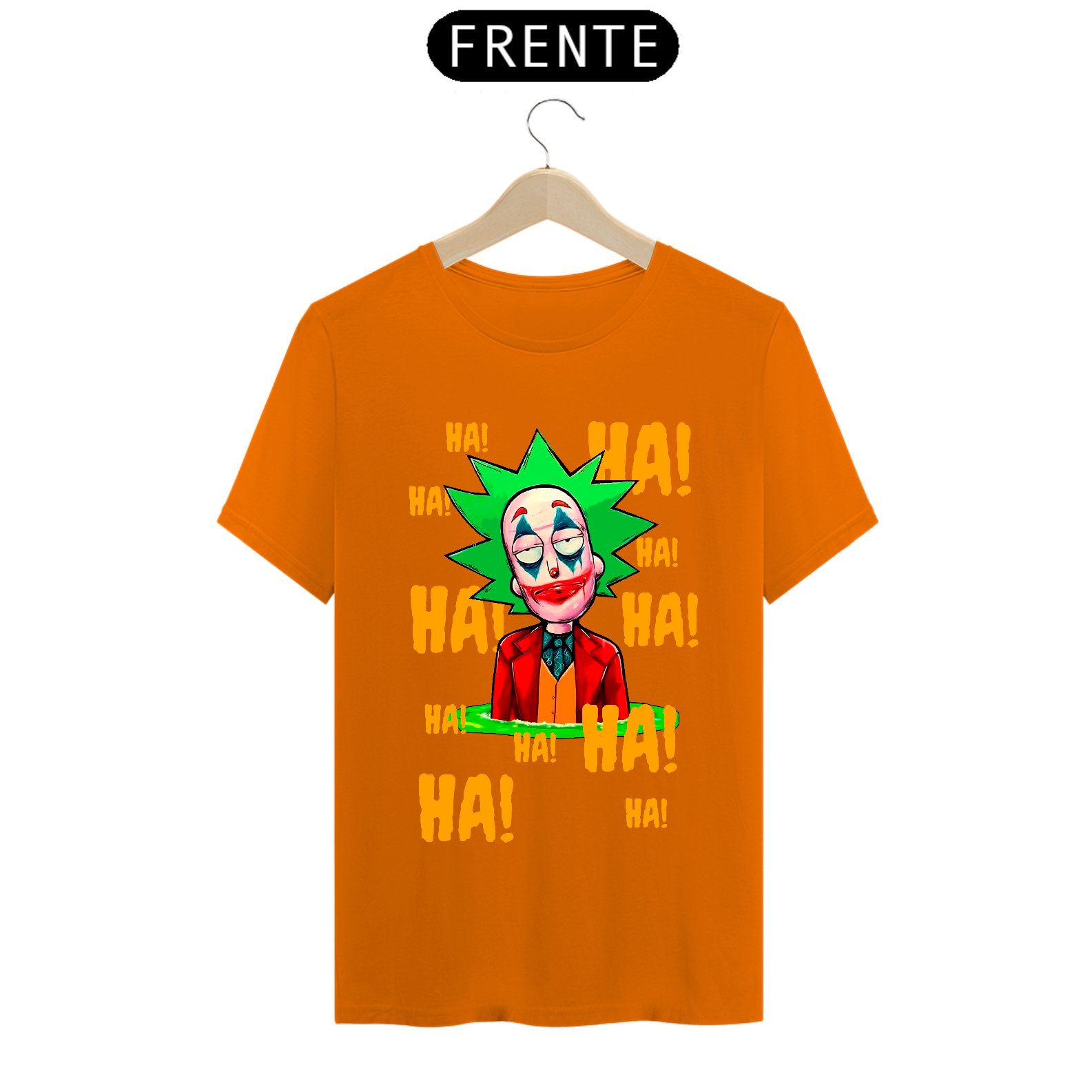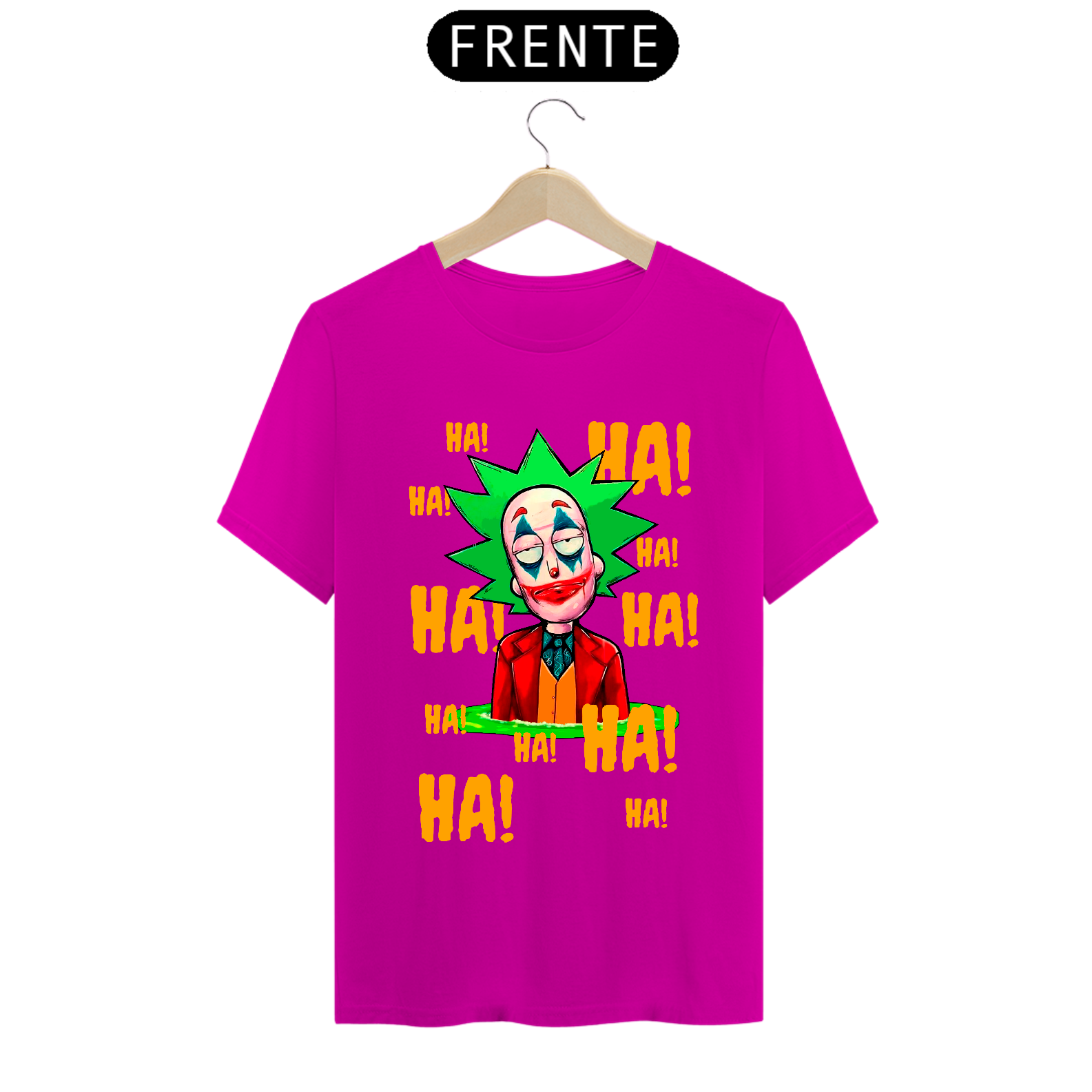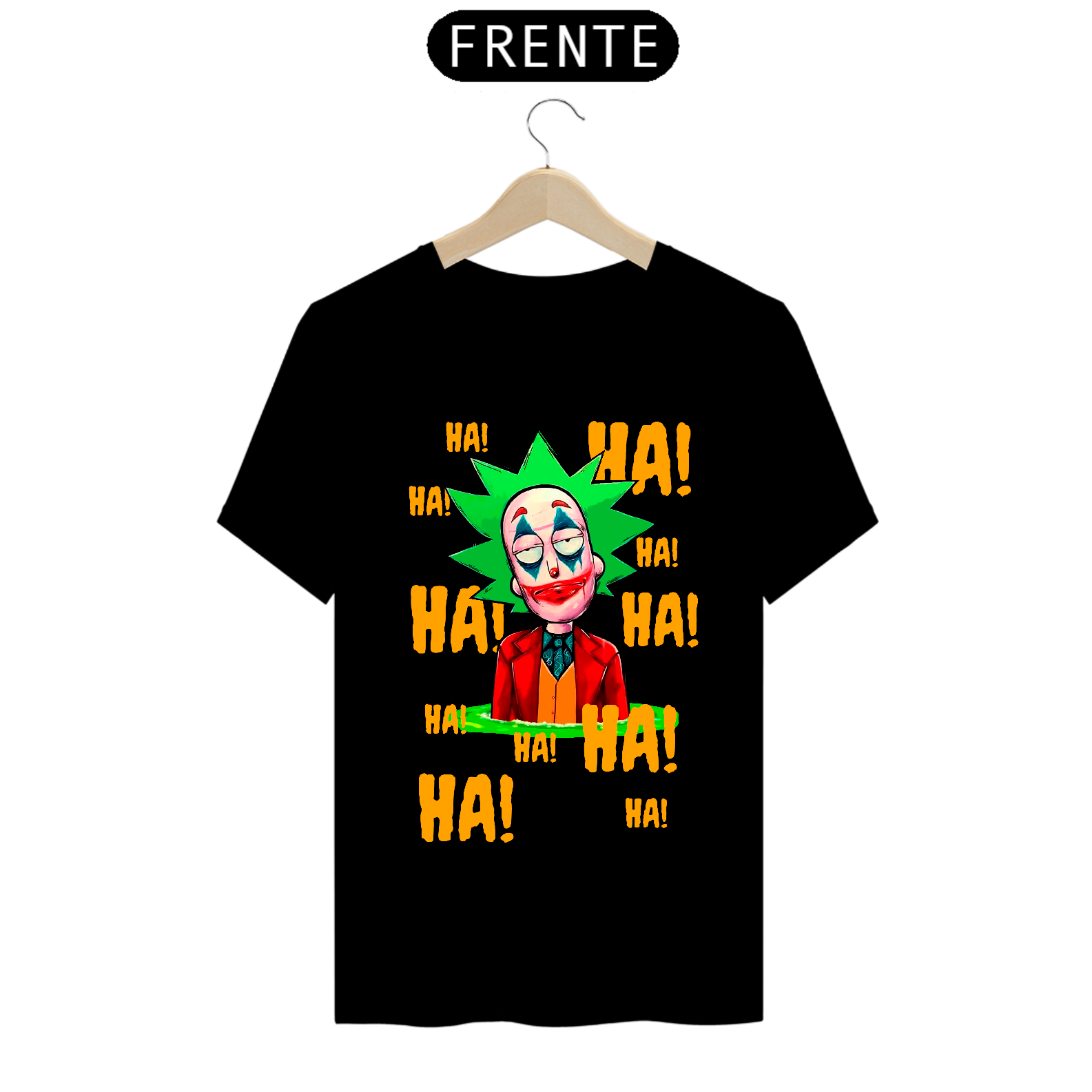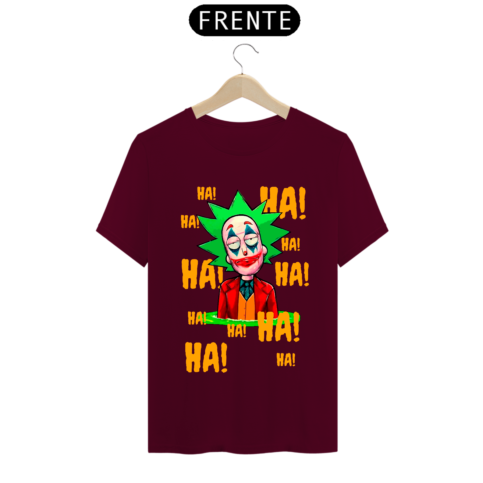 Camiseta com estampa do personagem Rick da série Rick and Morty maquiado com a maquiagem do personagem Curinga é uma camiseta criativa e engraçada que combina dois universos diferentes. Ela tem estampado o rosto do personagem Rick Sanchez, da série Rick and Morty, maquiado com a icônica maquiagem vermelha e branca do personagem Curinga, do universo dos quadrinhos. Esta camiseta é perfeita para fãs de Rick and Morty e fãs de quadrinhos que gostam de misturar referências divertidas e engraçadas em suas roupas.