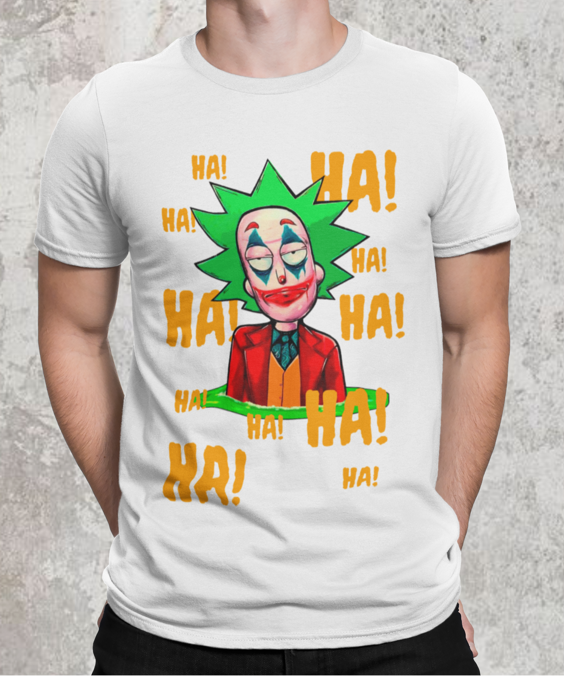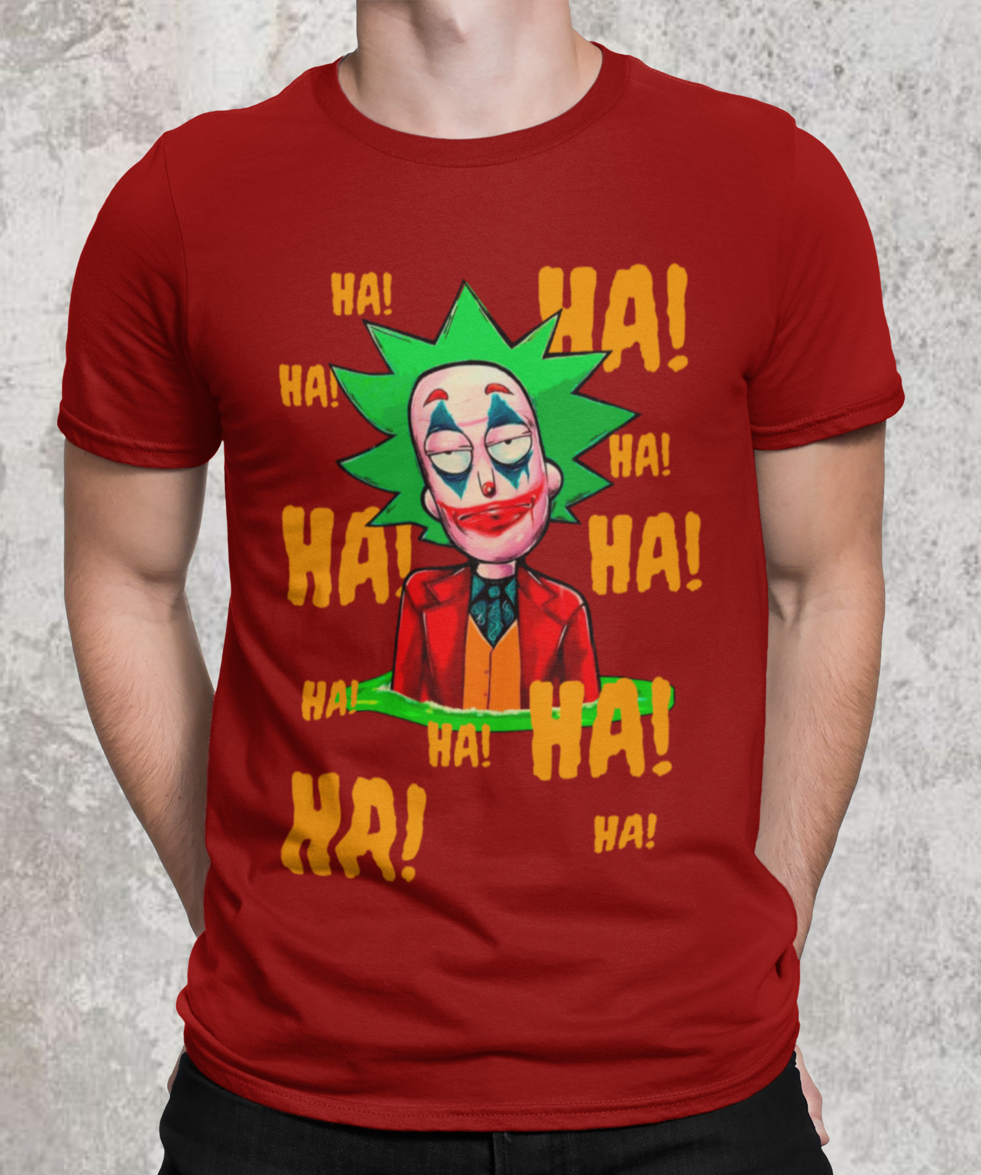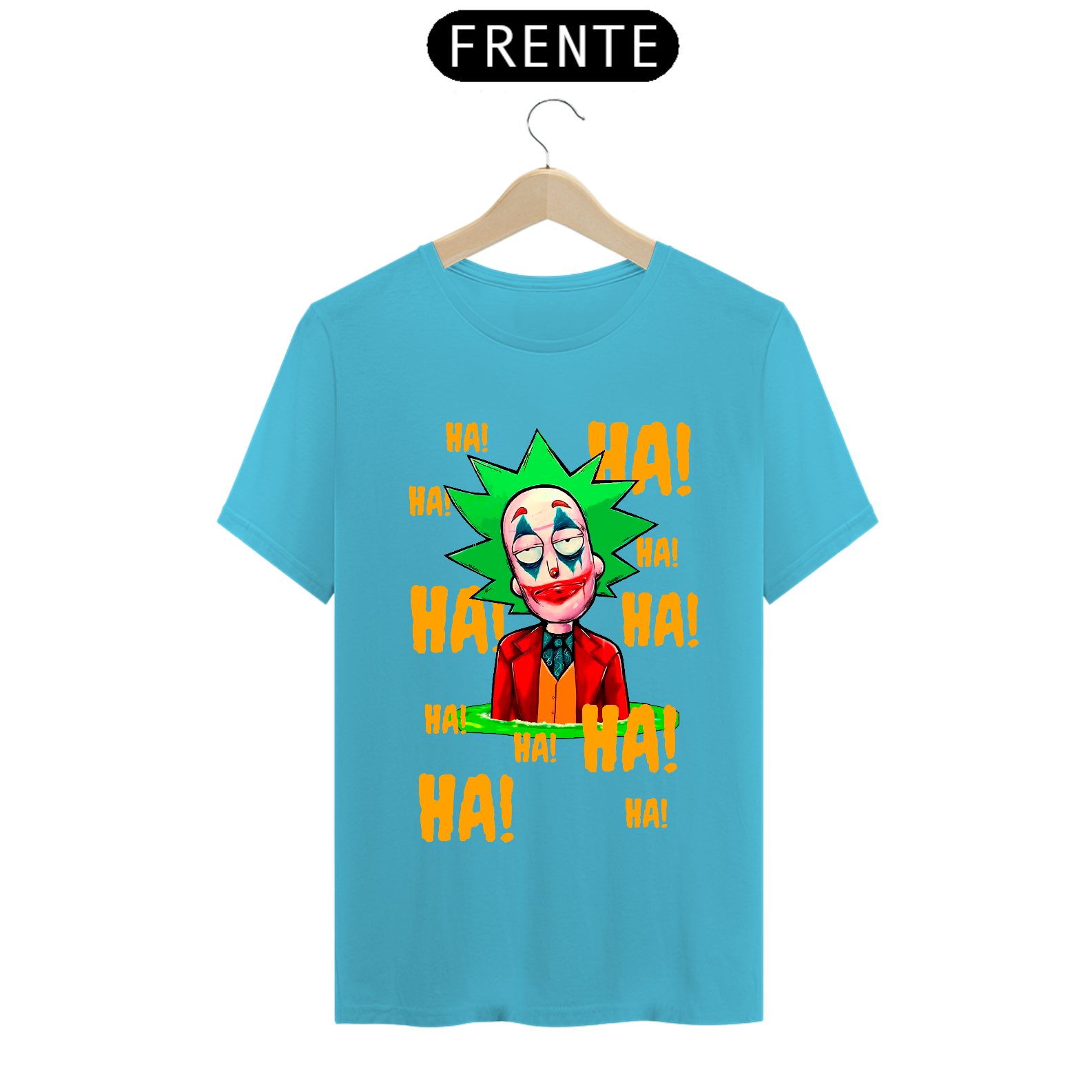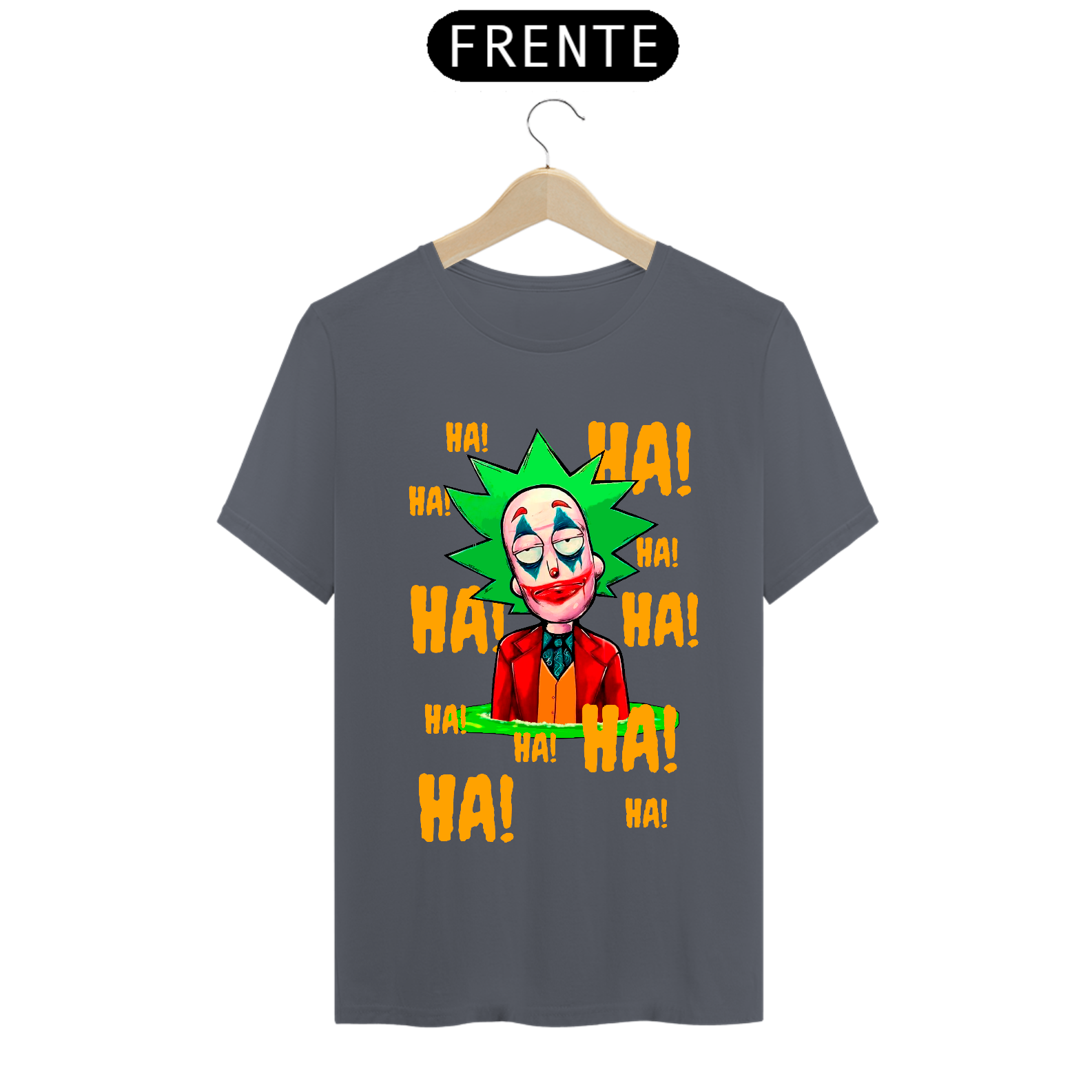 Camiseta com estampa do personagem Rick da série Rick and Morty maquiado com a maquiagem do personagem Curinga é uma camiseta criativa e engraçada que combina dois universos diferentes. Ela tem estampado o rosto do personagem Rick Sanchez, da série Rick and Morty, maquiado com a icônica maquiagem vermelha e branca do personagem Curinga, do universo dos quadrinhos. Esta camiseta é perfeita para fãs de Rick and Morty e fãs de quadrinhos que gostam de misturar referências divertidas e engraçadas em suas roupas.