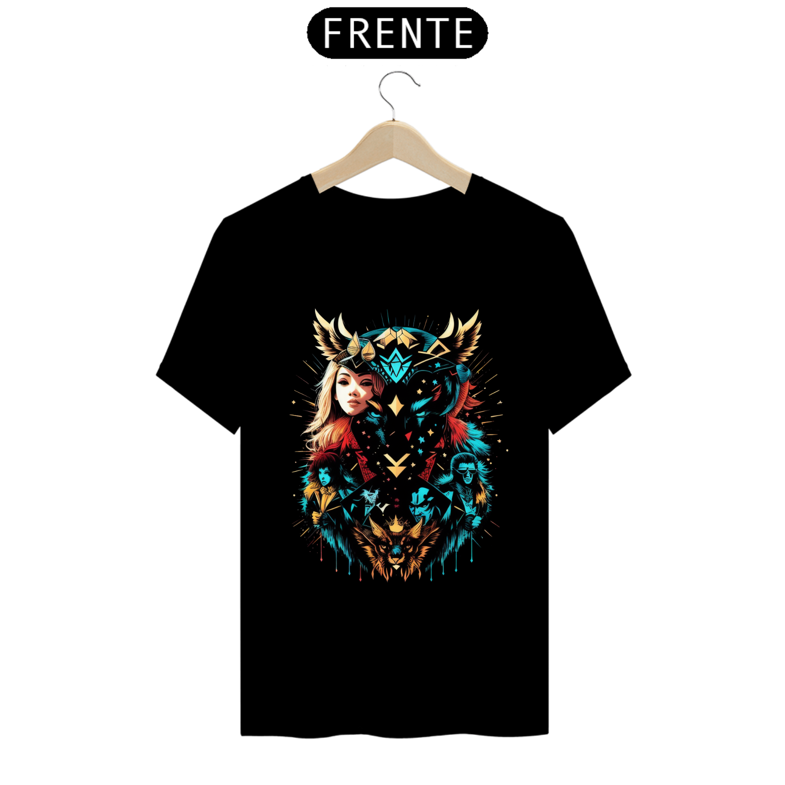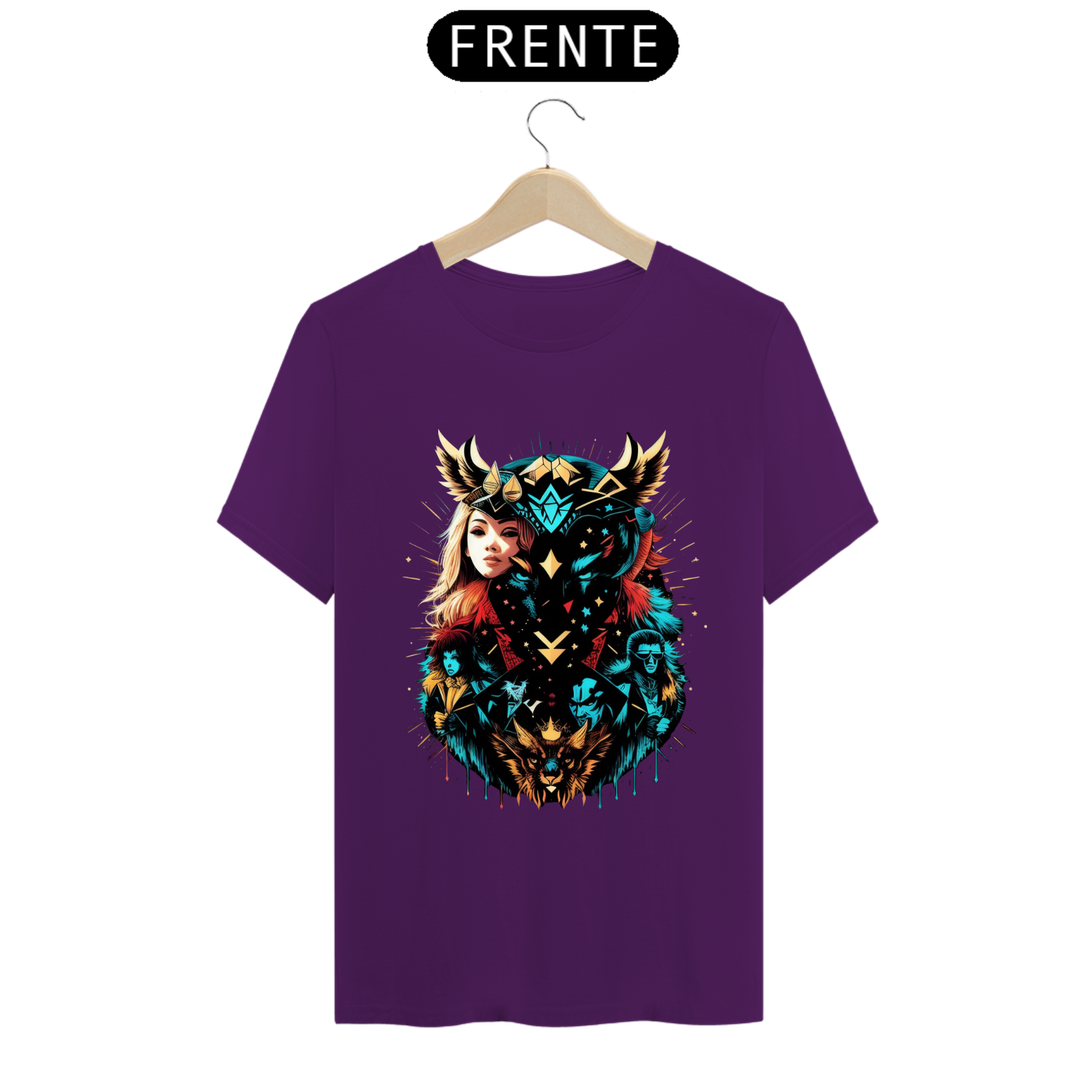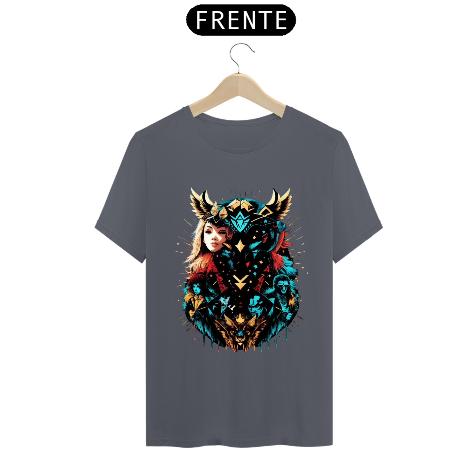 Cores do produto: Como cada tela de computador ou celular tem seu próprio jeito de mostrar cores, então a cor da sua camiseta e da estampa pode ser um pouco diferente do que você viu online.