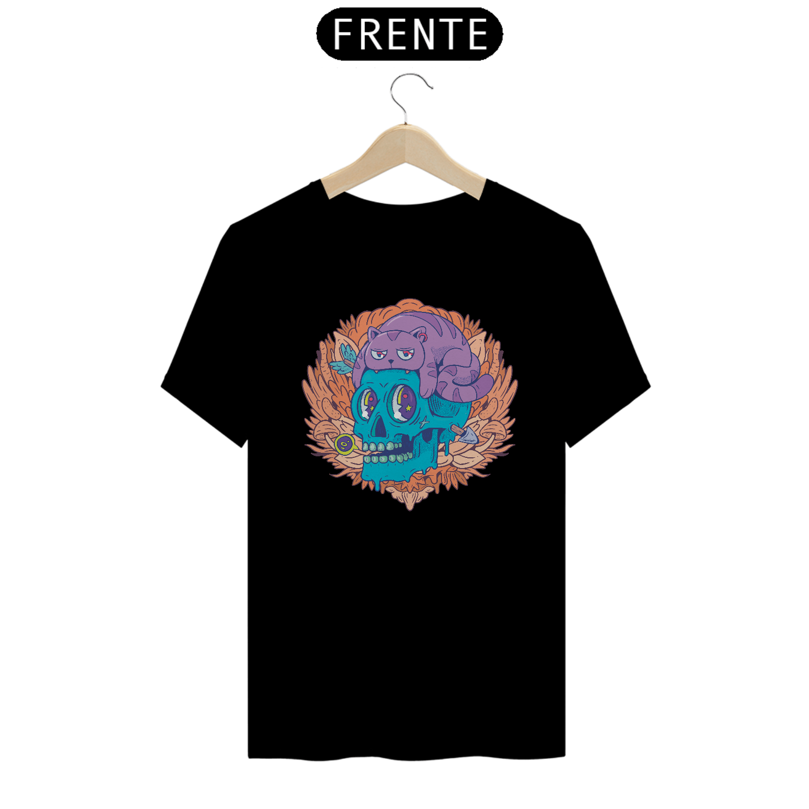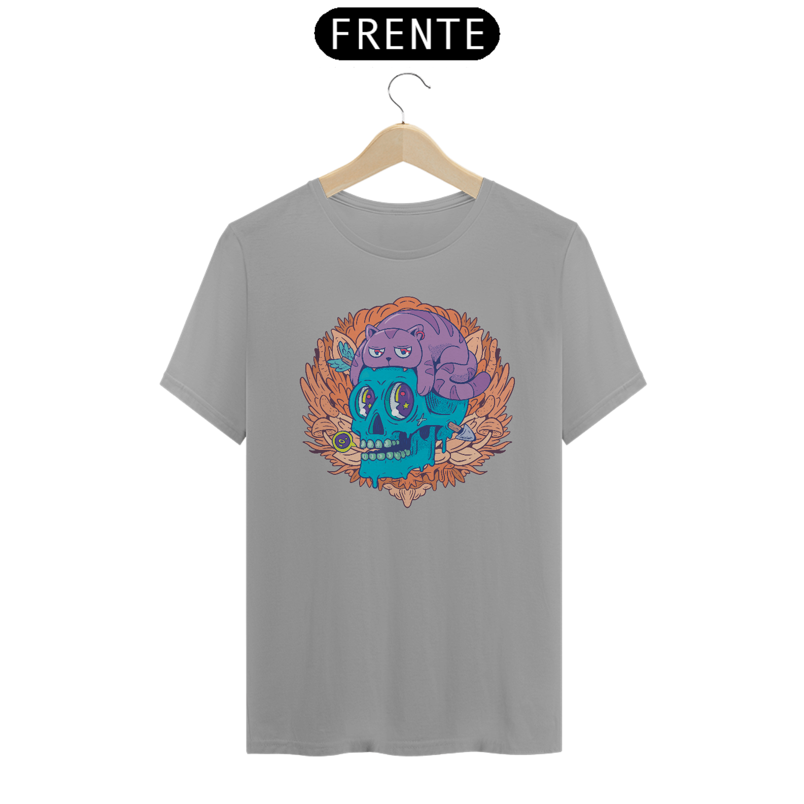 "Abraçando a dualidade com nossa camiseta única, apresentando a intrigante fusão entre um gato e uma caveira. O design cativante combina mistério e fofura, perfeito para quem busca um estilo ousado. Feita em algodão macio, esta camiseta proporciona conforto enquanto destaca sua individualidade. Celebre a fusão de elementos distintos com esta peça única que transmite personalidade e um toque de mistério.