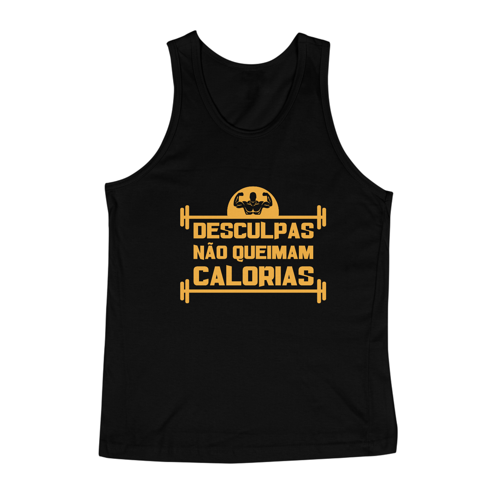 Arrase no estilo e na sinceridade com nossa regata exclusiva! Estampa irreverente com a frase: 'Desculpas não queimam calorias.' Mostre sua determinação com humor e atitude. Confortável, estilosa e com uma mensagem motivadora. Vista-se bem, sinta-se bem!