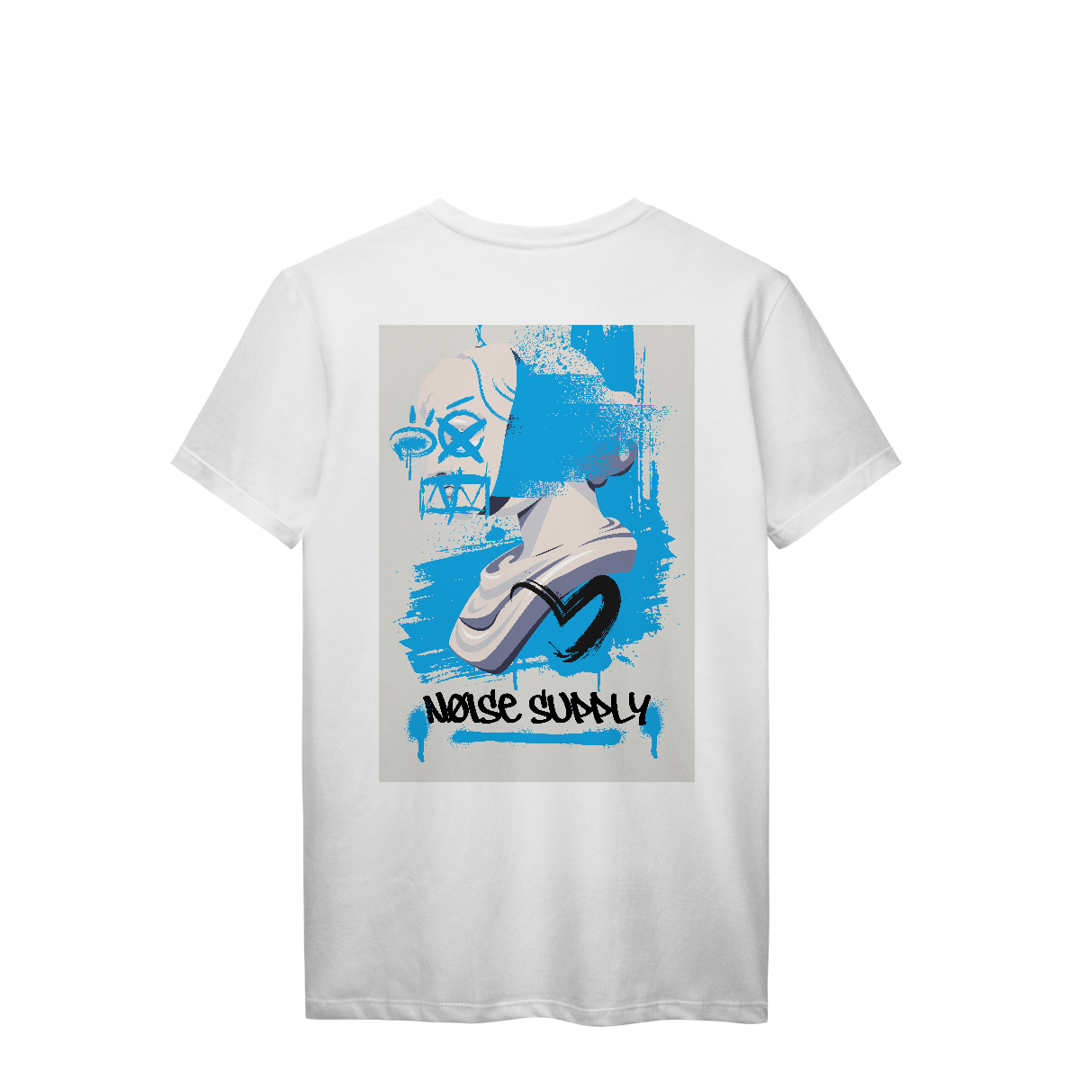 Urban Face é uma fusão de arte clássica e estética urbana. A escultura de rosto ganha vida com sobreposição gráfica em azul, trazendo uma peça que conecta passado e presente em um visual marcante.