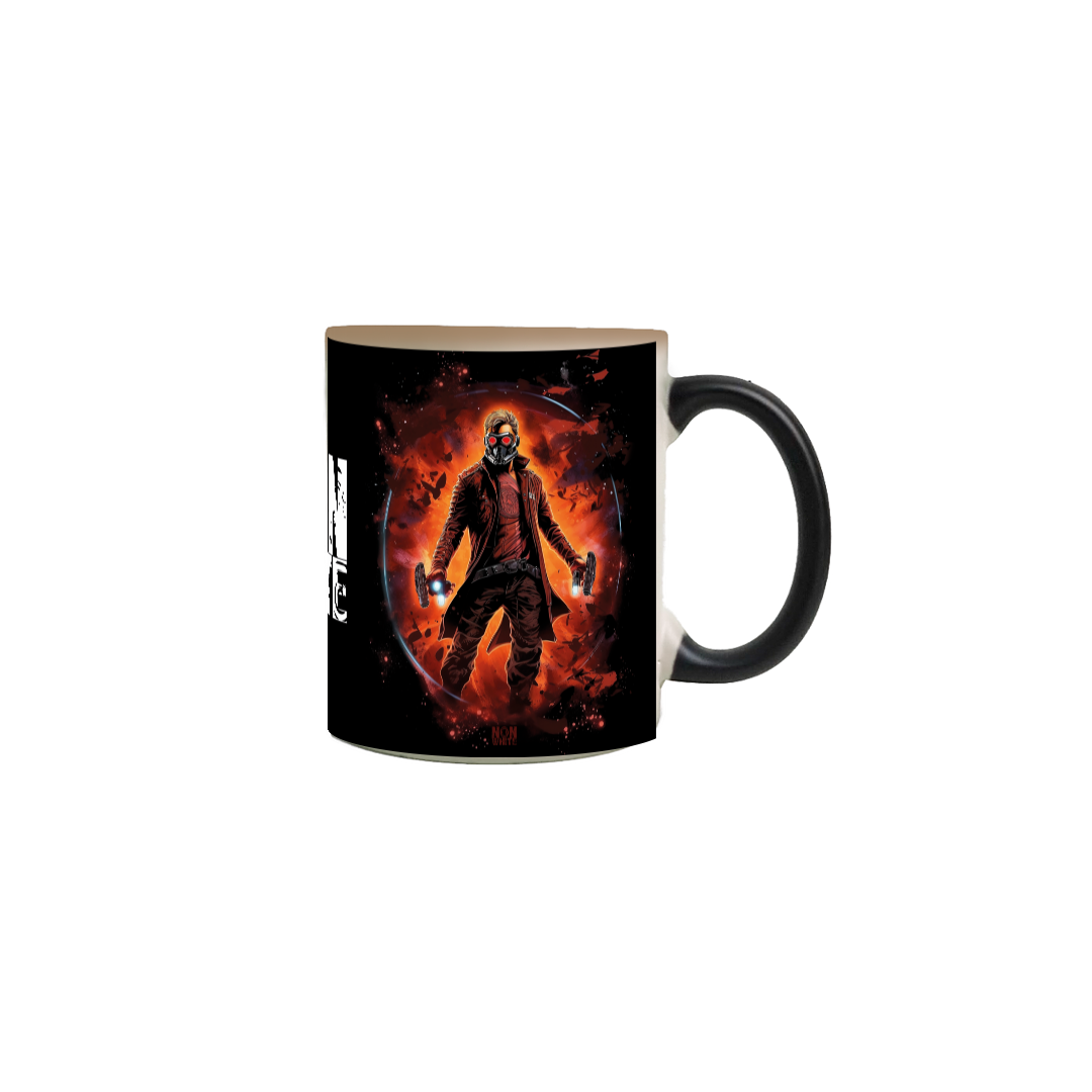 Desperte o herói cósmico dentro de você com nossa caneca mágica do Senhor das Estrelas! Inspirada no carismático líder dos Guardiões da Galáxia, essa caneca vai te acompanhar em todas as suas aventuras. Basta despejar uma bebida quente para ver a estampa mágica aparecer, assim como o Senhor das Estrelas se preparando para a ação!
