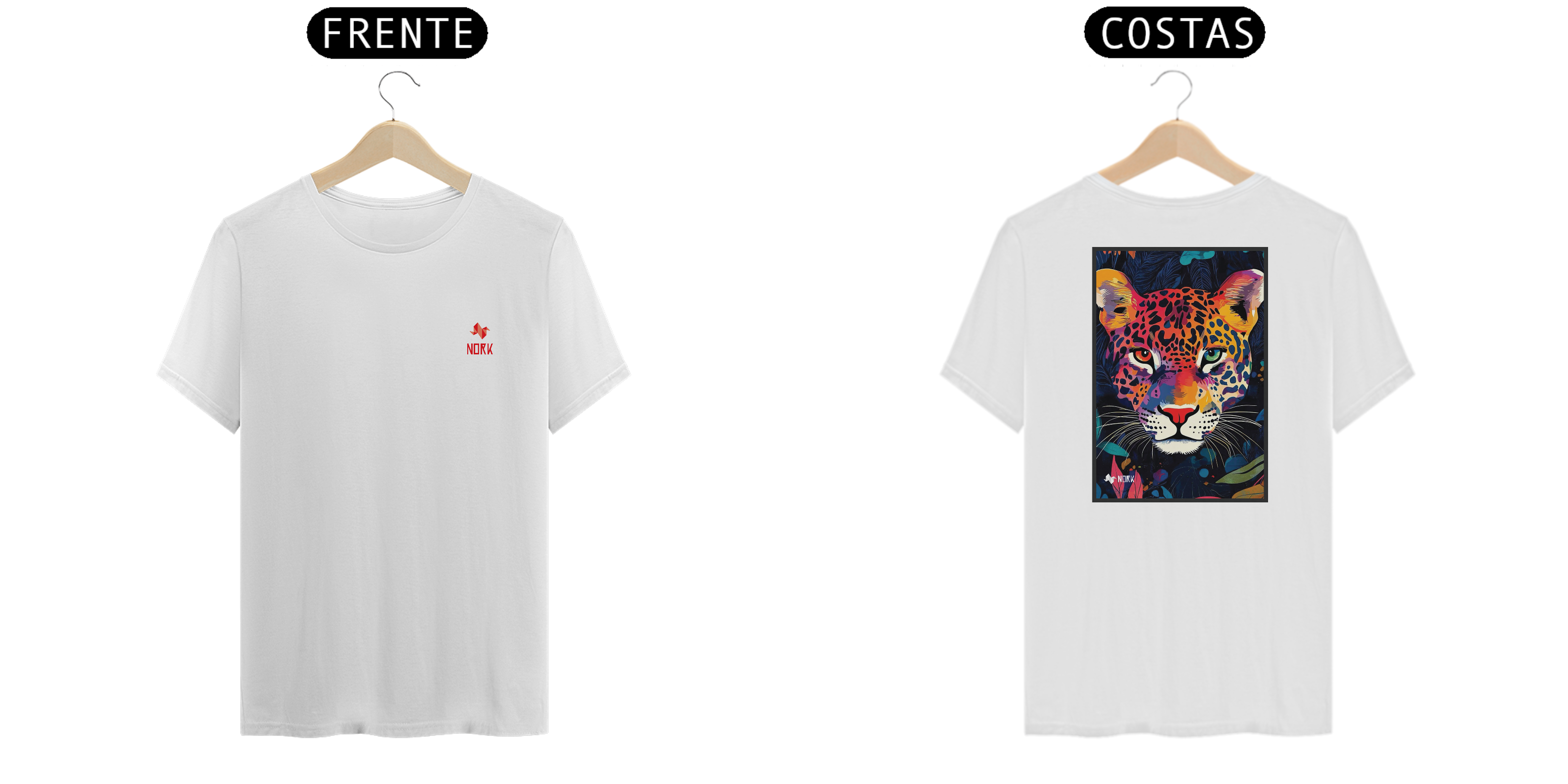 Esta peça da Coleção Nork Animal Planet apresenta uma onça estilizada com cores vibrantes e contrastantes que capturam a essência selvagem e poderosa do animal. O rosto da onça é retratado com detalhes precisos, enquanto a paleta de cores mistura tons de laranja, vermelho, roxo, azul e amarelo, criando uma composição dinâmica e ousada. O fundo escuro, com folhas e elementos naturais em tons sutis, destaca ainda mais a figura central, evocando a força e o mistério da floresta. Os olhos da onça, um verde e outro vermelho, são o ponto focal, transmitindo uma presença hipnotizante e intensa.