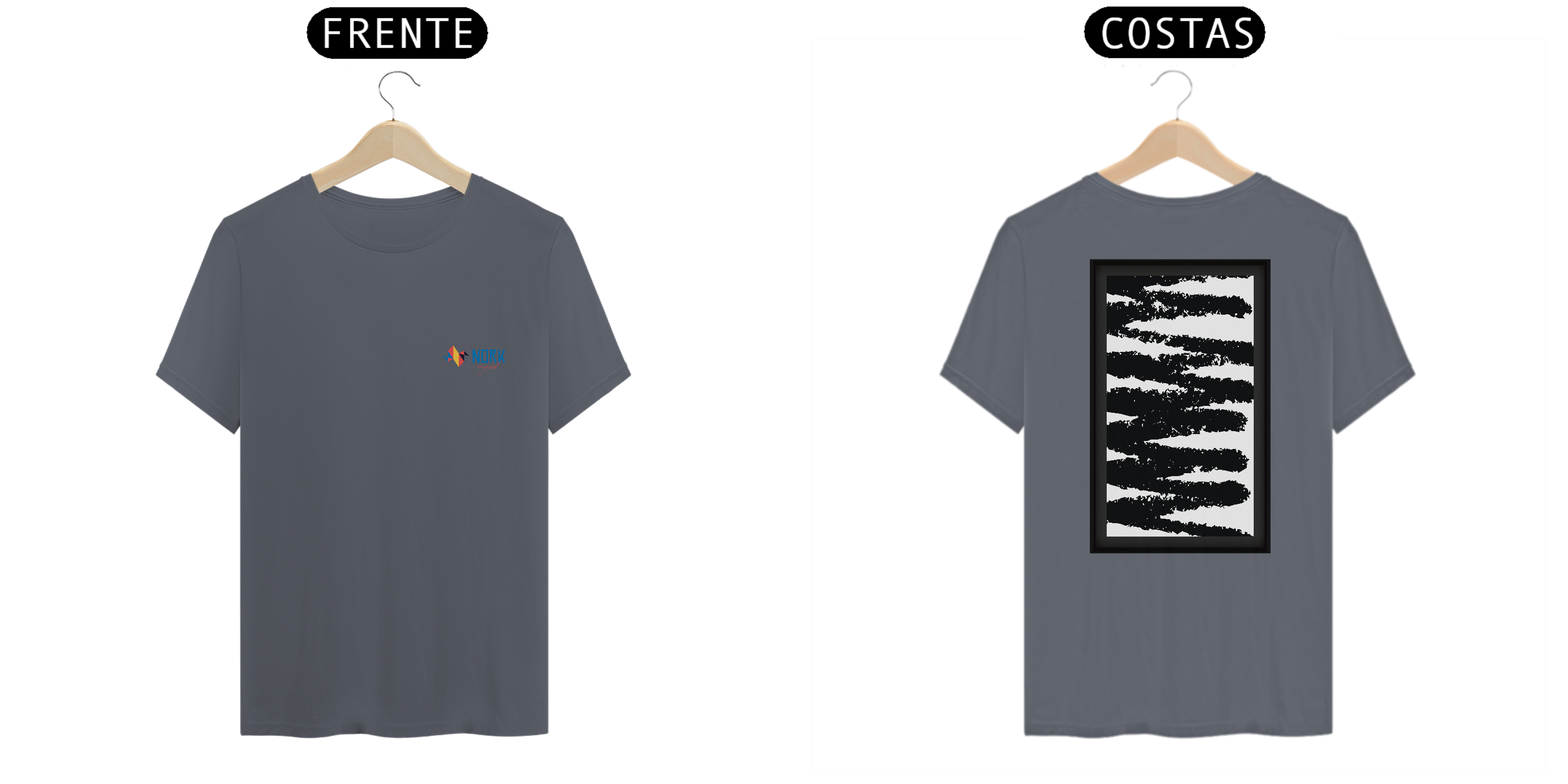 Parte da Coleção Nork Original Terapia, esta camisa apresenta um padrão robusto de linhas horizontais em preto com bordas irregulares, criando uma textura visual rica e cheia de movimento. Inspirada na "terapia do rabiscar", a arte traz à tona a espontaneidade do ato de desenhar com liberdade, representando a energia bruta e criativa que habita em cada traço.