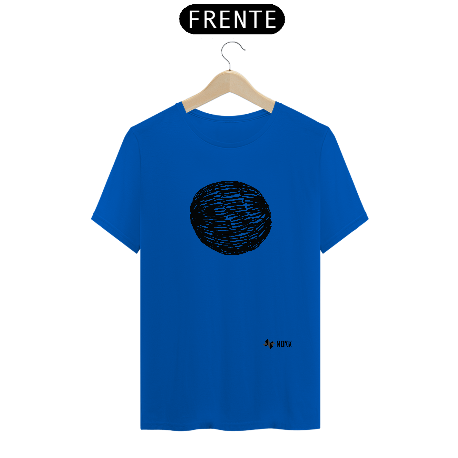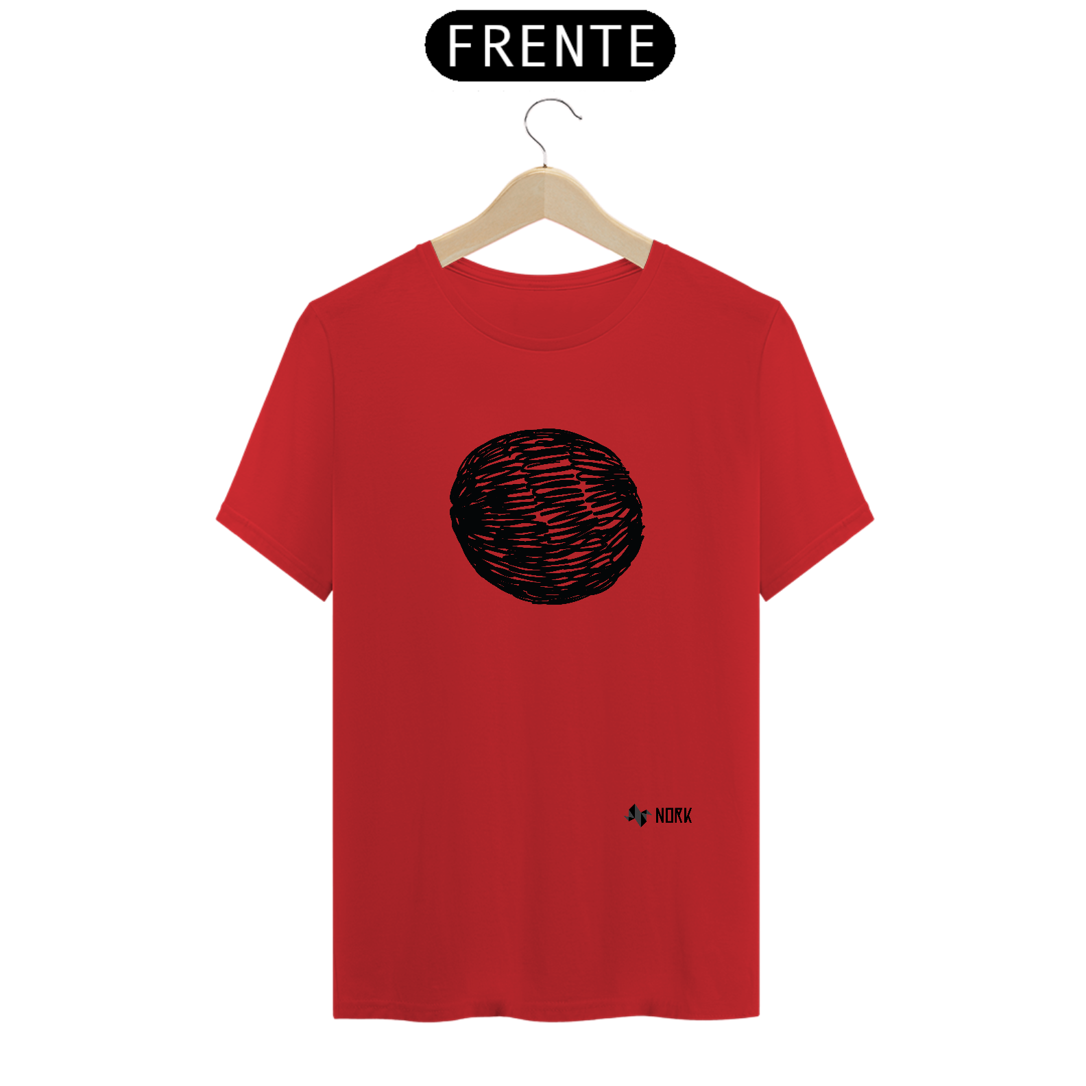 Uma forma oval criada a partir de linhas pretas sobrepostas, simulando um rabisco contínuo. As variações de traços e espaços entre eles conferem profundidade e movimento, como se fosse uma esfera abstrata. O estilo expressivo e solto reflete o espírito artístico e espontâneo da Coleção Nork Rabisco.