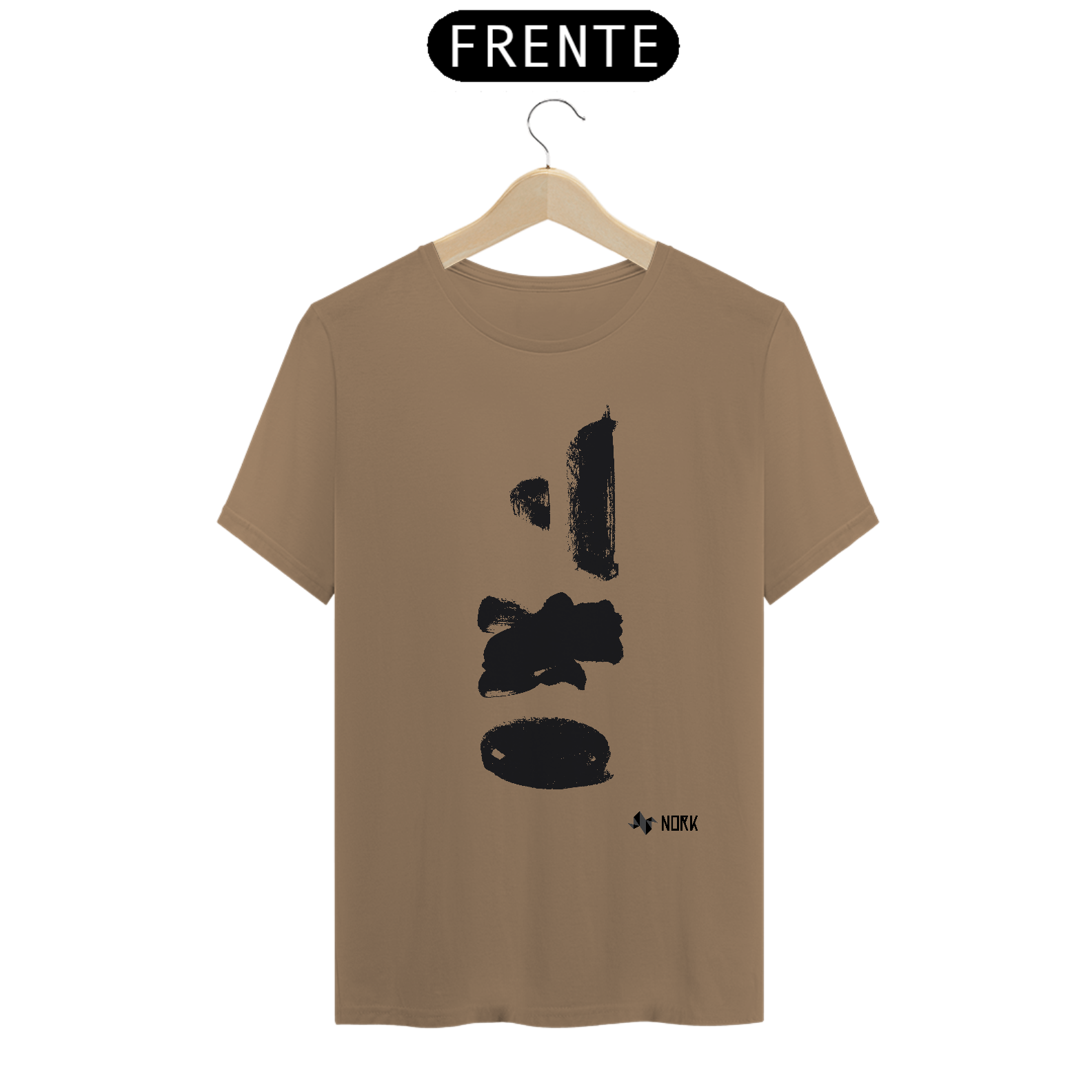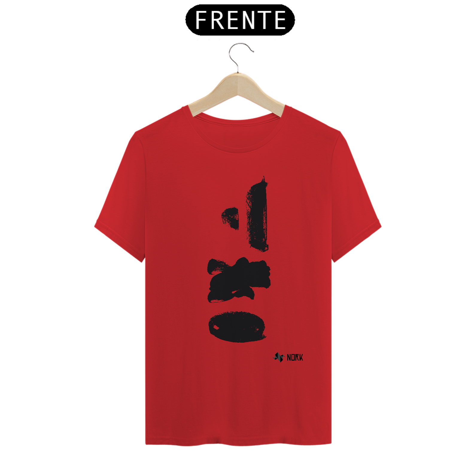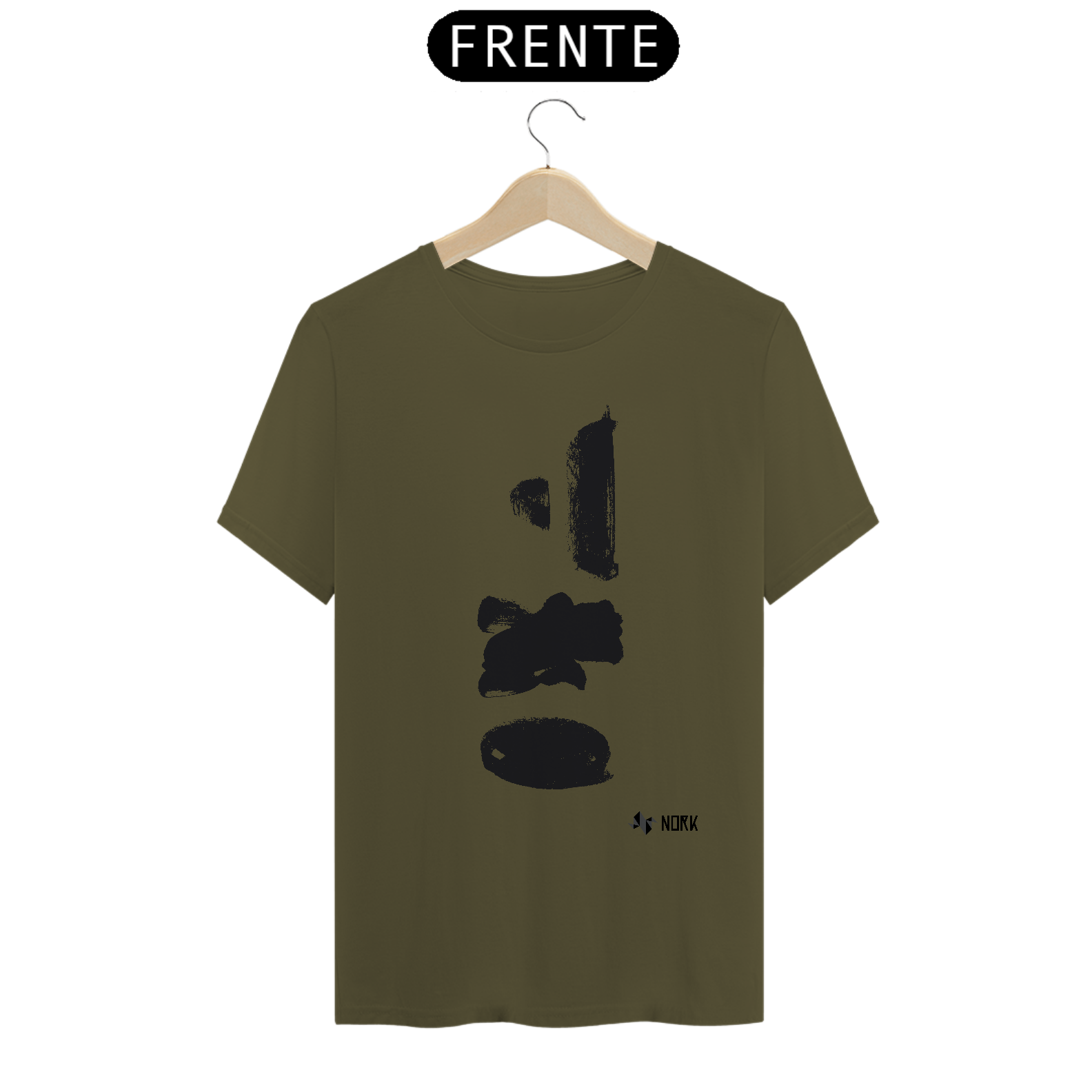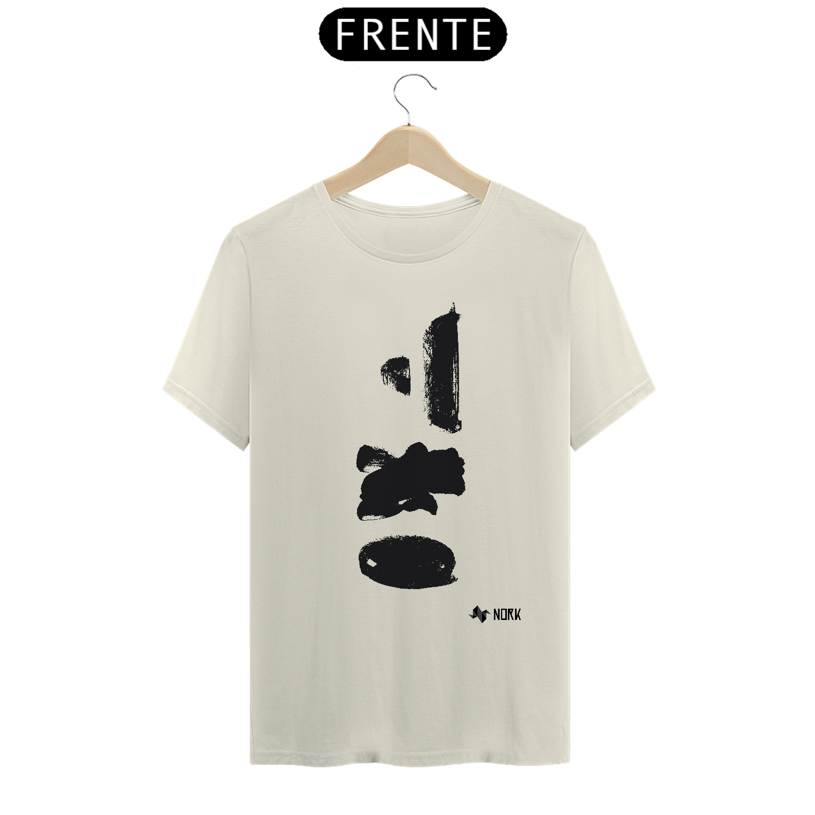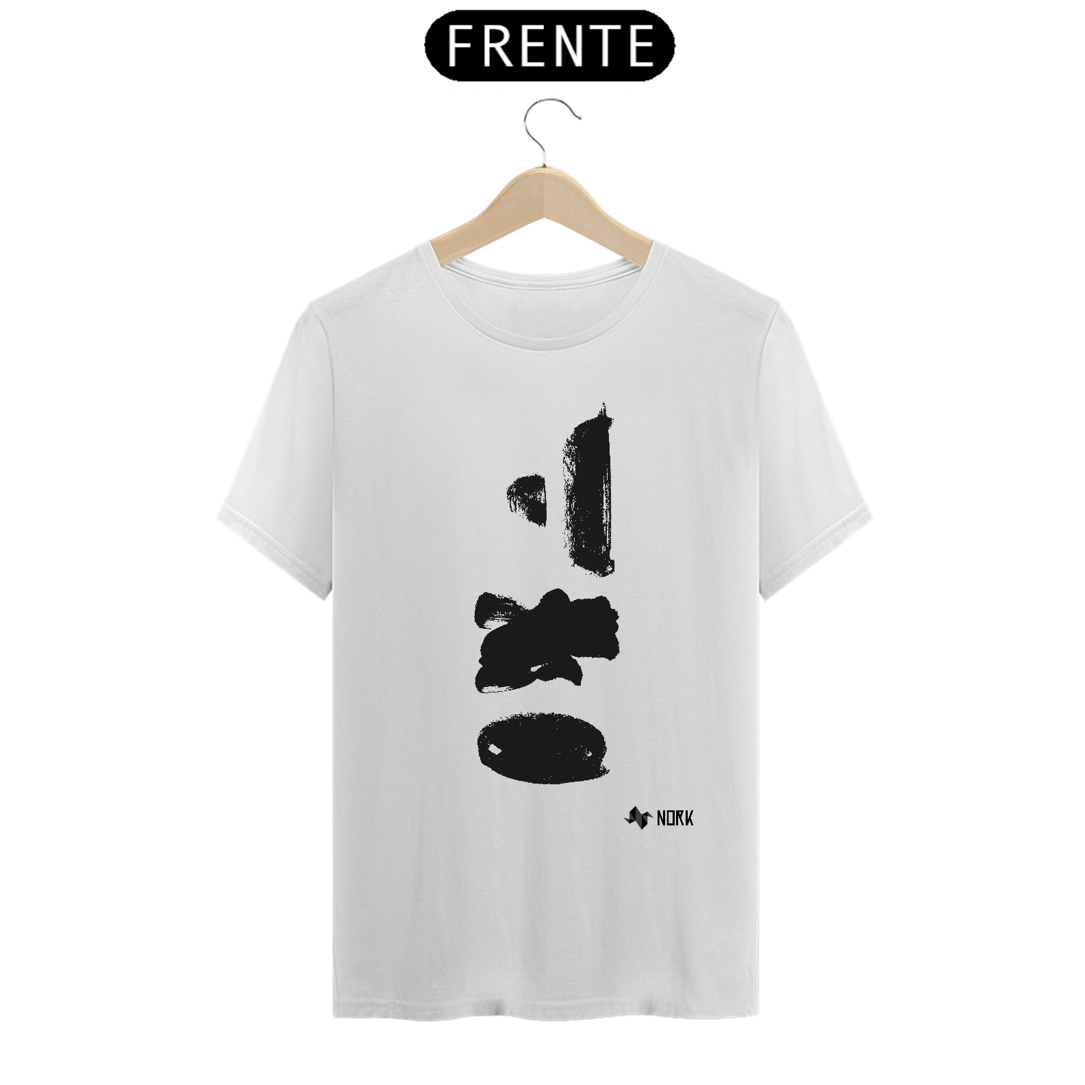 Várias pinceladas em preto dispostas verticalmente, com espessuras e formas distintas — algumas retangulares, outras mais arredondadas. As manchas apresentam texturas aparentes e bordas irregulares, evocando força e espontaneidade. Esse arranjo solto e abstrato reflete o caráter livre e experimental típico da Coleção Nork Rabisco.