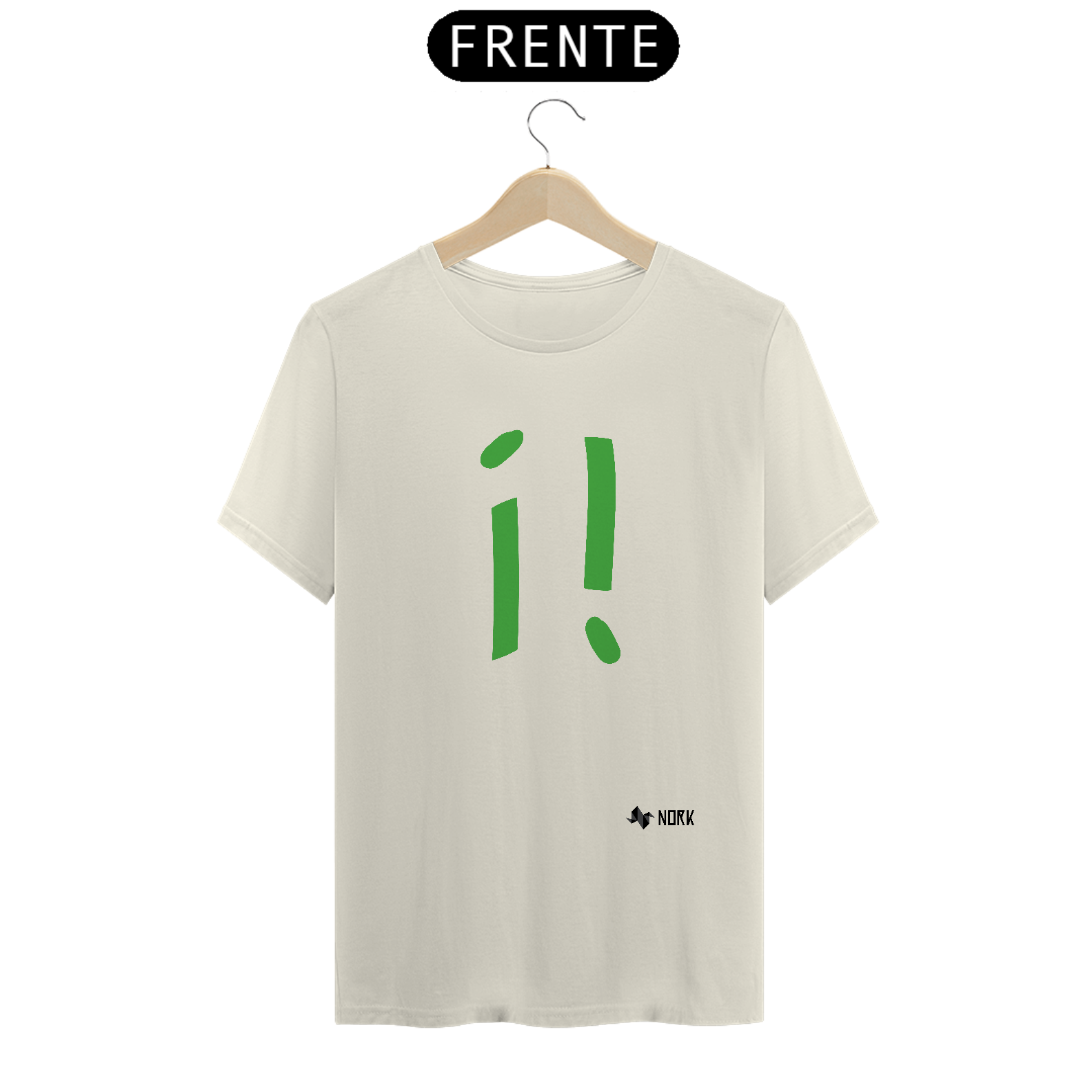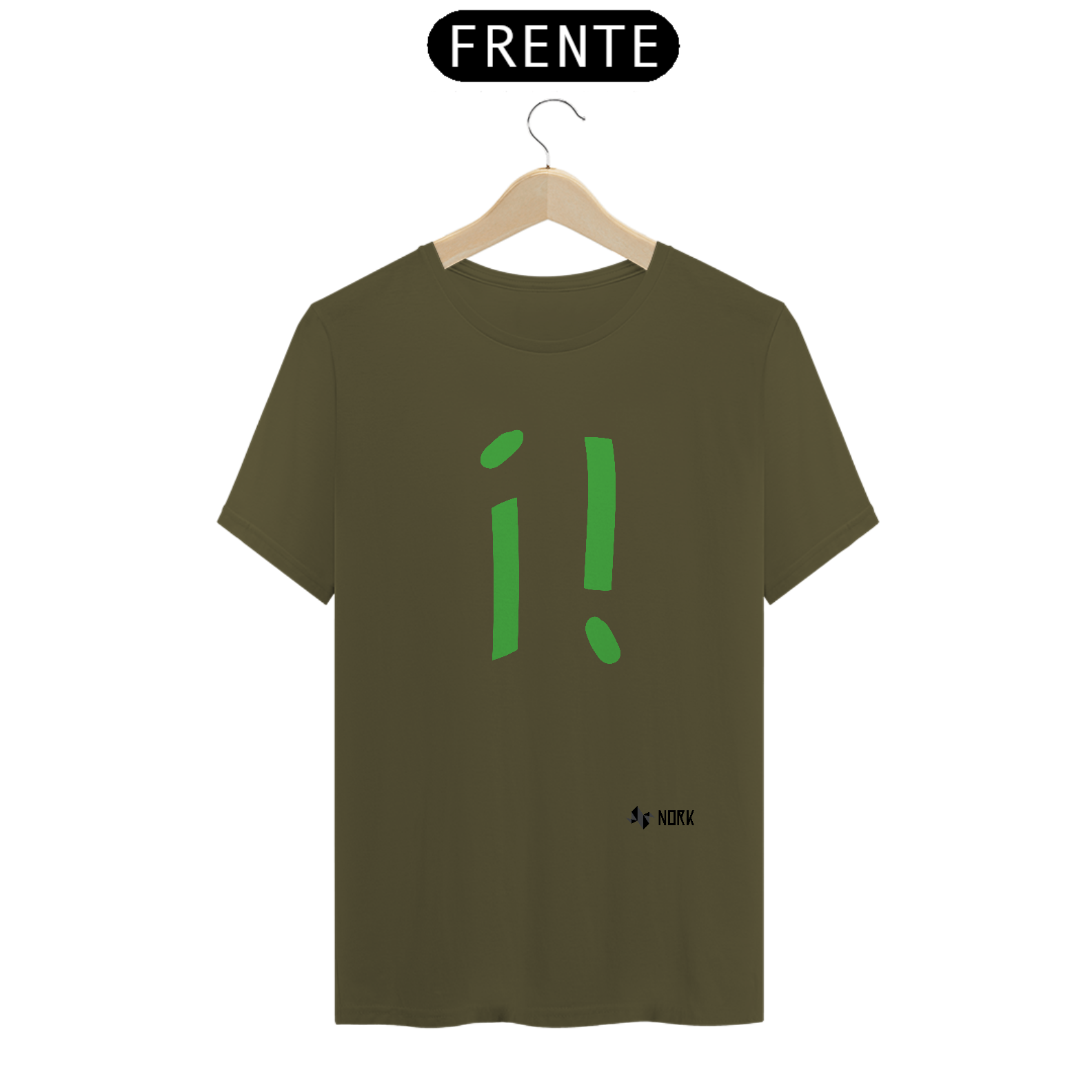 Esta estampa explora uma fusão criativa entre os símbolos de exclamação e interrogação, ambos em um vibrante tom de verde. A arte evoca curiosidade e energia, representando questionamentos e entusiasmo ao mesmo tempo. A combinação única desses sinais sugere a busca por respostas com um toque de empolgação.