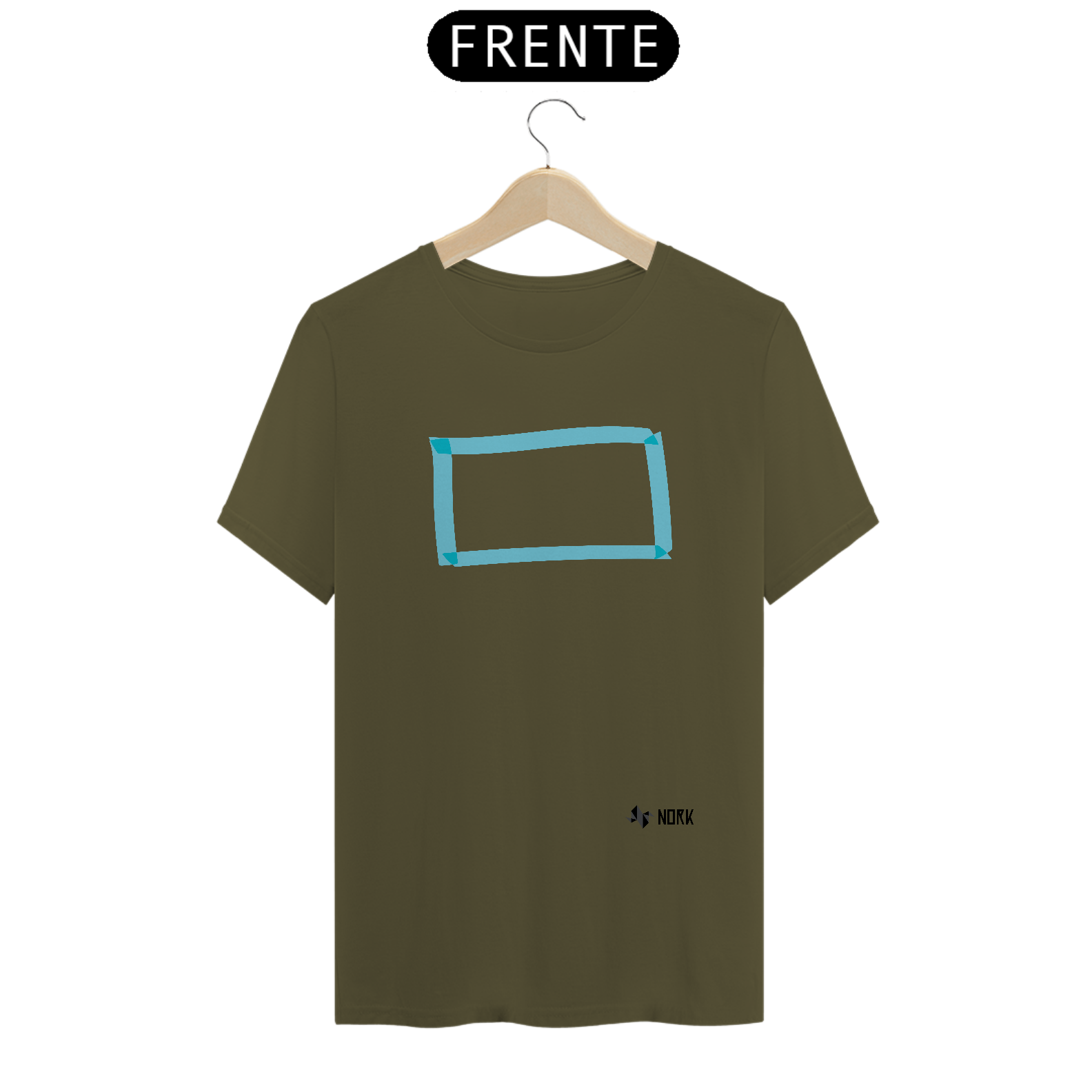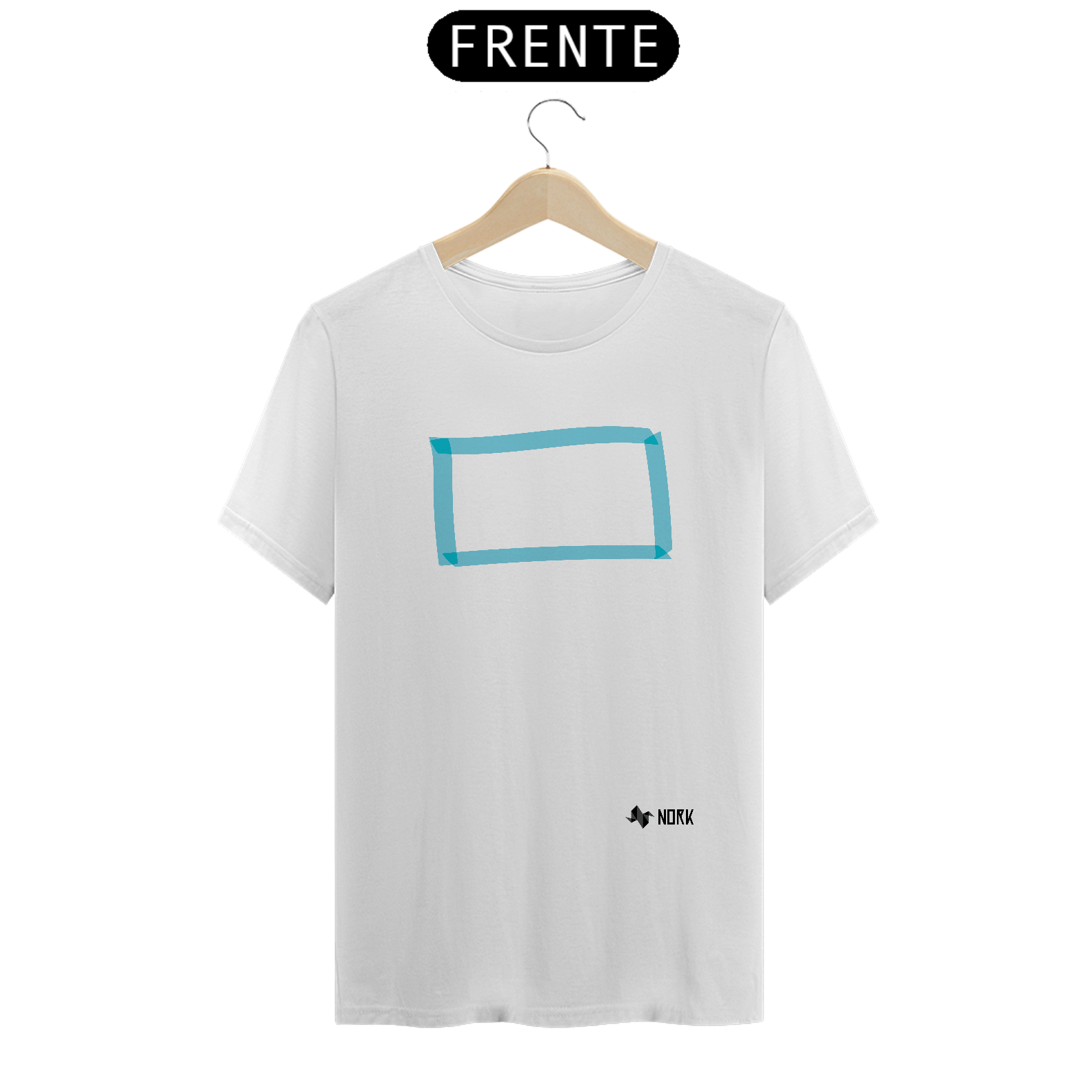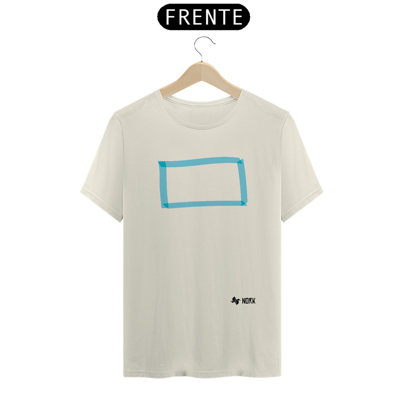 A estampa apresenta um retângulo minimalista em tons de azul claro, com traços translúcidos que sugerem leveza e transparência. A composição geométrica transmite equilíbrio e simplicidade, enquanto a cor azul evoca calma, serenidade e clareza. O design é contemporâneo e versátil, ideal para quem aprecia um toque de modernidade discreta.
