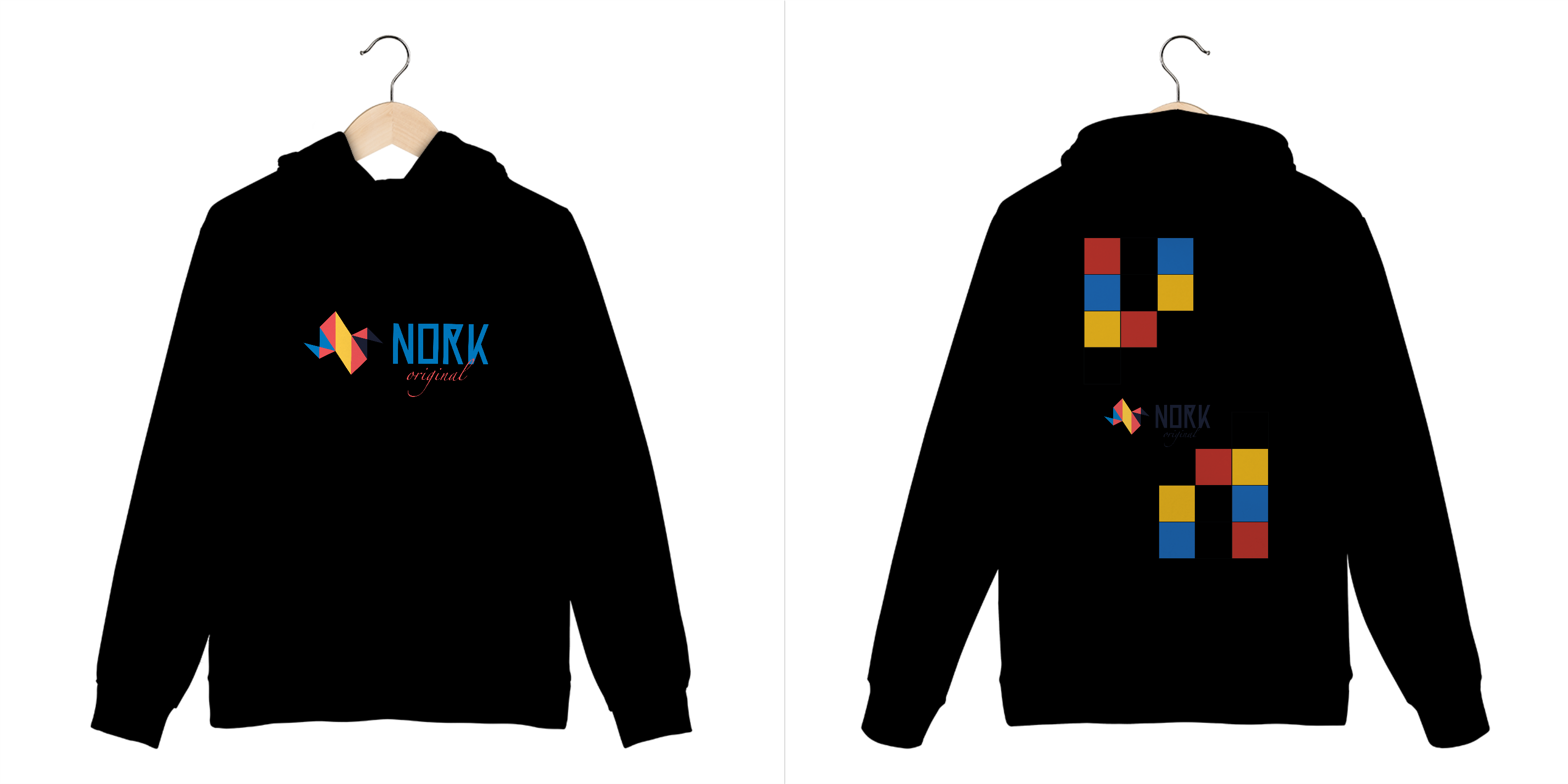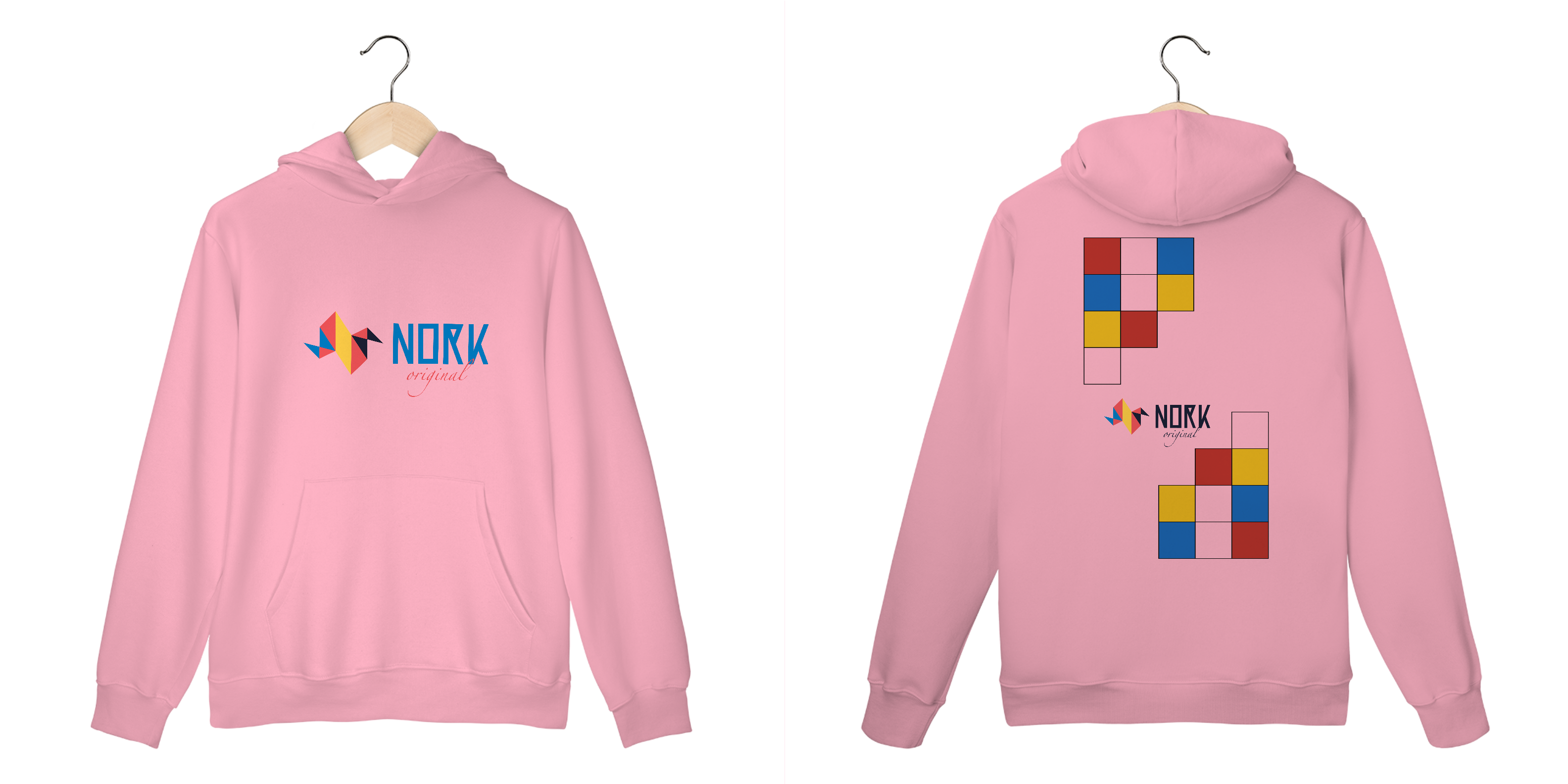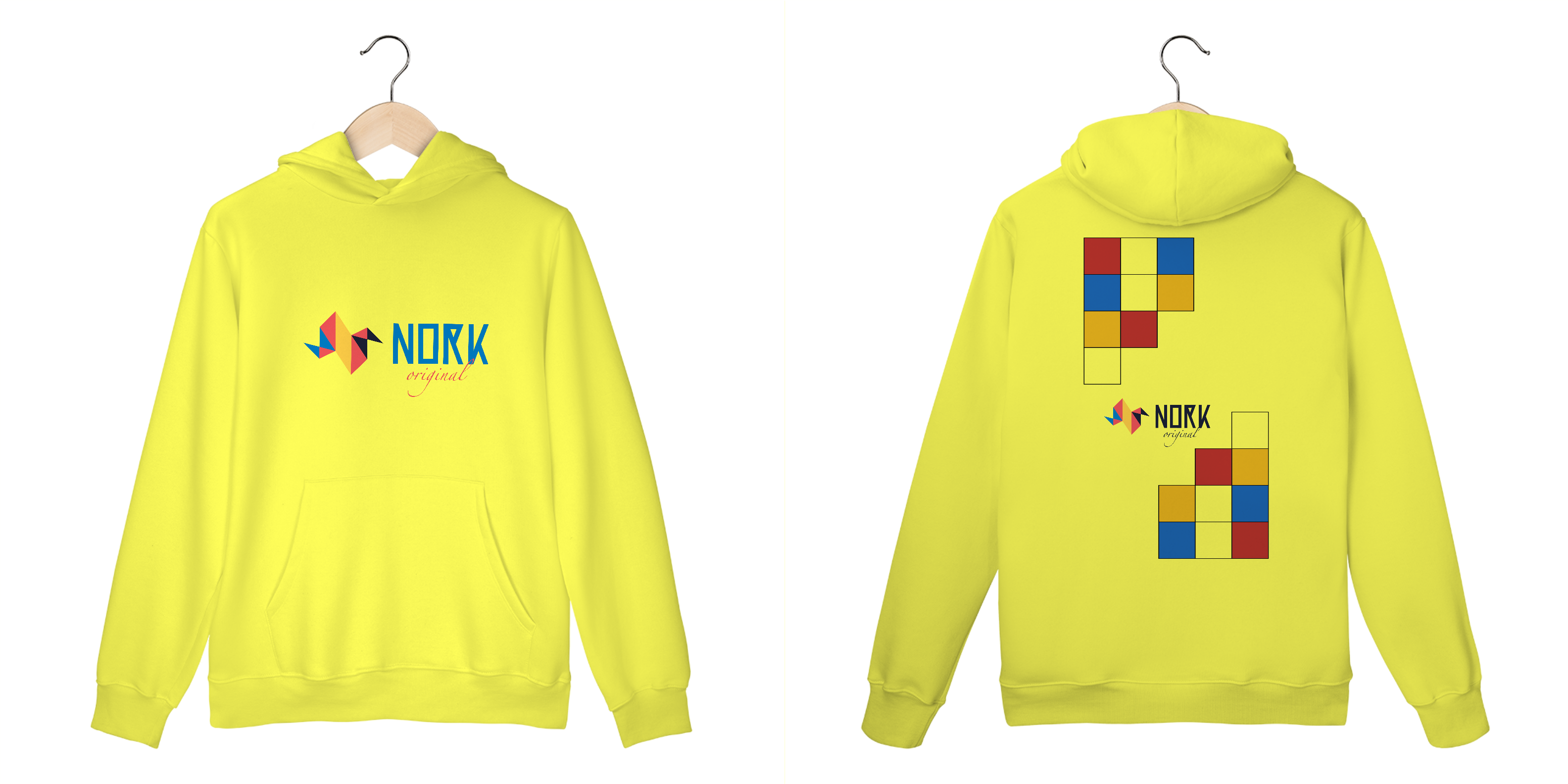 A disposição dos blocos sugere modularidade e movimento, lembrando estruturas lúdicas que combinam forma e cor de maneira instigante. Perfeita para quem busca simplicidade elegante e personalidade, esta peça leva a essência Bauhaus de maneira marcante, destacando a assinatura Nork Original no centro da composição.
