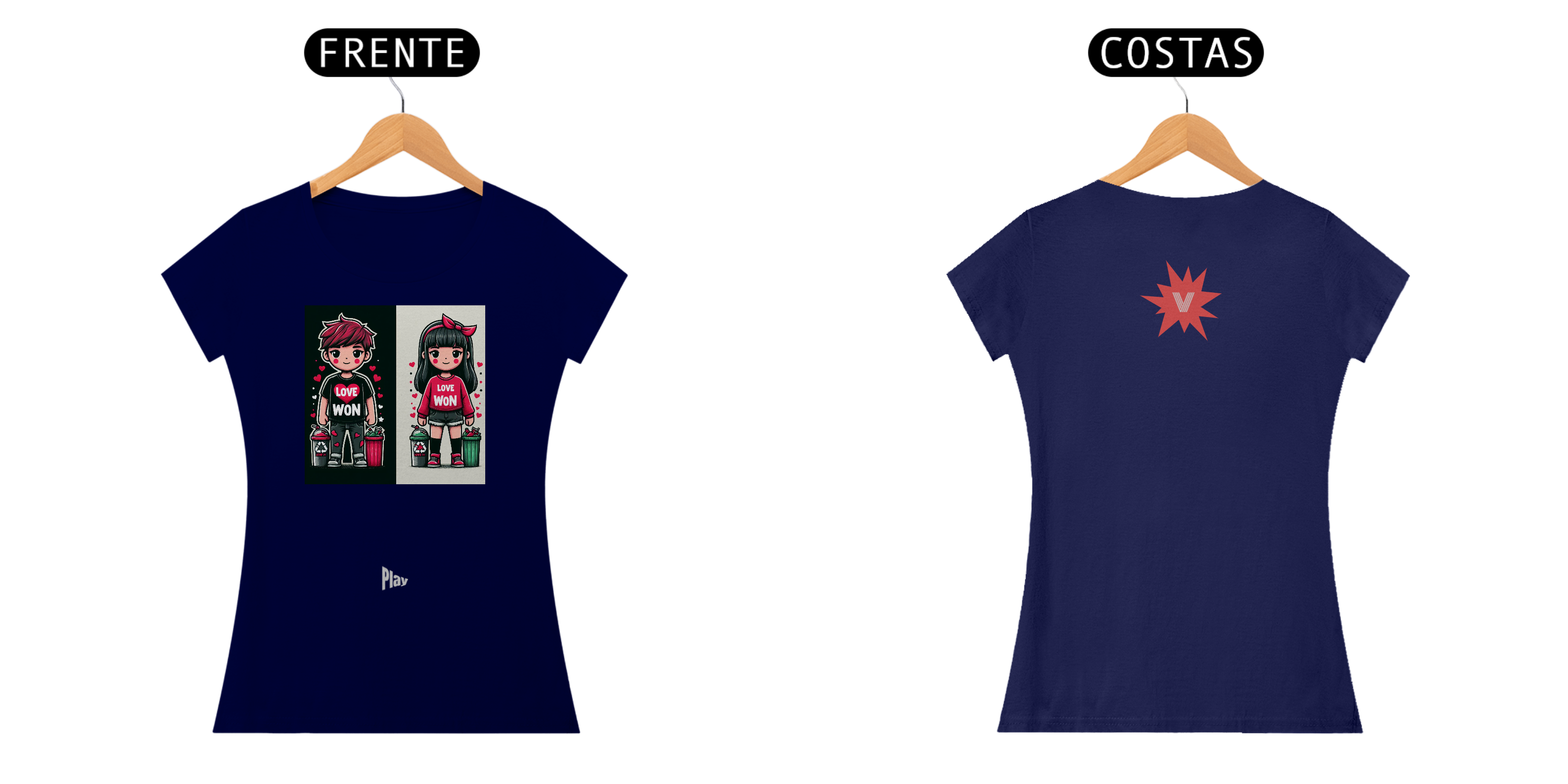 Cores do produto: Como cada tela de computador ou celular tem seu próprio jeito de mostrar cores, então a cor da sua camiseta e da estampa pode ser um pouco diferente do que você viu online.