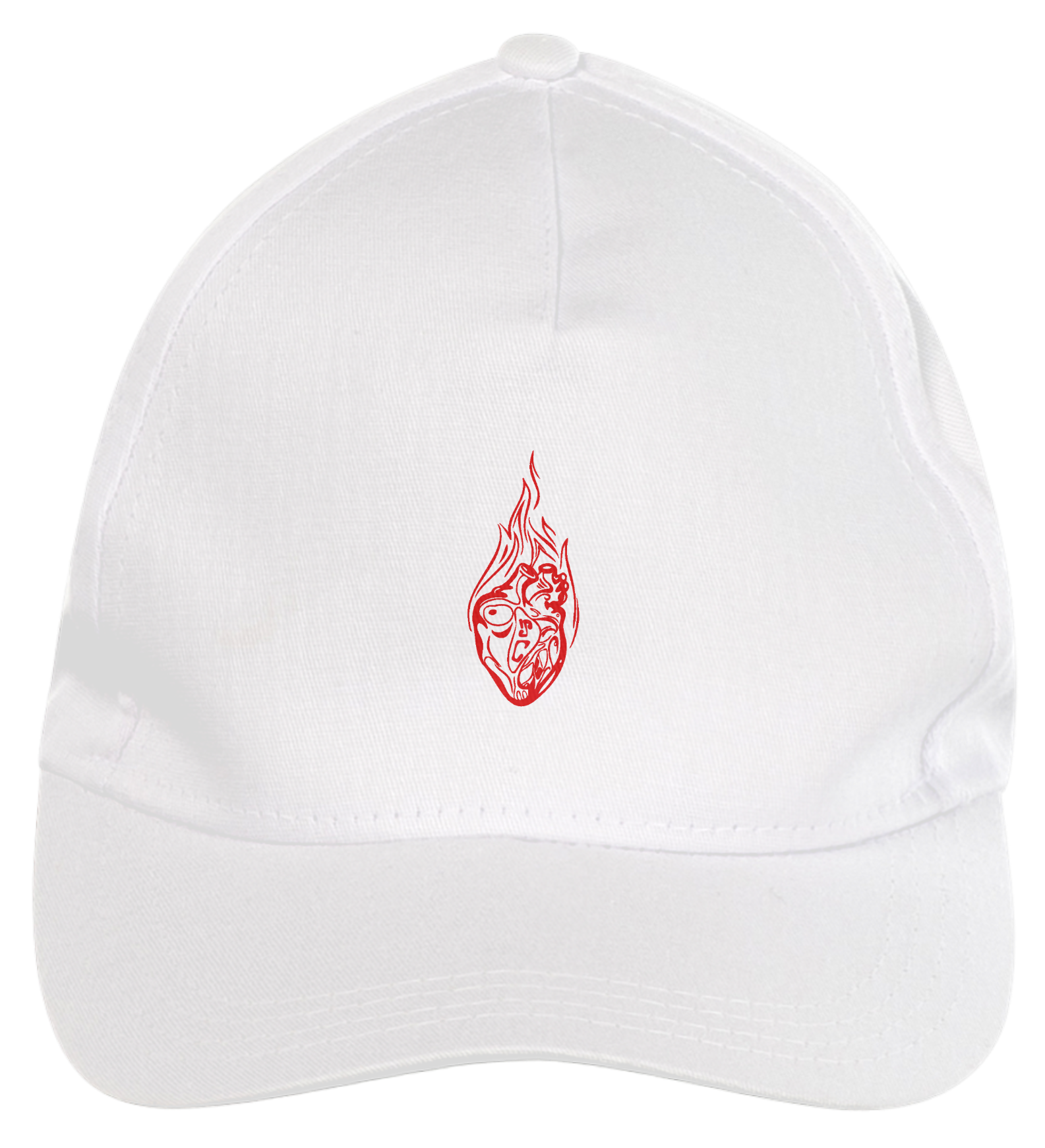 Boné americano com transfer frontal em alta qualidade, aba curva e fecho em tira totalmente regulável com pinos. O modelo veste tamanho "único".