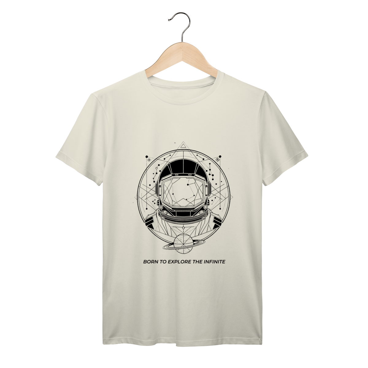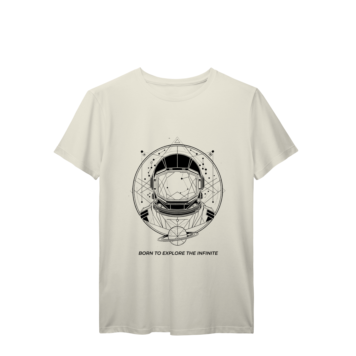 Camiseta Prime Astronauta Cósmico – White Edition representa a busca pelo desconhecido, o equilíbrio entre ciência, arte e universo.